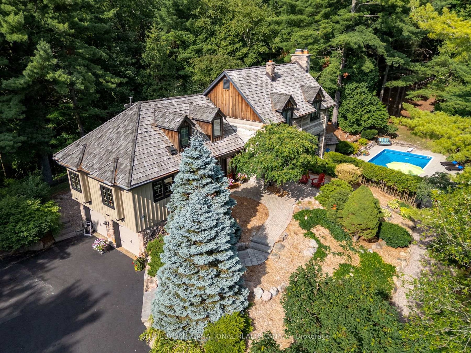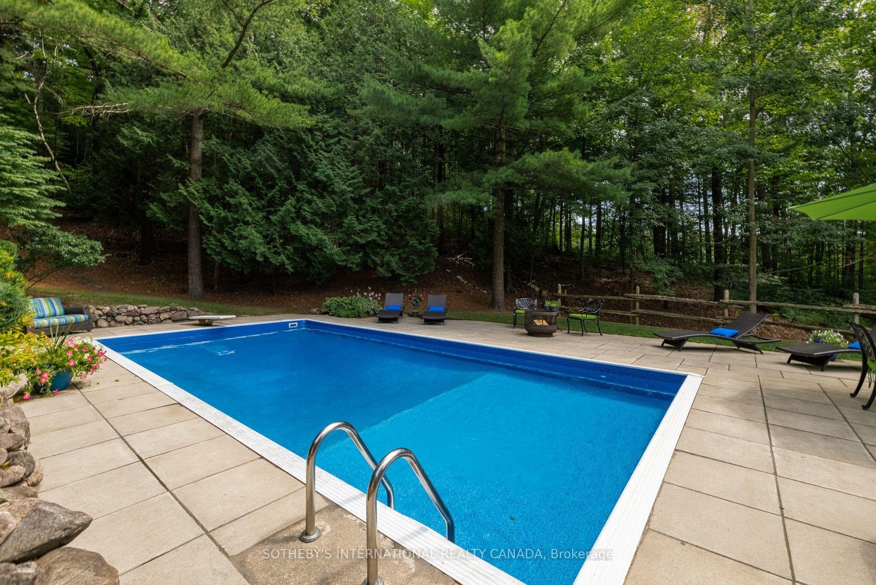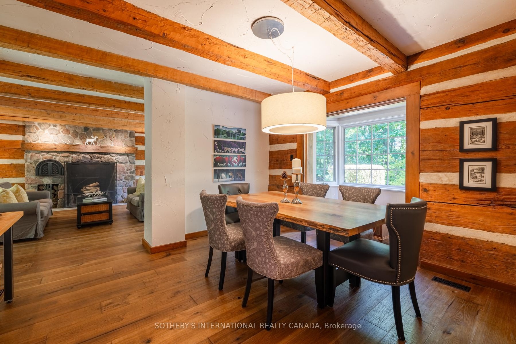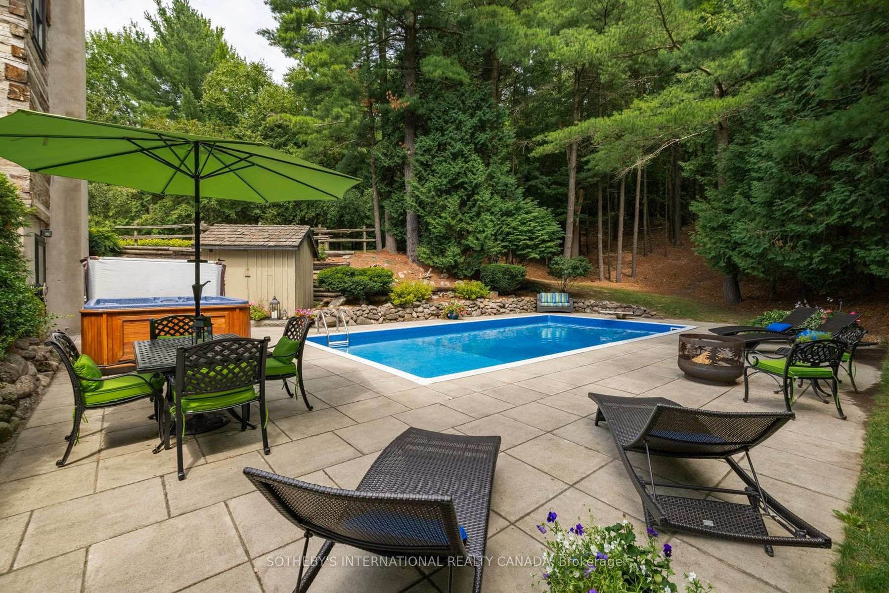 A property for all seasons; where swimming on a hot summer's day, a walk amongst falling leaves and time in a hot tub as the snow falls are all yours. This square log residence, sitting on over 10 acres, with a tasteful board and batten addition, really is the ideal country retreat. The best of both worlds come together with dinner in the city to then come home and wake up to the sound of birds and a flask of coffee on a crisp morning hike. Beginning with an inviting front hall, you find yourself drawn to an impressive stone fireplace with a built-in bread and pizza oven, perfect for late day gatherings. Throughout the main living area, beautiful hickory floors add warmth and character. The kitchen is truly the heart of the home, featuring soapstone counters, reclaimed natural oak flooring, a welcoming window seat, and exposed beams that evoke a rustic yet refined atmosphere. For those outdoor enthusiasts, a dedicated mudroom offers practical space for everything from dogs to hiking boots and hockey bags. The magic continues on the second floor with four charming bedrooms. The primary offers a spacious walk-in closet and an adjacent spa-like bathroom. Additional bedrooms provide ample space, including one that has been converted into a coveted dressing room. The lower level extends the living space with a family room complete with its own fireplace and walk-out as well as a separate area that could serve as a fifth bedroom or a quiet den. Plenty of storage ensures a place for everything. After some time in the sauna, a private outdoor oasis awaits with the pool and hot tub. This property is not just a home, it's a lovingly preserved piece of history, offering a rare opportunity for a unique and peaceful lifestyle. Ideal for those focused on exceptional independent schools, golf, horses and excellent commuting options from both King or Aurora.