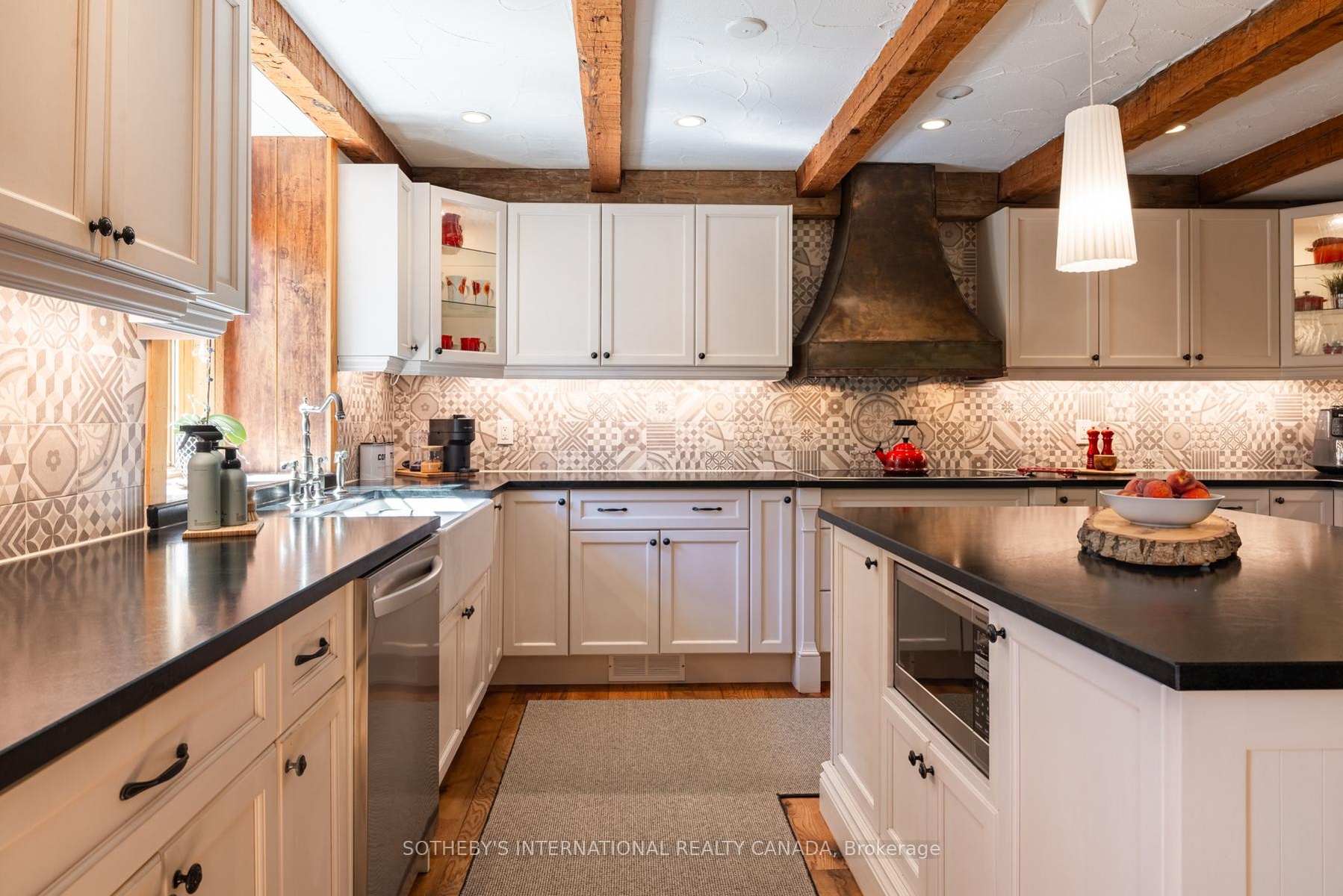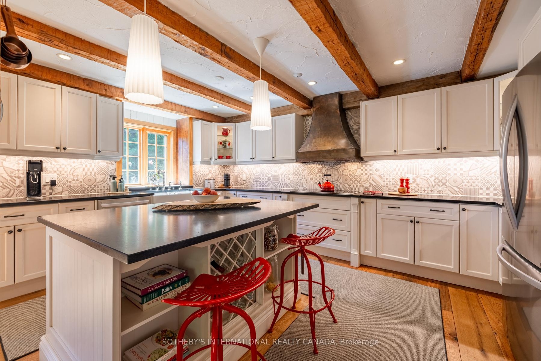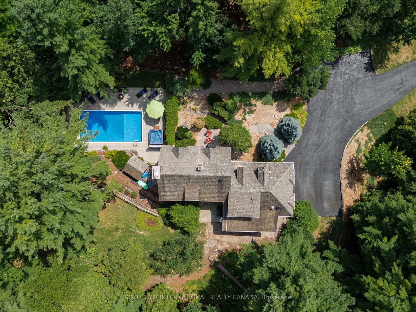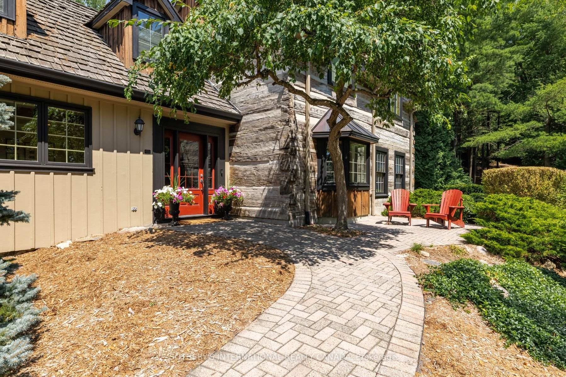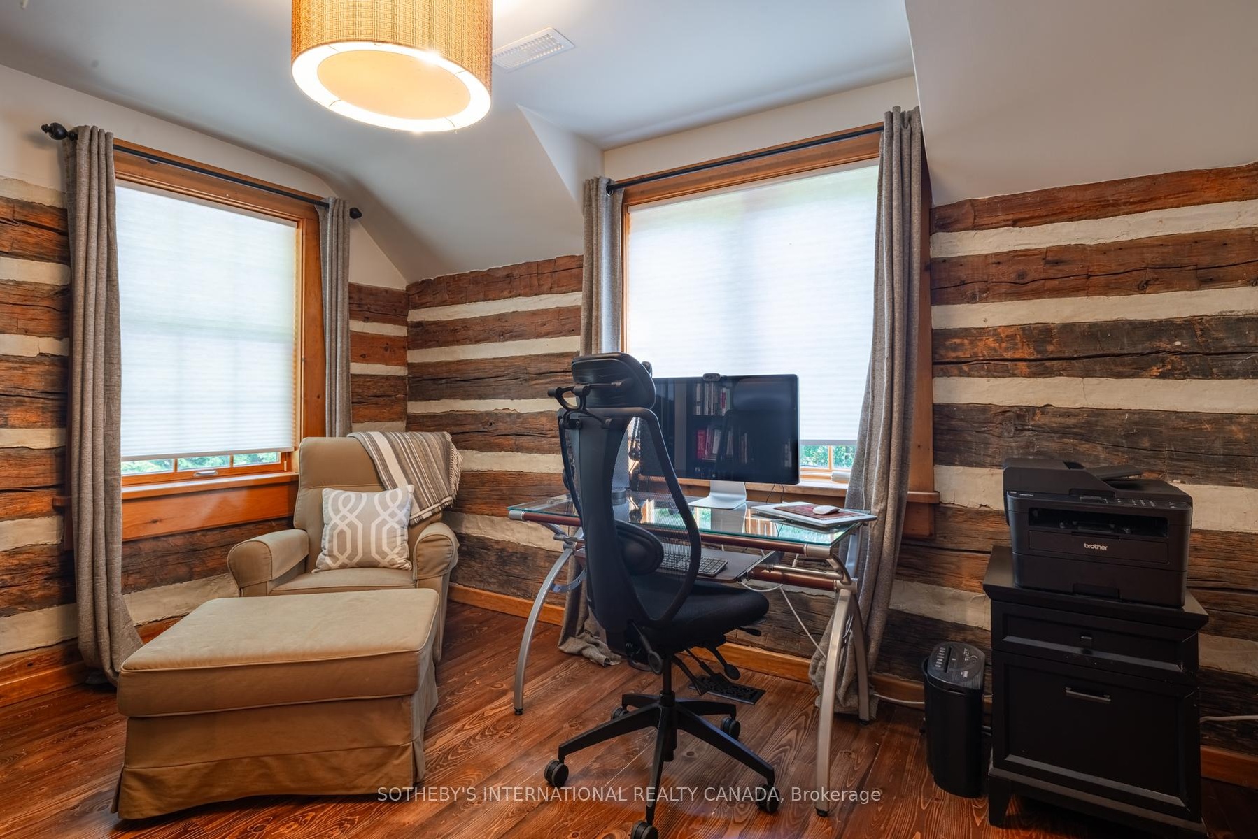 A property for all seasons; where swimming on a hot summer's day, a walk amongst falling leaves and time in a hot tub as the snow falls are all yours. This square log residence, sitting on over 10 acres, with a tasteful board and batten addition, really is the ideal country retreat. The best of both worlds come together with dinner in the city to then come home and wake up to the sound of birds and a flask of coffee on a crisp morning hike. Beginning with an inviting front hall, you find yourself drawn to an impressive stone fireplace with a built-in bread and pizza oven, perfect for late day gatherings. Throughout the main living area, beautiful hickory floors add warmth and character. The kitchen is truly the heart of the home, featuring soapstone counters, reclaimed natural oak flooring, a welcoming window seat, and exposed beams that evoke a rustic yet refined atmosphere. For those outdoor enthusiasts, a dedicated mudroom offers practical space for everything from dogs to hiking boots and hockey bags. The magic continues on the second floor with four charming bedrooms. The primary offers a spacious walk-in closet and an adjacent spa-like bathroom. Additional bedrooms provide ample space, including one that has been converted into a coveted dressing room. The lower level extends the living space with a family room complete with its own fireplace and walk-out as well as a separate area that could serve as a fifth bedroom or a quiet den. Plenty of storage ensures a place for everything. After some time in the sauna, a private outdoor oasis awaits with the pool and hot tub. This property is not just a home, it's a lovingly preserved piece of history, offering a rare opportunity for a unique and peaceful lifestyle. Ideal for those focused on exceptional independent schools, golf, horses and excellent commuting options from both King or Aurora.