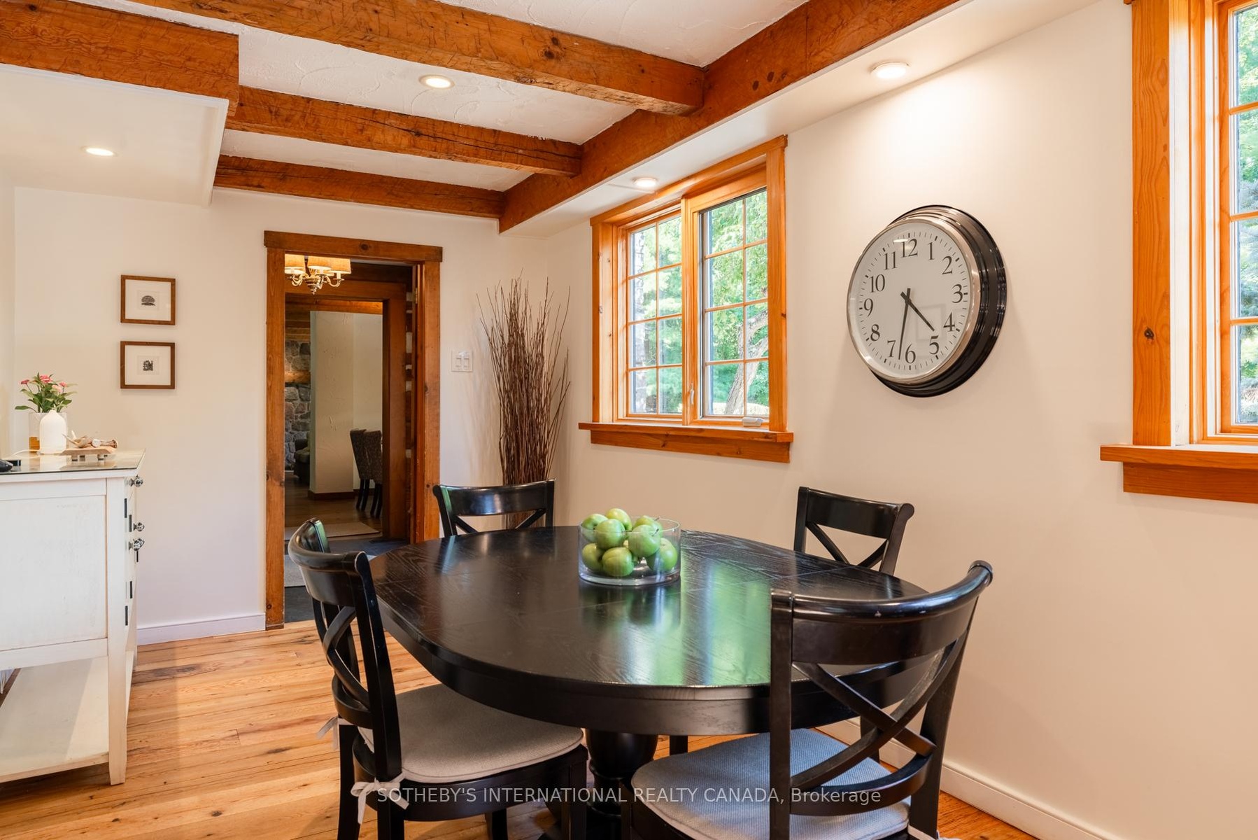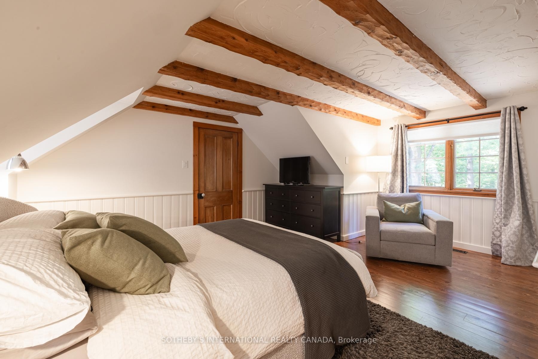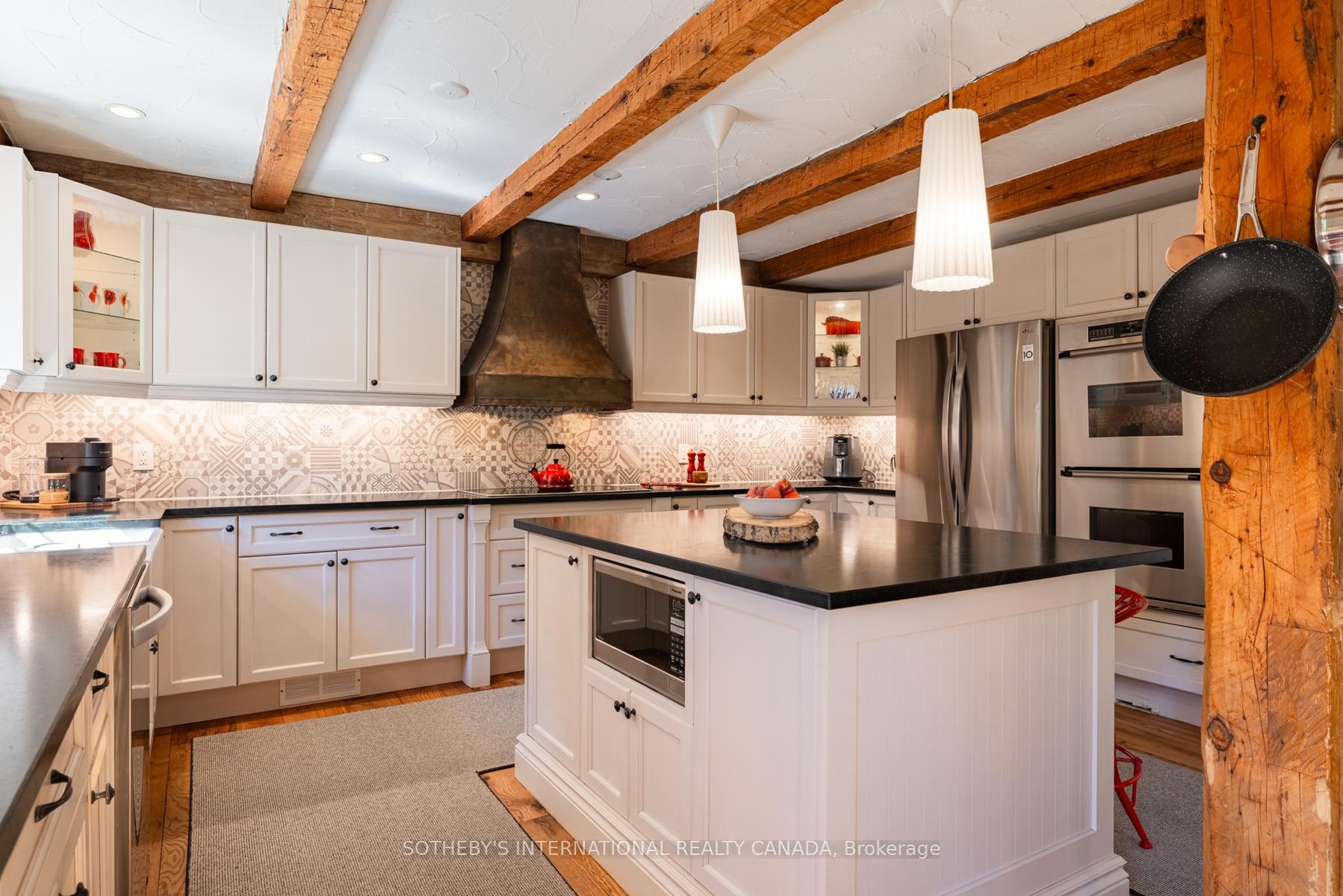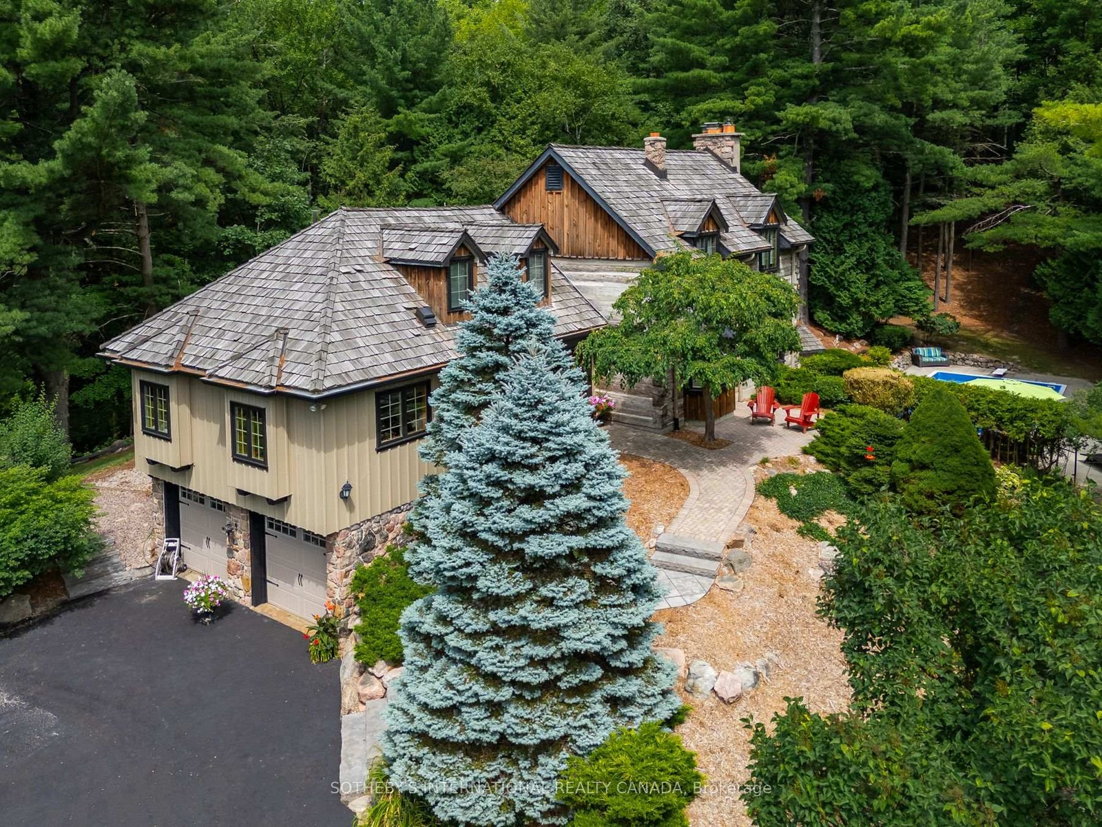 A property for all seasons; where swimming on a hot summer's day, a walk amongst falling leaves and time in a hot tub as the snow falls are all yours. This square log residence, sitting on over 10 acres, with a tasteful board and batten addition, really is the ideal country retreat. The best of both worlds come together with dinner in the city to then come home and wake up to the sound of birds and a flask of coffee on a crisp morning hike. Beginning with an inviting front hall, you find yourself drawn to an impressive stone fireplace with a built-in bread and pizza oven, perfect for late day gatherings. Throughout the main living area, beautiful hickory floors add warmth and character. The kitchen is truly the heart of the home, featuring soapstone counters, reclaimed natural oak flooring, a welcoming window seat, and exposed beams that evoke a rustic yet refined atmosphere. For those outdoor enthusiasts, a dedicated mudroom offers practical space for everything from dogs to hiking boots and hockey bags. The magic continues on the second floor with four charming bedrooms. The primary offers a spacious walk-in closet and an adjacent spa-like bathroom. Additional bedrooms provide ample space, including one that has been converted into a coveted dressing room. The lower level extends the living space with a family room complete with its own fireplace and walk-out as well as a separate area that could serve as a fifth bedroom or a quiet den. Plenty of storage ensures a place for everything. After some time in the sauna, a private outdoor oasis awaits with the pool and hot tub. This property is not just a home, it's a lovingly preserved piece of history, offering a rare opportunity for a unique and peaceful lifestyle. Ideal for those focused on exceptional independent schools, golf, horses and excellent commuting options from both King or Aurora.