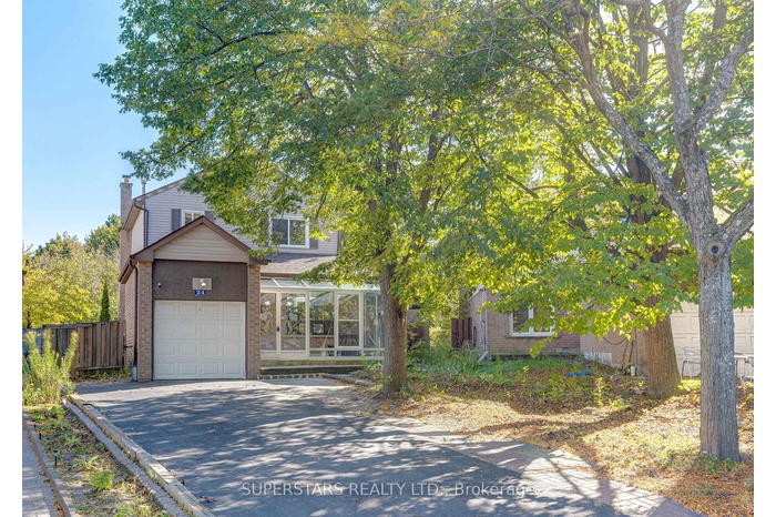 DescriptionWelcome to 24 Keon Pl, Scarborough! 1454 sq ft above the grade. 3+2 bedroom, 3 baths. Tucked away on a quiet Cul-De-Sac in the sought-after Malvern community, this delightful residence rests on a spacious pie shaped ravine lot (23.83 x 148.42 x 70.33 x 120.08 ft) surrounded by lush greenery and tranquil nature views. The property showcases a super long driveway accommodating up to 6 vehicles, no sidewalk, and an attached single garage. Featuring a sunny enclosed front porch with tiled flooring, providing extra space and year-round sunlight. Inside offers a practical and spacious layout, including a welcoming foyer, combined living and dining areas, and an eat-in kitchen with a bright window that fills the space with natural light. Enjoy a cozy family room with a fireplace. A sun filled multi purpose great room perfectly for gatherings and entertaining. The fenced backyard ensures privacy and includes a patio area along with ample green space for relaxation, gardening, or play. Freshly painted throughout, the finished basement features 2 bedrooms and a 3 pc washroom, potential for a rental income opportunity. Schools, parks, supermarkets, Walmart, shopping, cinemas, hospital, public transit, library, Hwy 401, Malvern Town Centre, Scarborough Town Centre. A Great Starter Home for the Family! **Basement pictures are virtually staged**Virtual Tour: https://www.youtube.com/watch?v=9BOAVxgRF7sAmenities- Carpet Free