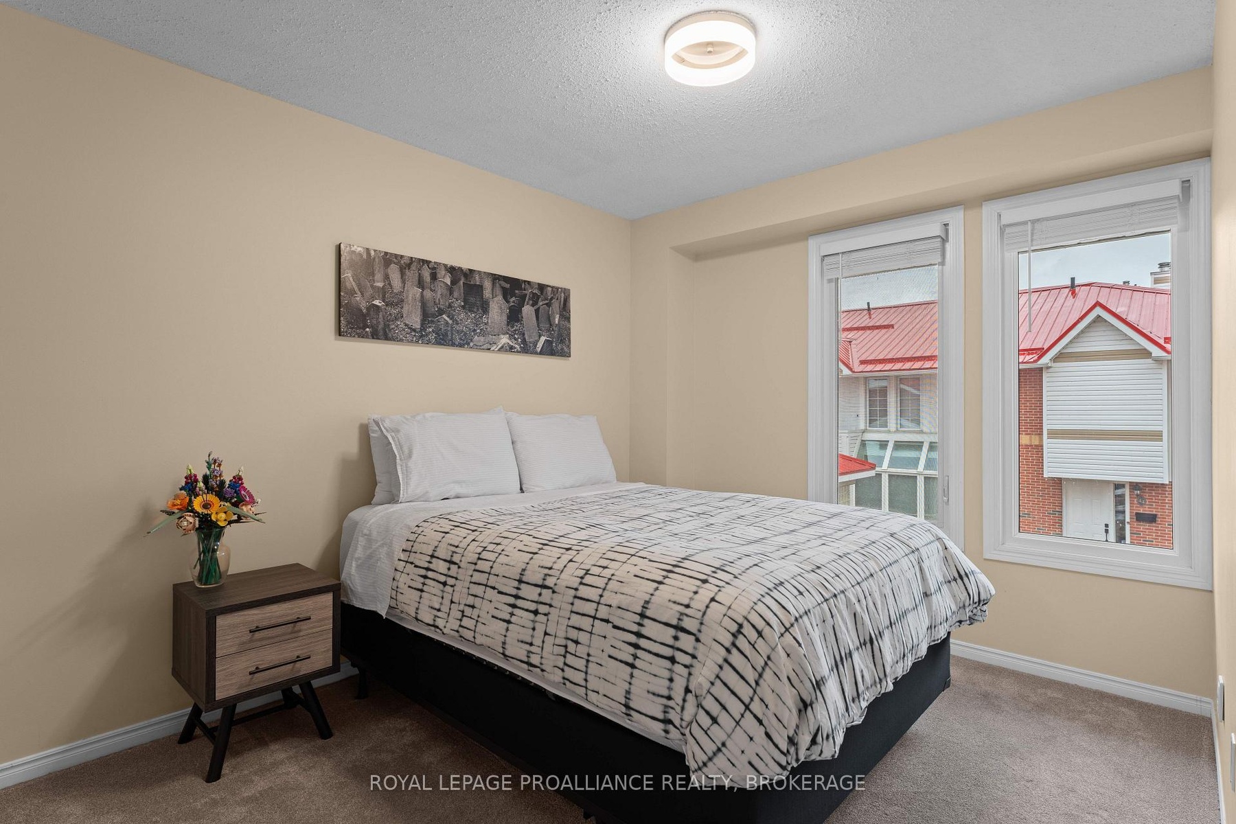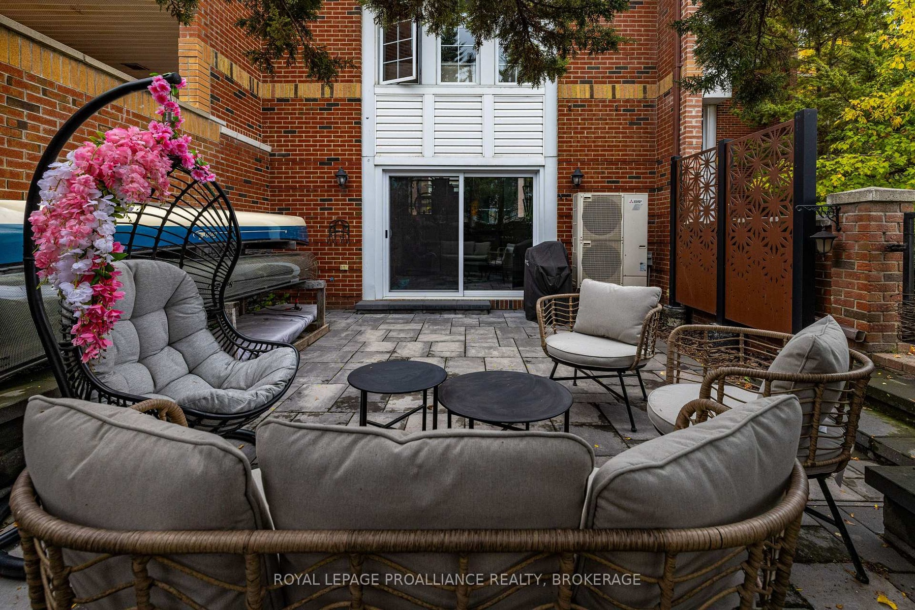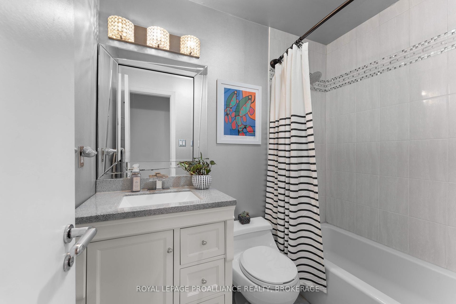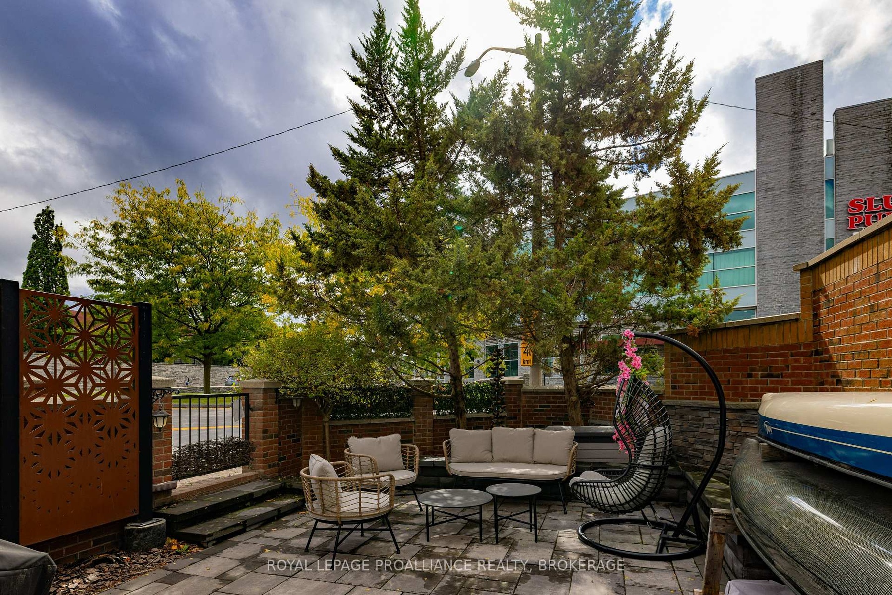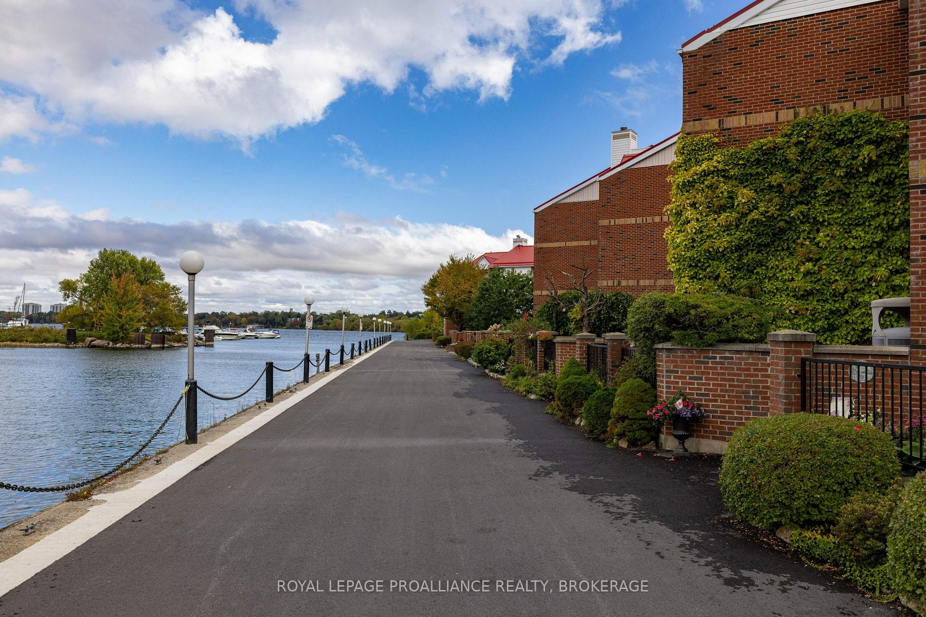 Beautifully updated multi-level townhome in Kingston's sought-after Frontenac Village, nestled in the heart of historic downtown. This exceptional and modernized residence is one of the largest in the community, offering over 2,000 sq. ft. of luxurious living space spanning across seven levels. Meticulously maintained and thoughtfully designed, this three-bedroom, three-bathroom residence features numerous high-quality updates, including a stunning open-concept custom kitchen with premium cabinetry and leathered granite counters, a serene primary suite with a loft-style renovated bath and private sitting or fitness area, and a rare three parking spaces. Offering two exceptional outdoor living areas - a front interlocking patio off the sun-filled kitchen and a private rear terrace from the lower-level walkout - this home is perfect for entertaining guests or simply enjoying the best of both morning and afternoon light. Built in 1985, Frontenac Village offers residents a rare and unique downtown lifestyle with its modern construction and impressive amenities, including outdoor pool and patio, exercise room and sauna, library, meeting room, and secure underground parking, all within a beautifully landscaped setting. Enjoy an unparalleled location where the Rideau River and Lake Ontario meet the St. Lawrence, just steps from Kingston's finest dining, shops, live entertainment, Kingston Marina and Confederation Basin, and Queen's University.