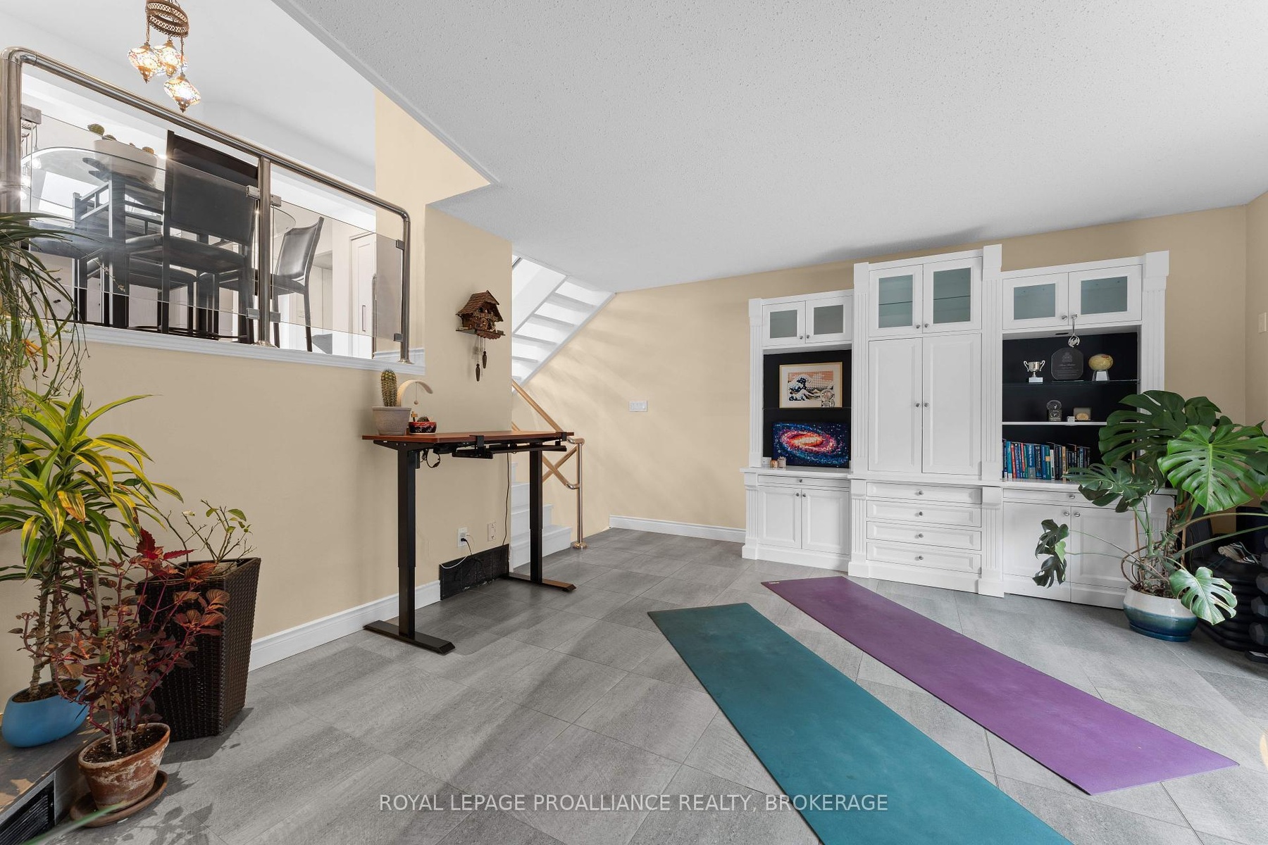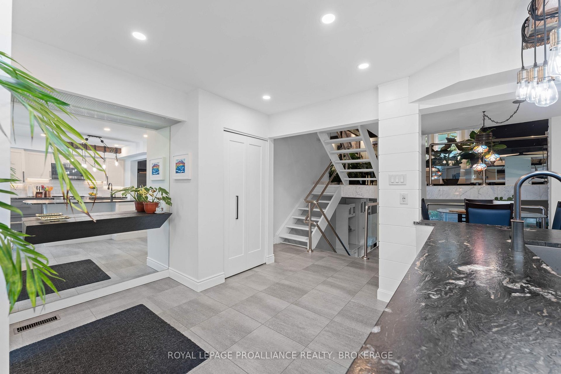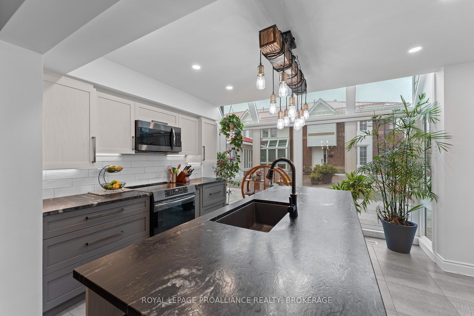 DescriptionBeautifully updated multi-level townhome in Kingston's sought-after Frontenac Village, nestled in the heart of historic downtown. This exceptional and modernized residence is one of the largest in the community, offering over 2,000 sq. ft. of luxurious living space spanning across seven levels. Meticulously maintained and thoughtfully designed, this three-bedroom, three-bathroom residence features numerous high-quality updates, including a stunning open-concept custom kitchen with premium cabinetry and leathered granite counters, a serene primary suite with a loft-style renovated bath and private sitting or fitness area, and a rare three parking spaces. Offering two exceptional outdoor living areas - a front interlocking patio off the sun-filled kitchen and a private rear terrace from the lower-level walkout - this home is perfect for entertaining guests or simply enjoying the best of both morning and afternoon light. Built in 1985, Frontenac Village offers residents a rare and unique downtown lifestyle with its modern construction and impressive amenities, including outdoor pool and patio, exercise room and sauna, library, meeting room, and secure underground parking, all within a beautifully landscaped setting. Enjoy an unparalleled location where the Rideau River and Lake Ontario meet the St. Lawrence, just steps from Kingston's finest dining, shops, live entertainment, Kingston Marina and Confederation Basin, and Queen's University.Amenities- Auto Garage Door Remote