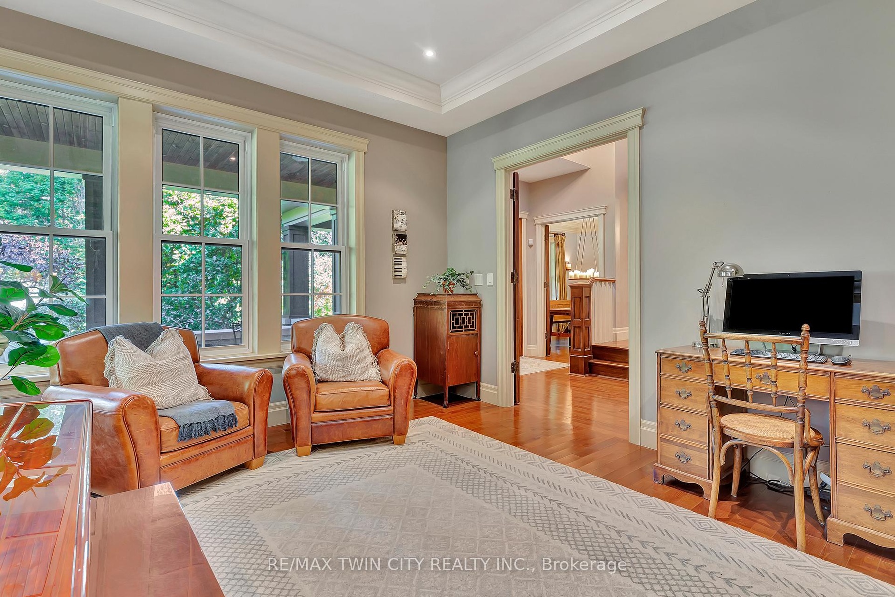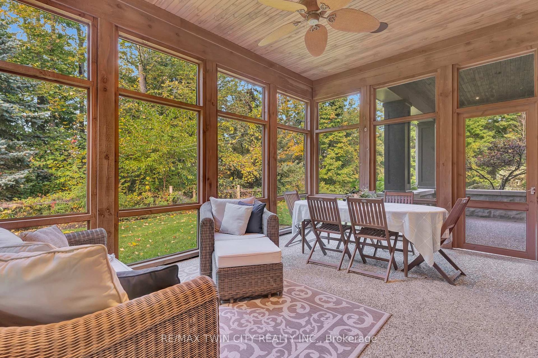 DescriptionWelcome to this exceptional Executive home offering almost 6 acres of privacy and luxury, just minutes from the City of Cambridge. With more than 3,850 sq. ft. above grade and an unspoiled walk-out basement with 10-foot ceilings in the main house ,Plus an additional separate Studio Apartment and Work Shop, this property blends sophistication, functionality, and future potential.The main level features a spacious kitchen with a walk-in large pantry, a sunroom filled with natural light, a screened-in porch, and multiple living spaces perfect for family gatherings or entertaining. You will also find a separate dining room, a study, and three fireplaces, creating warmth and character throughout. In-floor heating extends through much of the home for added comfort.Upstairs, discover four generous bedrooms, including a primary suite with ensuite bath, and an additional bedroom with a rough-in for a 3-piece bathroom. A 3-piece rough-in in the basement provides even more opportunity for customization ideal for a future in-law suite, complete with a walk-out to the garage.Outside, enjoy the wrap-around porch, fire pit area, irrigation system, and expansive driveway leading to the attached 2-car garage. A second detached 2-car garage offers a finished area currently set up for a home-based business, complete with plumbing and a stove, plus a beautifully finished studio apartment above, providing exceptional versatility for multi-generational living or rental potential. The property also features a chicken coop, and plenty of outdoor space, offering a touch of country charm.This rare offering combines the best of country living with convenient city access perfect for multi-generational families, professionals working from home, or those seeking a peaceful retreat without compromise.Amenities- Accessory Apartment