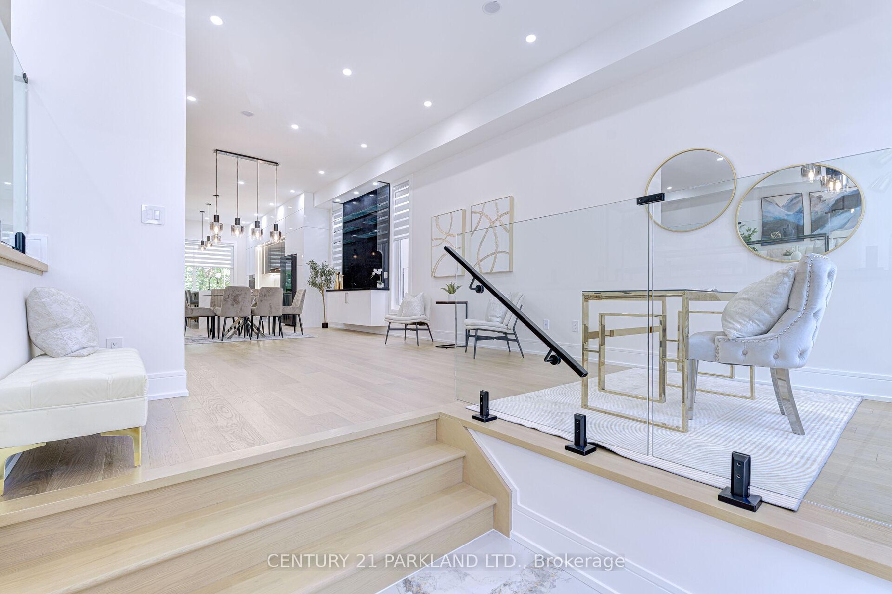L.O.C.A.T.I.O.N. Spectacular Modern Home. Exterior Ultra Modern Aluminum Composite & fluted panels paired w Glass Railing. Security cameras all around with fully fenced backyard. Large Kitchen With High End Wifi Controlled Appliances, large island w Quartz Counter Top. Dining room w builtin Bar w Bar sink and glass shelves. Fully open concept overlooking living, dining kitchen office and family room. Glass Railings all around living office & stairs. 2 large patio doors opening up to sundeck. Quality Craftmanship, Materials With Meticulous Attention To Detail. Magnificent Master Includes Walk-In Closet, 7 Pc Ensuit w free standing jaccuzi, large shower with LED shower panels, double sink fireplace & w/o to large balcony w glass railing. All bedrooms w 4 pc ensuits, ample storage. another shared balcony w 2 bedrooms. Multi zoned HVAC system, central vacuum. Wifi controlled combo laundry w steamer, organized shelves in laundry room creates lot of storage space. Walkout 2 bedroom Basement with high ceiling roughin kitchen, 4 pc washroom. Large windows making it extra bright. Large Open concept Rec room making it a perfect party place. wifi controlled garage door. open from your phone. Steps To new Metrolink Subway line. **a must sell deal*