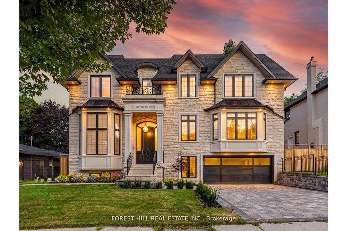 **Welcome to ""LUXURIOUS"" Custom-Built, just over 1yr only(RARELY-LIVED)---39 Rippleton Rd, ideally located prestigious banbury neighbourhood**This impressive home offers approximately 7000Sf living space including a lower level(4,672Sf for 1st/2nd floors) with an**ELEVATOR**backyard with unobstructed view(park-like setting). This home is a stunning blend of timeless architecture with a majestic facade, natural stone and brick exterior and striking interiors with a private ELEVATOR****THIS HOME COMBINES Timeless Beauty, Contemporary Sophistication****The main floor office provides a refined retreat and soaring ceilings(approximately 14ft) draw your eye upward. This home offers spaciously-designed, open concept living/dining rooms, and the home's elegant-posture & airy atmosphere. The dream gourmet kitchen offers a top-of-the-line appliance(SUBZERO & WOLF BRAND), stunning large 2 centre islands with waterfall marble stone & pot filler, indirect lightings and seamless flow into a spacious breakfast area leading to the sundeck-open view of backyard. The family room is perfect for entertaining and family gathering place. The gorgeous primary suite offers a heated/spa-like ensuite and a walk-in closet. The additional bedrooms feature all own ensuites for privacy and convenience, walk-in closets, hardwood flooring, and large windows. Upstairs, the functional laundry room area(2nd floor).The fully finished walk-out basement includes heated floors thru-out, a large recreation room area with wet bar, a 2nd laundry room. The backyard of the home features a large sundeck and fully fenced yard, offering open view(park-like setting) for privacy. Just steps from Edwards Gardens, Sunnybrook Park, Shops at Don Mills, Banbury Community Centre, Parks-----Zoned for top public schools and close to Toronto's top private schools