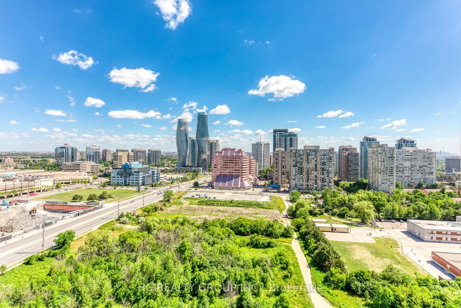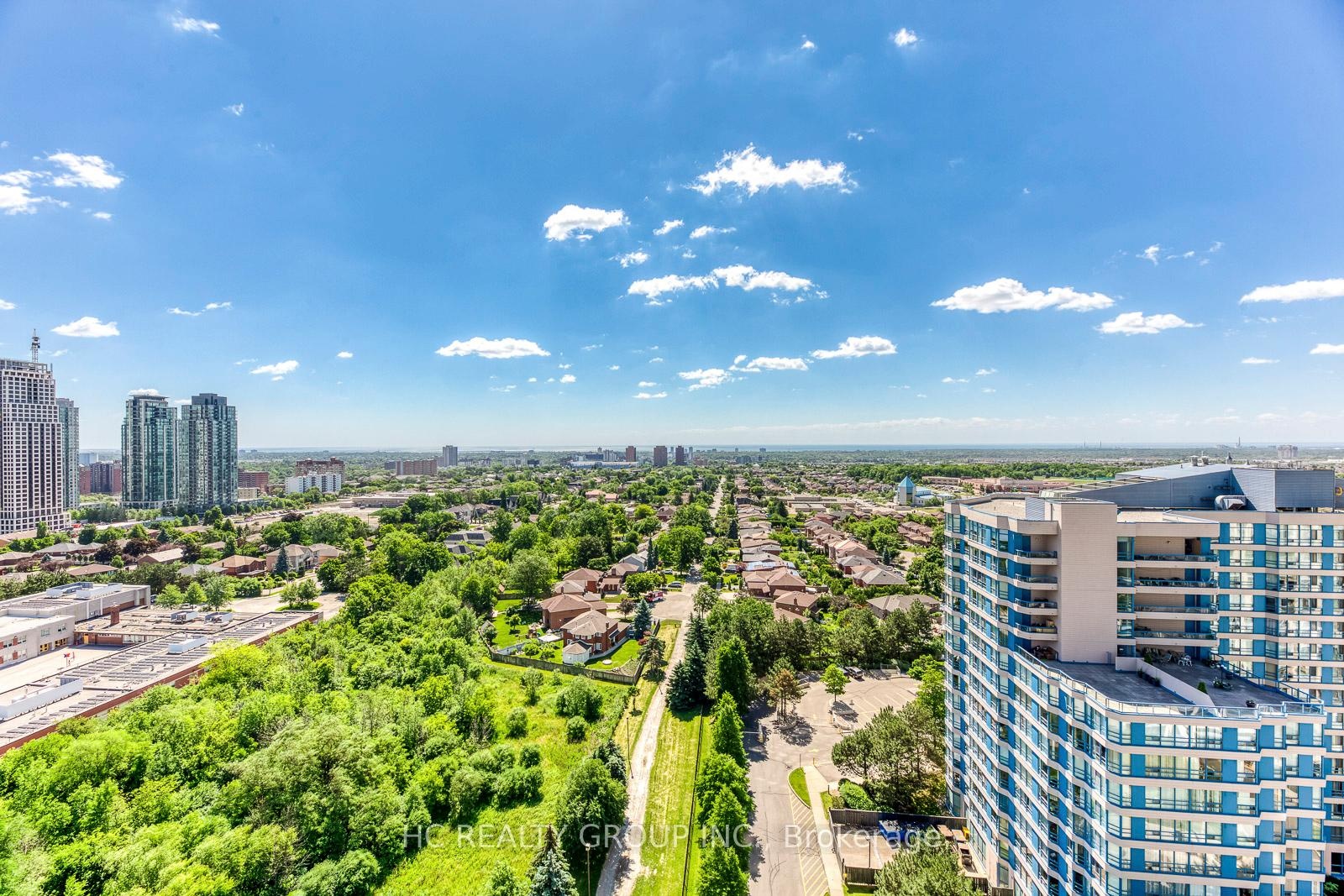 Dont Miss Out On This Spacious, Bright Corner Unit With A Fantastic Layout & Unobstructed SE Panoramic Views. 2 Bed + Den, 2 Bath, Approx. 1050 Sqft + 100 Sqft Balcony With Dual Entrances. No Wasted Space. The Primary Bedroom Is Larger Than Other Units With The Same Floor Plan. Full-Sized Kitchen Pantry With Tons Of Storage. Enjoy The Generous Square Footage That Feels Open And Comfortable For Both Living And Entertaining. Comes With 2 Side-By-Side Underground Parking Spots & 1 Locker. Amazing Amenities Include 24Hr Concierge, Indoor Pool, Spa, Sauna, Steam Room, Hot Tub, Gym, Guest Suites, Party/Meeting Room, Rooftop Deck/Garden & More. Steps To Transit, Square One, And Easy Hwy Access. A Must See! You Will Fall In Love With This Home!