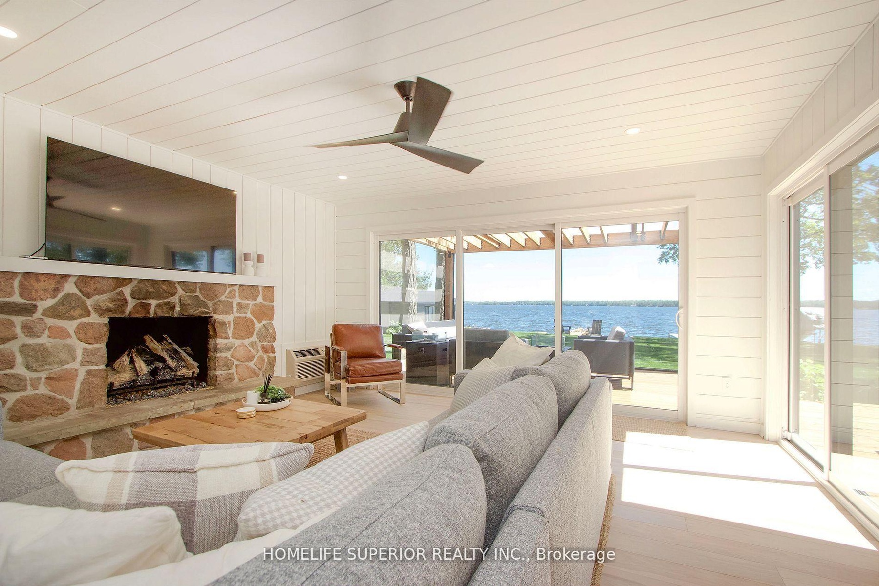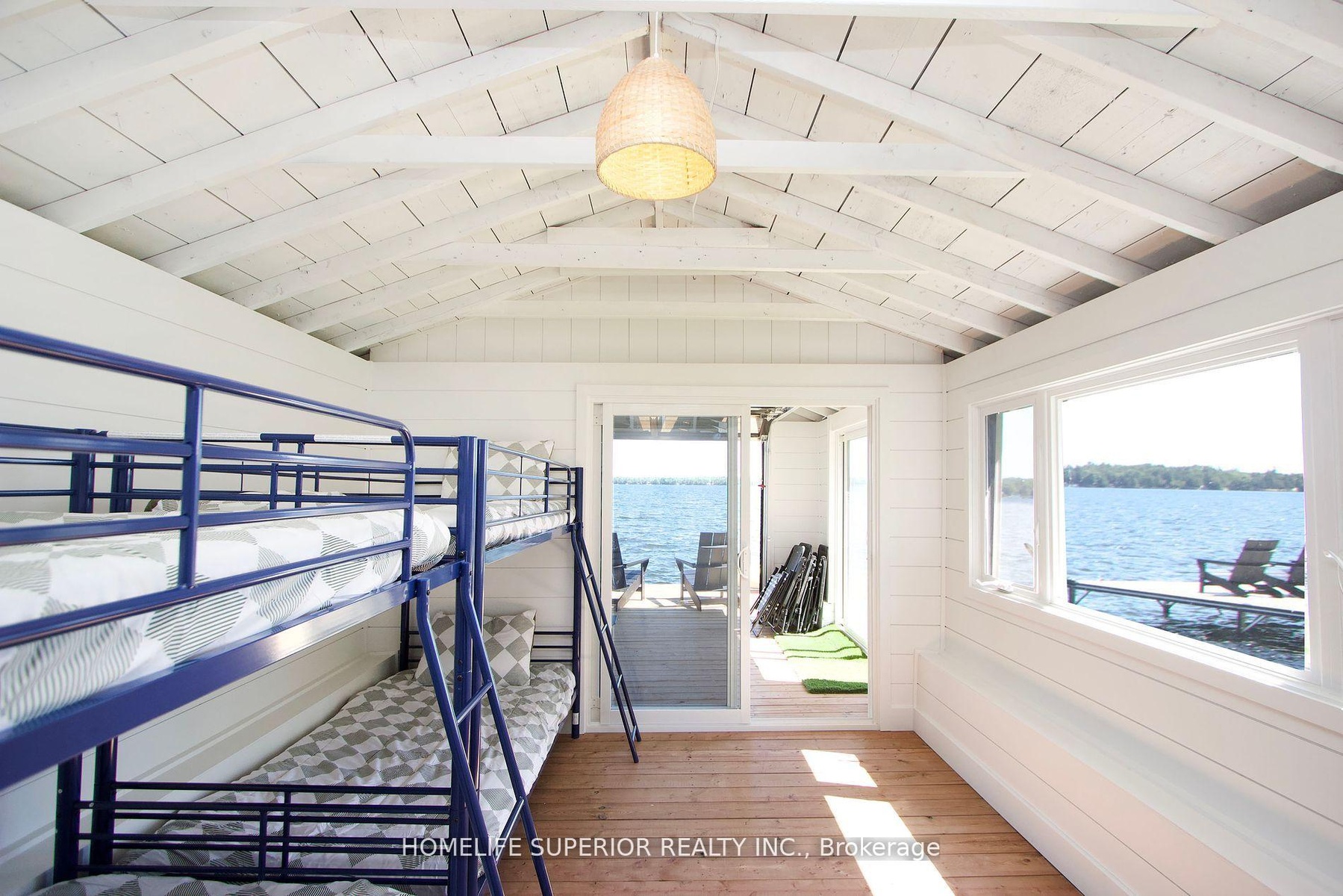 DescriptionYour Luxury Lakeside Escape Awaits! -Immaculate 4 bedroom 4-season waterfront retreat on prestigious Balsam Lake the Jewel of the Kawartha's! Welcome to Balsam Beach House! Rogers High Speed Fibre Internet! This Modern, immaculate & efficient 4 season retreat offers everything you need for perfect maintenance free living. With 100 of shoreline, breathtaking wide open clean lake views and seamless indoor-outdoor living. Inside discover a bright open-concept interior with 4 spacious bedrooms, Designer Kitchen featuring Quartz counter tops, Premium GE Cafe Series Appliances. Refrigerator features cold spring water & ice maker. Also includes Wet-bar with large capacity beverage centre and coffee station. Living room features Stone Fireplace with Propane Log Set. Relax and take in stunning lake views from your motorized remote controlled screened in sunroom. Private Balcony from Principal Bedroom. Cozy shiplap aesthetic paired with wide white oak flooring throughout. Beautifully decorated with a calm and inviting interior. Enjoy the multitude of oversized cedar decks throughout. A separate Boathouse/Bunkie offers extra sleeping quarters and a lounge ideal for extra guests or entertaining. Convenient boat access from your dock. Large fire pit area for evening entertainment. Maintenance free exterior includes metal roof and premium Maibec Genuine Wood Siding. Detached garage plus a Modern Shed for additional storage. Professionally landscaped with privacy trees. Prestigious Balsam is located at the top of the Trent Severn Waterway, perfect for boating enthusiasts. Here is your chance to own a slice of paradise in the Kawartha's!!!! Immediate or spring 2026 closing available!! Finance options available contact listing agent for details.Virtual Tour: https://www.youtube.com/watch?v=3ujytoSWo8UAmenities- Auto Garage Door Remote