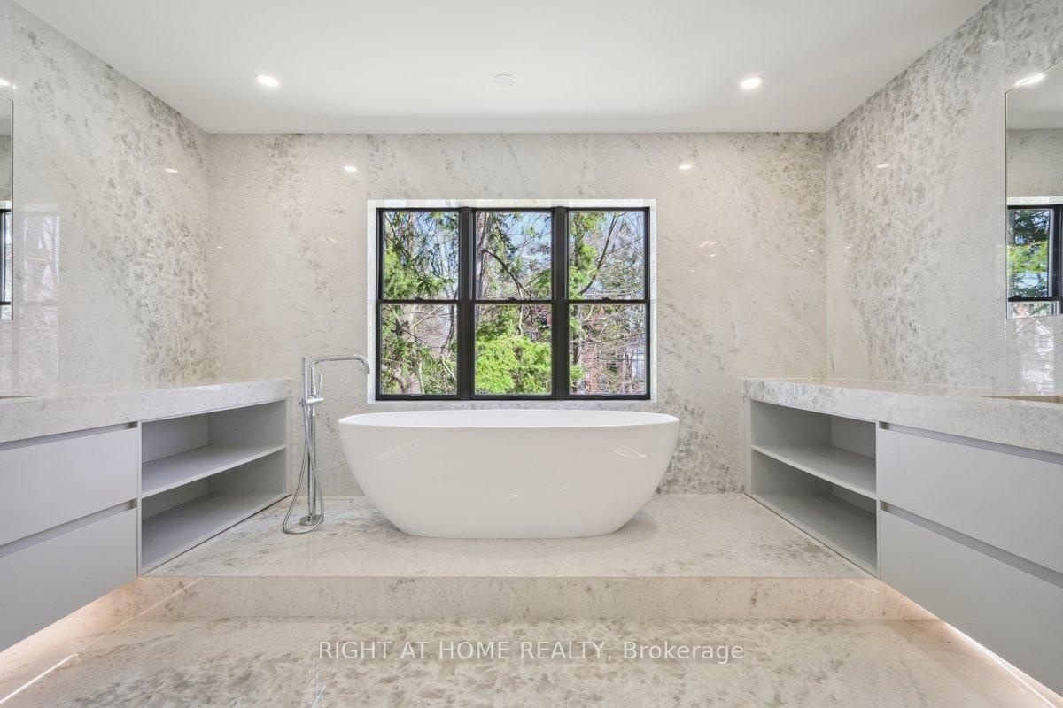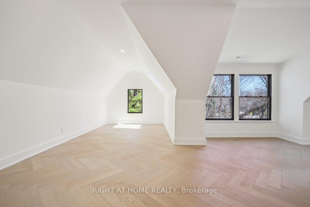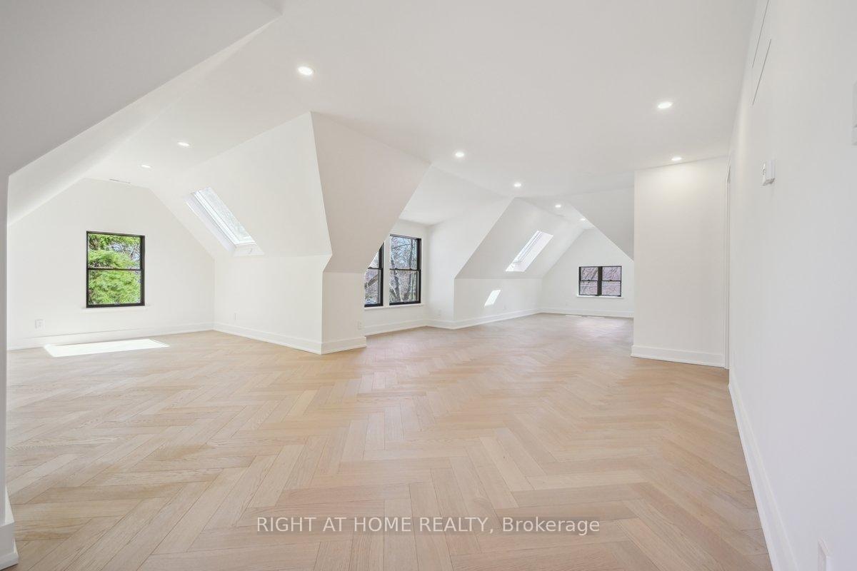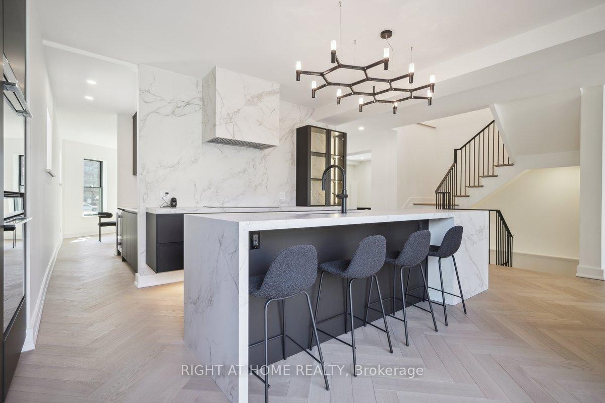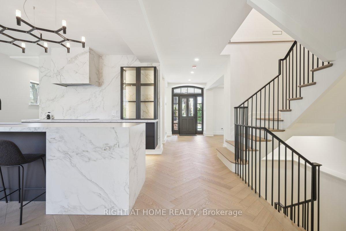 Completely renovated show home in the heart of Burlington. Set on a rare 86 x 150 ft lot, this iconic residence offers over 4500 sq. ft. of luxury living. A perfect blend of timeless design and modern elegance, featuring chevron hardwood, custom cabinetry, and designer finishes throughout. The main floor boasts a chef's kitchen with oversized waterfall island, built-in appliances, and servery, flowing seamlessly to the formal dining room, office, and family room with floor-to-ceiling windows and gas fireplace. Upstairs, three oversized bedrooms each offer private ensuites and built-ins. The third level impresses with a skylit lounge plus two additional bedrooms, both with ensuites. A rare opportunity to own a truly Luxury Certified home in one of Burlington's most coveted locations.