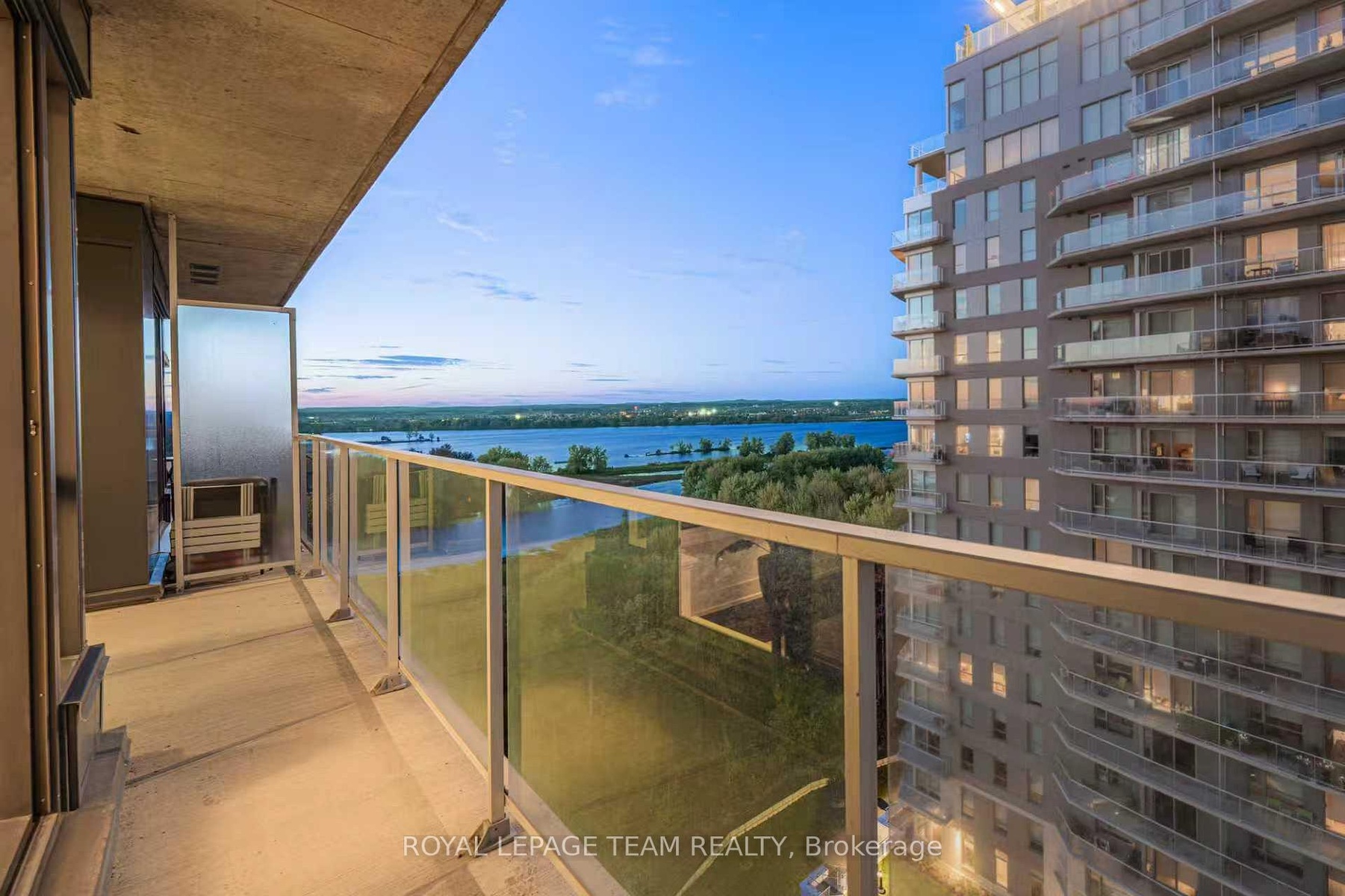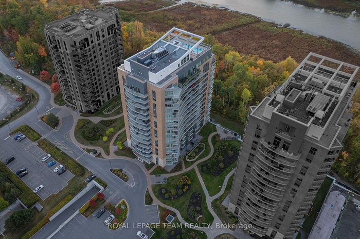 Experience elevated living at Petrie's Landing, steps from scenic Petrie Island Beach and the Ottawa River. Perched on the 11th floor, this 693 sq. ft. condo combines modern comfort with resort-style amenities. Featuring 1 bedroom plus an oversized den that easily serves as a second bedroom, this home is perfect for professionals, couples, or anyone seeking a stylish and flexible space. The open-concept layout is bright and inviting, with hardwood floors, oversized windows, and a sleek kitchen featuring quartz countertops, stainless steel appliances, and smart cabinetry. Both the living room and primary bedroom open to large private balconies, ideal for morning coffee, evening drinks, or simply soaking in the panoramic East-facing views of the Ottawa River. The spa-inspired 4-piece bathroom includes a deep soaker tub and a separate walk-in shower, while in-suite laundry, central air conditioning, and efficient gas heating add everyday convenience. Free access to a long list of amenities: a fully equipped gym, rooftop outdoor pool with BBQ area, elegant party and meeting rooms, plus one underground parking space and a storage locker. Located in a quiet, adult-oriented and smoke-free building, this prestigious address offers easy access to parks, golf courses, trails, and the marina, where nature meets modern urban living. Immediate occupancy available. Locker P2 left Storage Room B-126 and Garage Parking P1-Left side A-65.