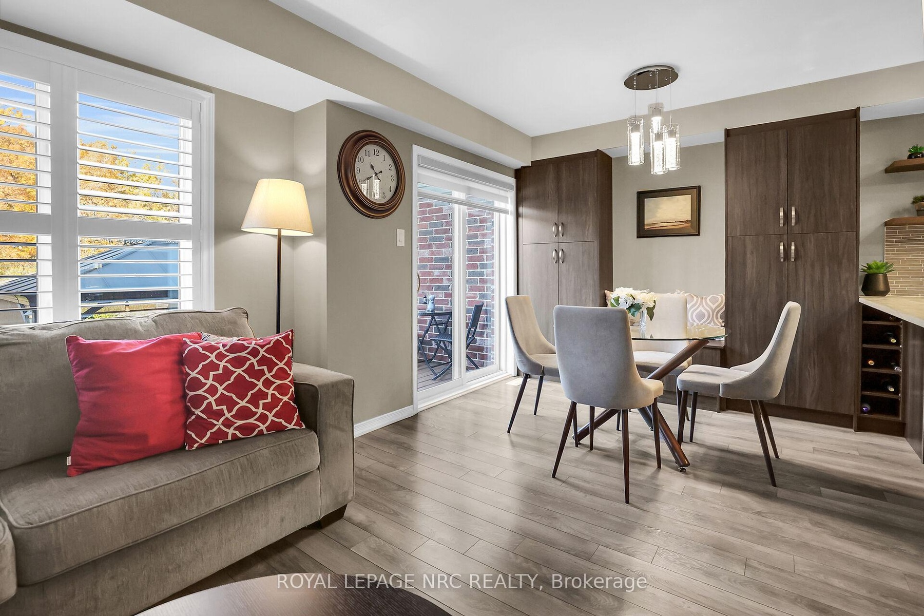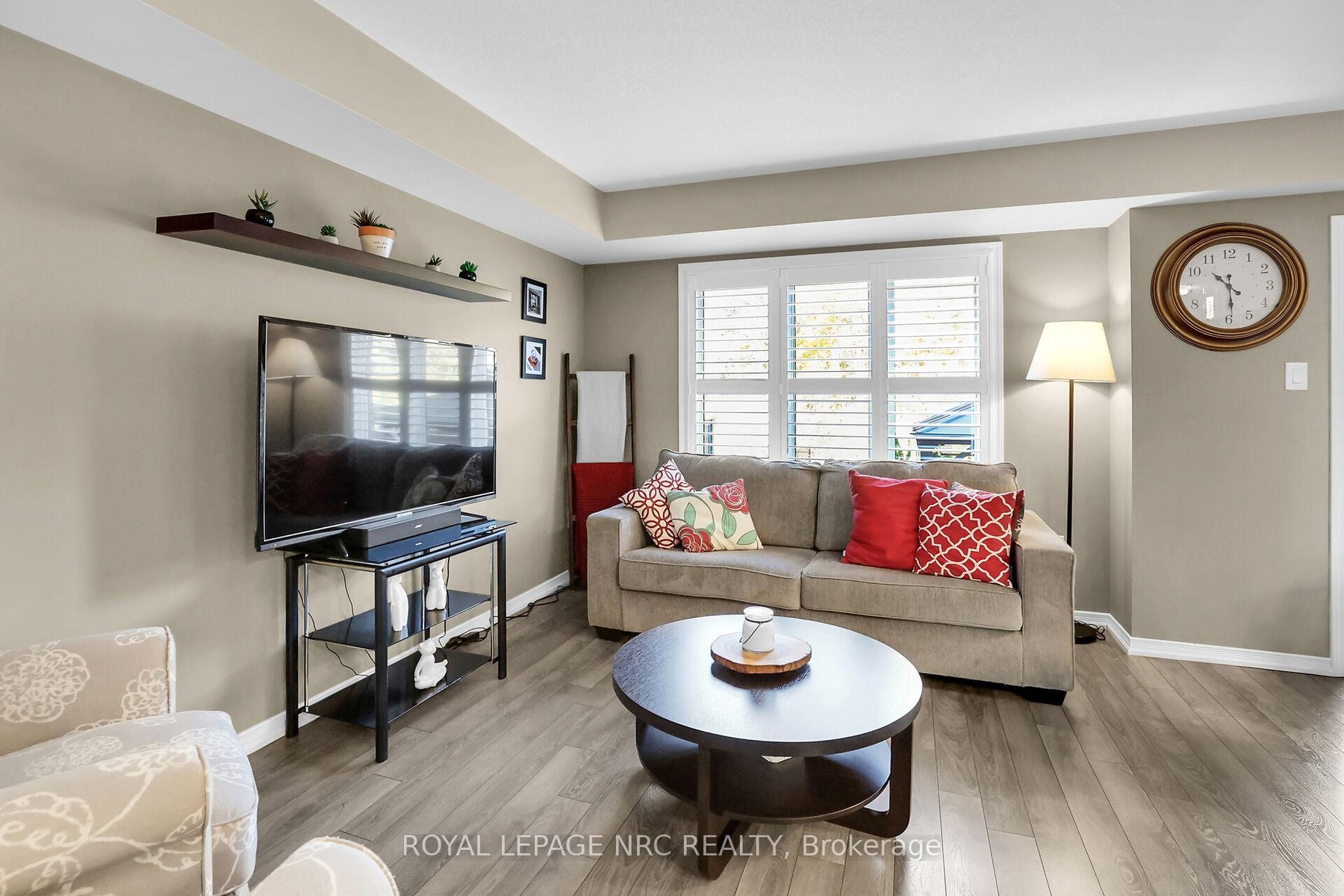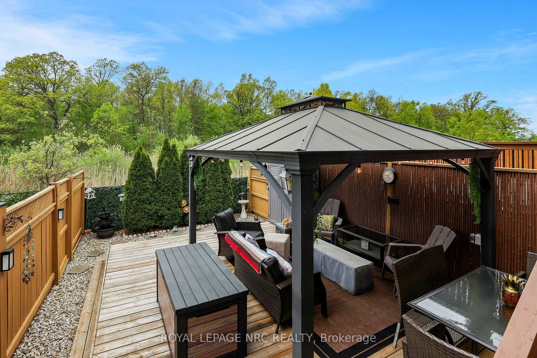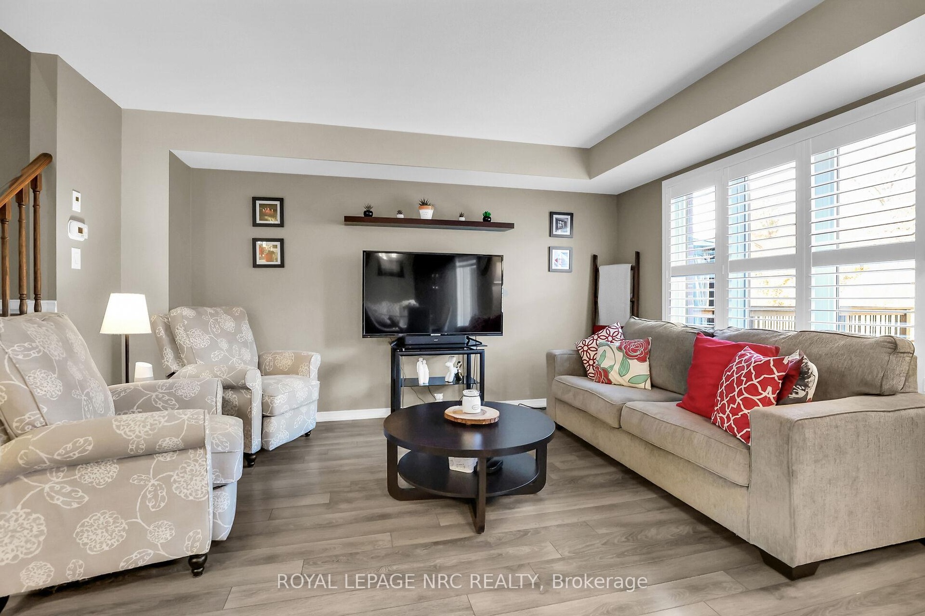 Imagine your daily routine beginning with the backyard views of PICTURESQUE GREEN SPACE, ALONG WARREN WOODS TRAIL, with no rear neighbours to interrupt the view. This 3-bedroom, 2.5-bathroom freehold townhome has a thoughtfully designed open main floor plan. Sleek kitchen with UPGRADES & IMPROVEMENTS incl tile backsplash, chimney-style hood fan, & soft-close drawers. Attention to detail continues into dining area with MATCHING CUSTOM CABINETRY featuring bench, pantry cabinets, & wine rack! Natural light floods the space thru the sliding door, while elegant light fixtures add a touch of sophistication. Retreat to the primary bedrm, a true oasis of calm. ENSUITE is bathed in natural light thanks to a window & features a tile shower with a glass door & potlight. The CUSTOMIZED WALK-IN CLOSET has a built-in hamper! One of the bedrms has been cleverly transformed into a den with custom built-ins, offering a versatile space that can easily serve as a 3rd bedrm. Convenient 2nd floor laundry located across from a spacious closet. 2nd upstairs bathrm is a full 4-piece. FINISHING TOUCHES elevate this home, including a stylish french door, a retractable screen on the front door, California shutters on all main floor & upstairs windows, & zebra blinds on exterior glass doors. Step outside to this serene backyard "retreat" with a spacious DECK (+/- 20ft x 15ft 10in). Unwind or entertain family & friends in this charming space complete with GAZEBO, decorative river rock, some bamboo fencing, & VIEWS THAT ARE A BACKDROP OF FORESTRY & RAVINE. Inviting aggregate front walkway & driveway. Beautiful neighbourhood, nearby shopping, schools, parks including Heartland Forest, walking trails, & future location of new Niagara Falls Hospital. Enjoy easy access to the QEW & the many attractions in the Niagara region, including wineries, golf courses, shopping, & more! This is an exceptional townhome with STUNNING NATURAL VIEWS!