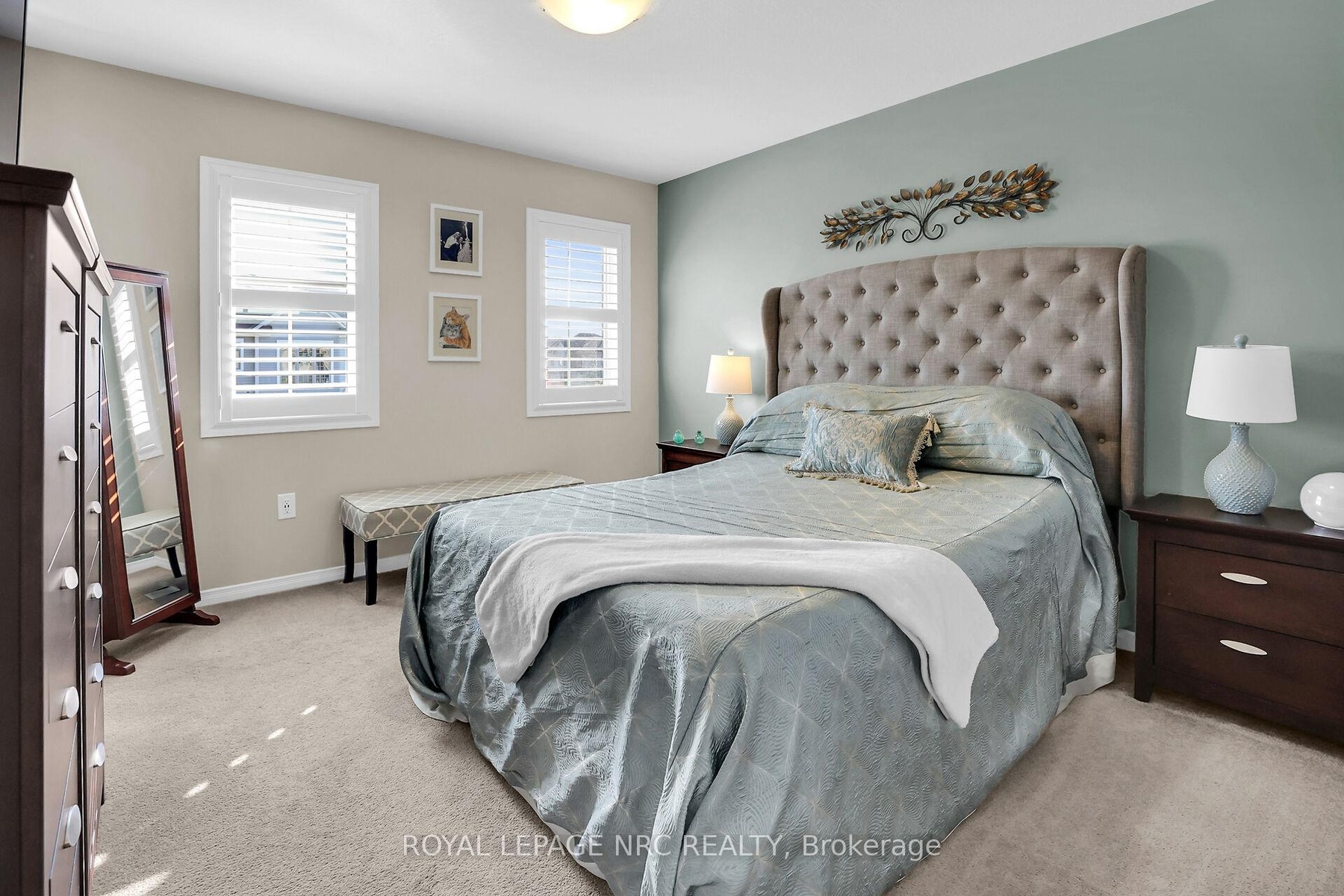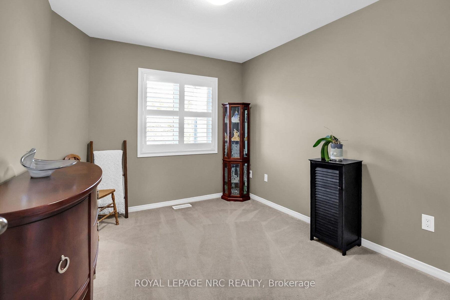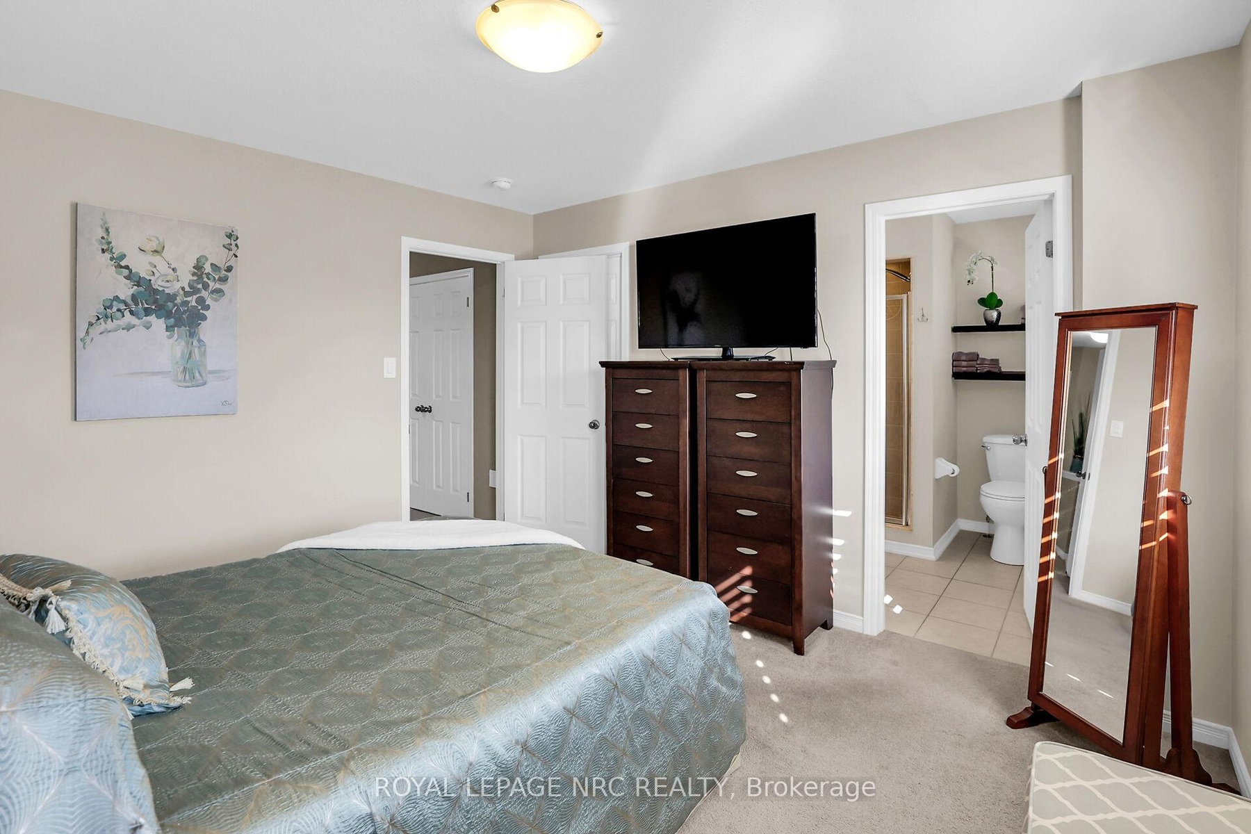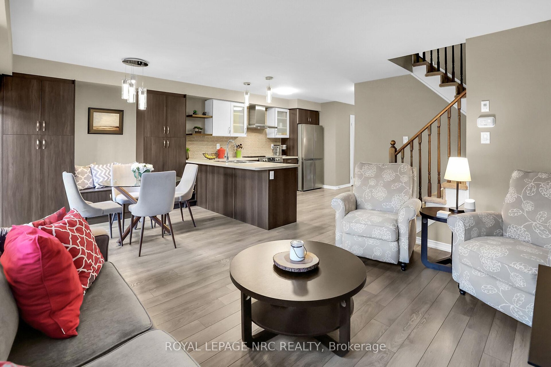 Imagine your daily routine beginning with the backyard views of PICTURESQUE GREEN SPACE, ALONG WARREN WOODS TRAIL, with no rear neighbours to interrupt the view. This 3-bedroom, 2.5-bathroom freehold townhome has a thoughtfully designed open main floor plan. Sleek kitchen with UPGRADES & IMPROVEMENTS incl tile backsplash, chimney-style hood fan, & soft-close drawers. Attention to detail continues into dining area with MATCHING CUSTOM CABINETRY featuring bench, pantry cabinets, & wine rack! Natural light floods the space thru the sliding door, while elegant light fixtures add a touch of sophistication. Retreat to the primary bedrm, a true oasis of calm. ENSUITE is bathed in natural light thanks to a window & features a tile shower with a glass door & potlight. The CUSTOMIZED WALK-IN CLOSET has a built-in hamper! One of the bedrms has been cleverly transformed into a den with custom built-ins, offering a versatile space that can easily serve as a 3rd bedrm. Convenient 2nd floor laundry located across from a spacious closet. 2nd upstairs bathrm is a full 4-piece. FINISHING TOUCHES elevate this home, including a stylish french door, a retractable screen on the front door, California shutters on all main floor & upstairs windows, & zebra blinds on exterior glass doors. Step outside to this serene backyard "retreat" with a spacious DECK (+/- 20ft x 15ft 10in). Unwind or entertain family & friends in this charming space complete with GAZEBO, decorative river rock, some bamboo fencing, & VIEWS THAT ARE A BACKDROP OF FORESTRY & RAVINE. Inviting aggregate front walkway & driveway. Beautiful neighbourhood, nearby shopping, schools, parks including Heartland Forest, walking trails, & future location of new Niagara Falls Hospital. Enjoy easy access to the QEW & the many attractions in the Niagara region, including wineries, golf courses, shopping, & more! This is an exceptional townhome with STUNNING NATURAL VIEWS!