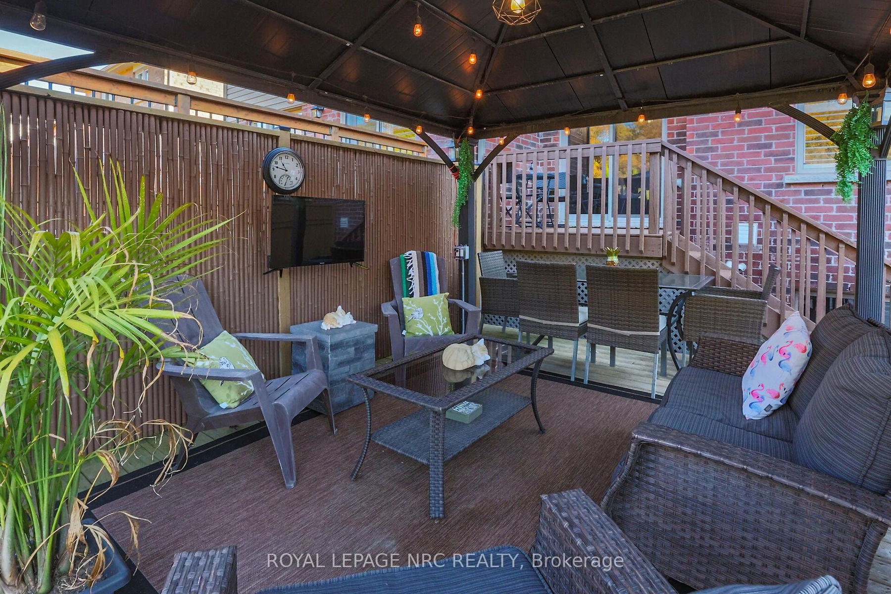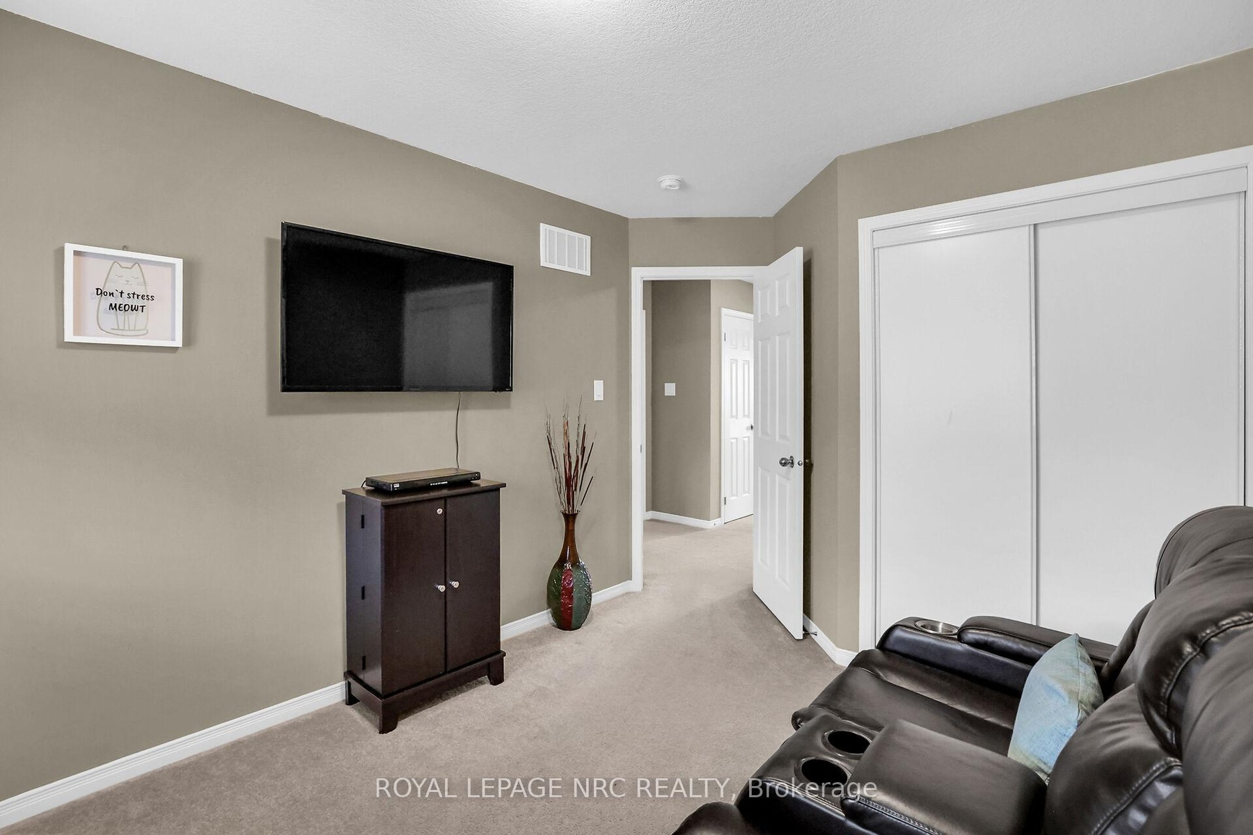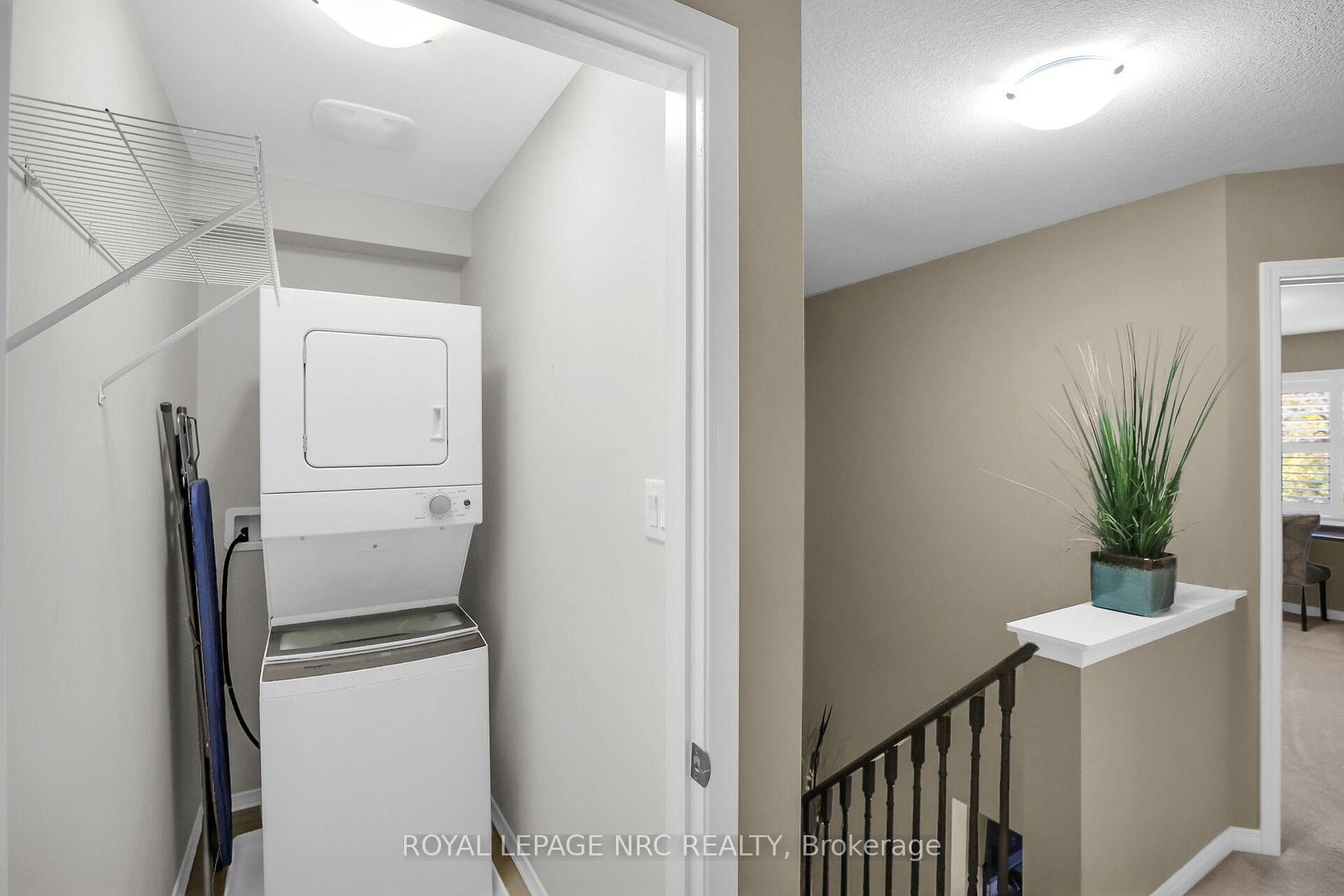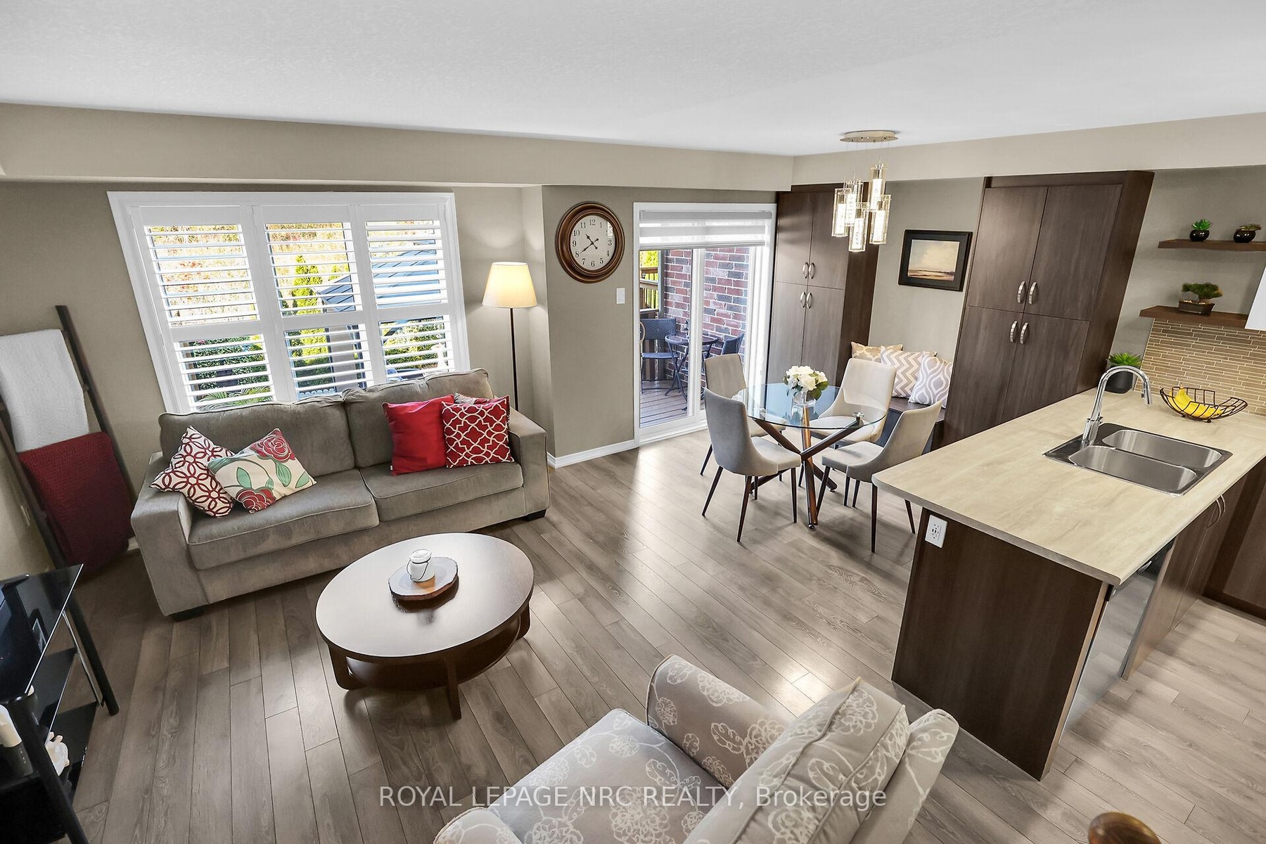 Imagine your daily routine beginning with the backyard views of PICTURESQUE GREEN SPACE, ALONG WARREN WOODS TRAIL, with no rear neighbours to interrupt the view. This 3-bedroom, 2.5-bathroom freehold townhome has a thoughtfully designed open main floor plan. Sleek kitchen with UPGRADES & IMPROVEMENTS incl tile backsplash, chimney-style hood fan, & soft-close drawers. Attention to detail continues into dining area with MATCHING CUSTOM CABINETRY featuring bench, pantry cabinets, & wine rack! Natural light floods the space thru the sliding door, while elegant light fixtures add a touch of sophistication. Retreat to the primary bedrm, a true oasis of calm. ENSUITE is bathed in natural light thanks to a window & features a tile shower with a glass door & potlight. The CUSTOMIZED WALK-IN CLOSET has a built-in hamper! One of the bedrms has been cleverly transformed into a den with custom built-ins, offering a versatile space that can easily serve as a 3rd bedrm. Convenient 2nd floor laundry located across from a spacious closet. 2nd upstairs bathrm is a full 4-piece. FINISHING TOUCHES elevate this home, including a stylish french door, a retractable screen on the front door, California shutters on all main floor & upstairs windows, & zebra blinds on exterior glass doors. Step outside to this serene backyard "retreat" with a spacious DECK (+/- 20ft x 15ft 10in). Unwind or entertain family & friends in this charming space complete with GAZEBO, decorative river rock, some bamboo fencing, & VIEWS THAT ARE A BACKDROP OF FORESTRY & RAVINE. Inviting aggregate front walkway & driveway. Beautiful neighbourhood, nearby shopping, schools, parks including Heartland Forest, walking trails, & future location of new Niagara Falls Hospital. Enjoy easy access to the QEW & the many attractions in the Niagara region, including wineries, golf courses, shopping, & more! This is an exceptional townhome with STUNNING NATURAL VIEWS!