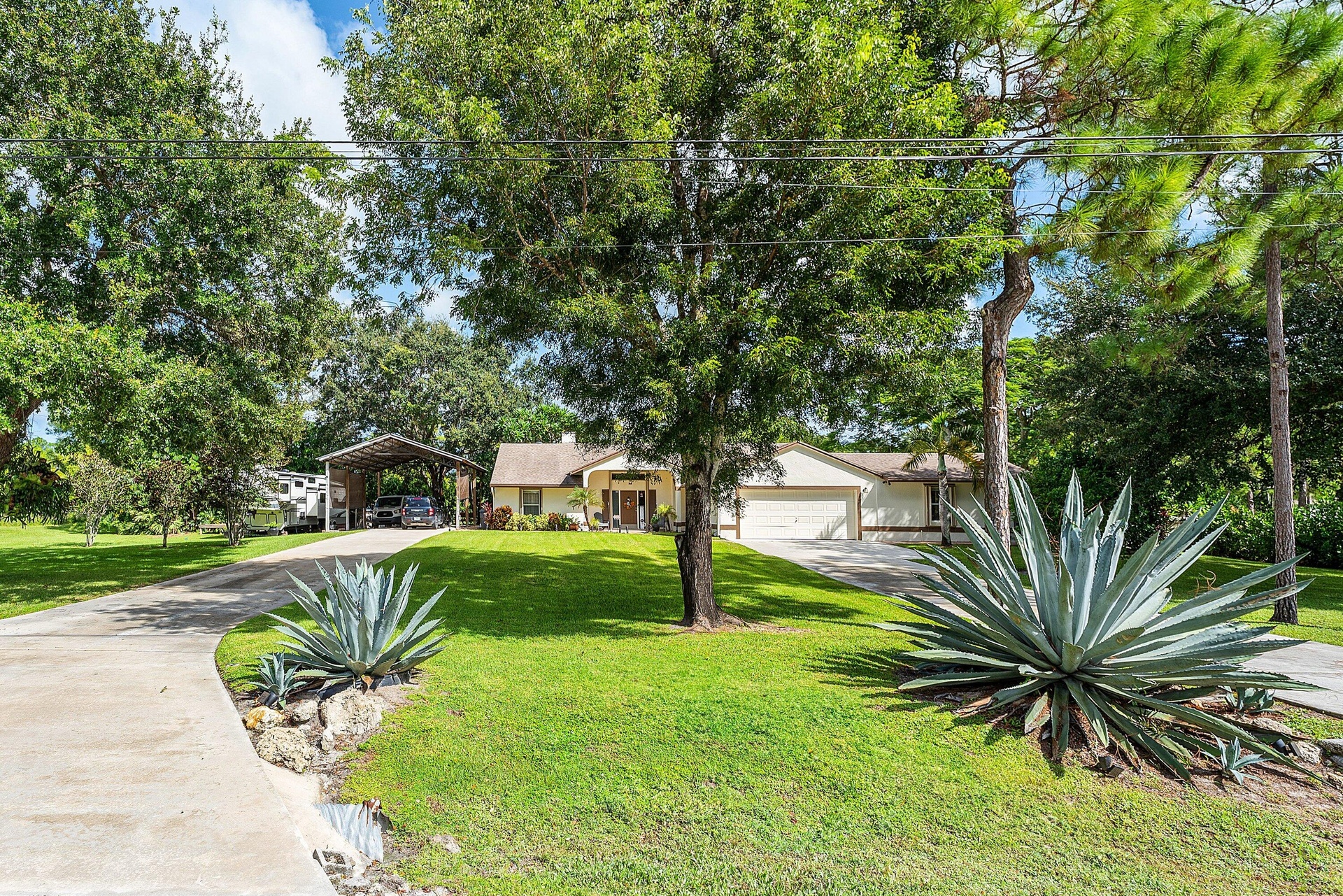 DescriptionWOW FACTOR ALERT! This is a stunning nearly 1.5 acres.retreat of pure Florida paradise. NO HOA, NEW ROOF & RARE DUAL DRIVEWAYS! The main home offers 3 beds / 2 baths, an airy open layout with vaulted ceilings, and a beautifully UPDATED kitchen with granite counters, subway tile, and rich cabinetry. The primary suite impresses with a custom walk-in closet and spa-like CABANA bath. A remodeled IN-LAW SUITE with its own entrance, full kitchen, and bath makes the perfect guest haven or rental! Outside, enjoy your private oasis POOL & HOT TUB with an OUTDOOR SHOWER, covered/screened patio, + a fully fenced yard with canal access on 2 sides. Extra perks: oversized carport with water/electric (boat/RV ready), functioning fireplace, accordion shutters, and generator hookup. Minutes to everything!