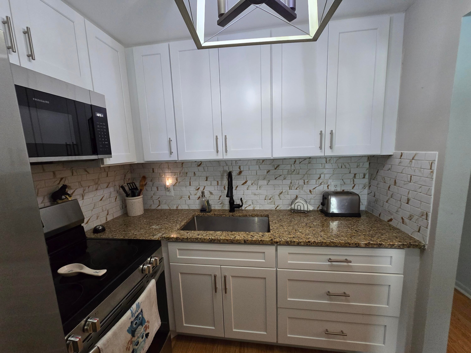 Beautiful ground floor unit displaying renovated kitchen, new stainless steel appliances, one bedroom one bathroom also recently renovated.
