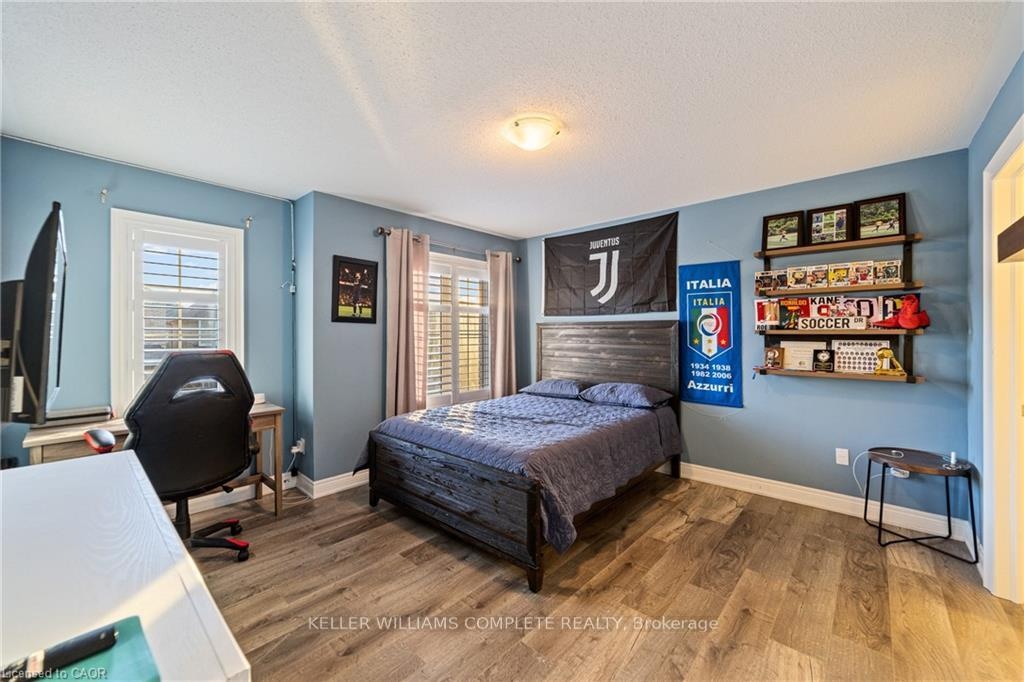 Welcome to 24 Macbean Crescent where elegance meets sophistication, a testament to the ultimate design in every detail. This meticulously maintained 2 Storey home with a gorgeous exterior facade and a double car garage will have you falling in love, not to mention the professionally installed stamped concrete front porch and steps (2021). Over 3000 sq ft of finished living space, 4 spacious bedrooms, 5 updated bathrooms, it truly offers all that you desire! As you enter the home through the upgraded front entrance door (2020), you will appreciate the bright and open foyer with lovely floor tiles (2019) and custom built in cabinets. Next is the luxurious living room, the shiny and bright pot lights that complement the coffered ceilings so seamlessly to the opulent brick veneer wall (2022) and custom built in cabinetry for those memorable family photos. Lets make our way to the exquisite kitchen (2019) with gorgeous cabinetry and cedar stone countertops to add that unique touch. With newer appliances, stylish fixtures, an oversized kitchen island and large sliding doors that lead to the backyard, what more could you ask for? Speaking of the backyard, check that oasis out. Some notable features are the canopy awning (2023) and the exposed aggregate concrete (2023). As we head upstairs you will appreciate that the carpets have been removed & replaced with newer flooring in all the bedrooms. There are 4 spacious bedrooms & 3 bathrooms. Two of the bedrooms have updated ensuites. The primary bedroom has a huge walk-in closet and a 5pc ensuite! All the bedrooms have CUSTOM closet organizers (2023) that were specifically designed for each closet. WOW! The finished basement (2019) provides a kitchenette, a 3-pc bathroom, family area for those get-togethers, and a spacious room that could be used as a gym or office, you decide! This beautiful home is within steps to the conservation area and parks. All other amenities are conveniently located near you.