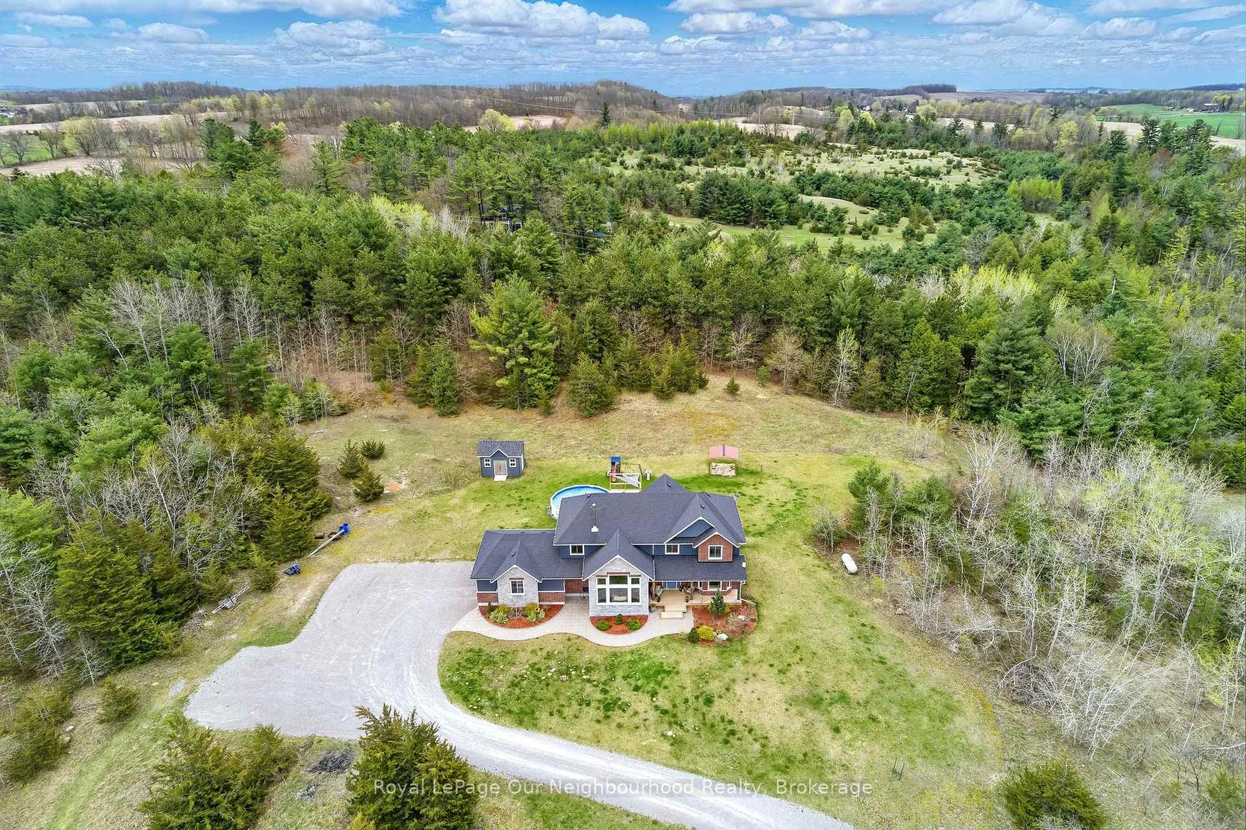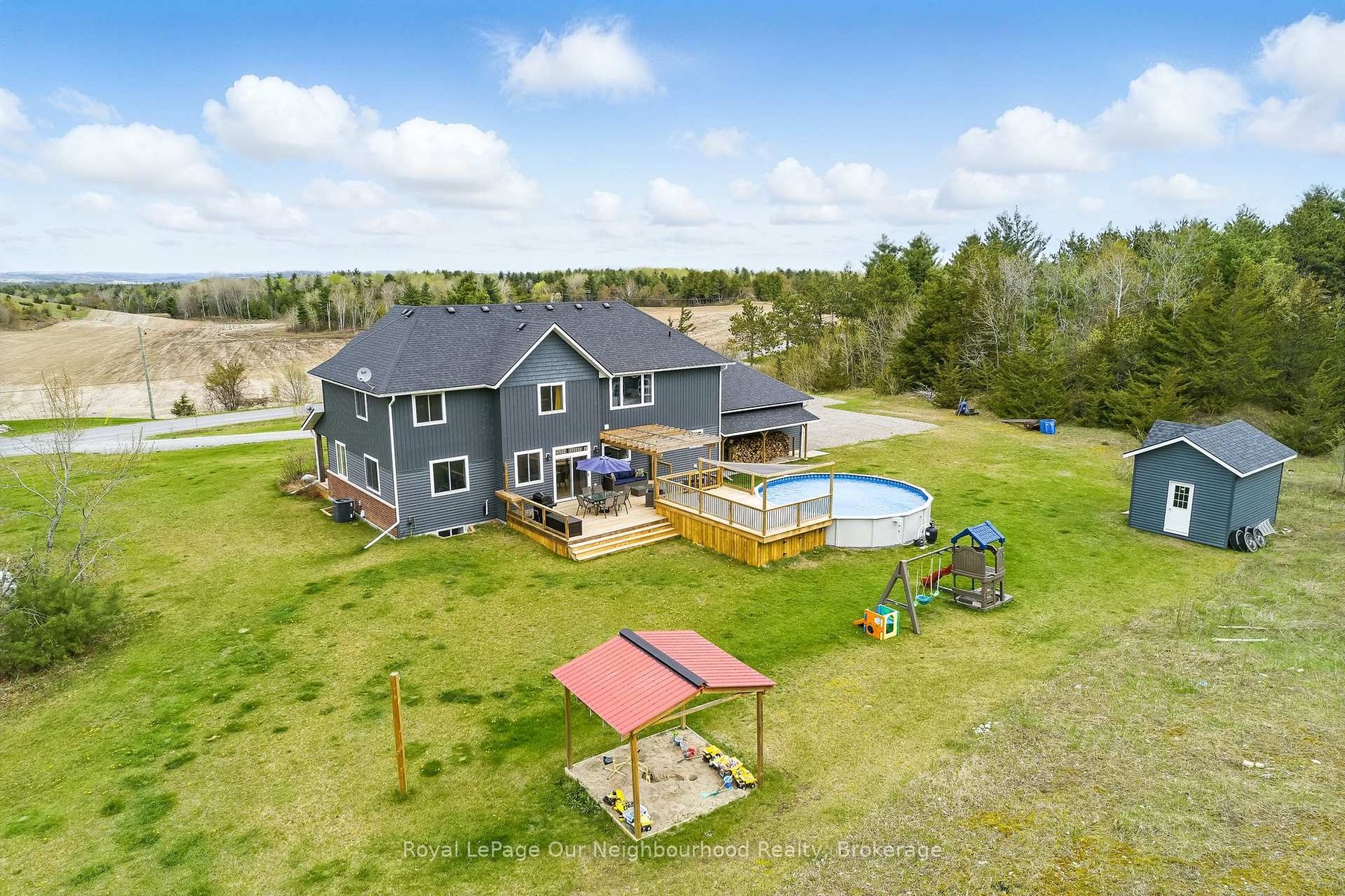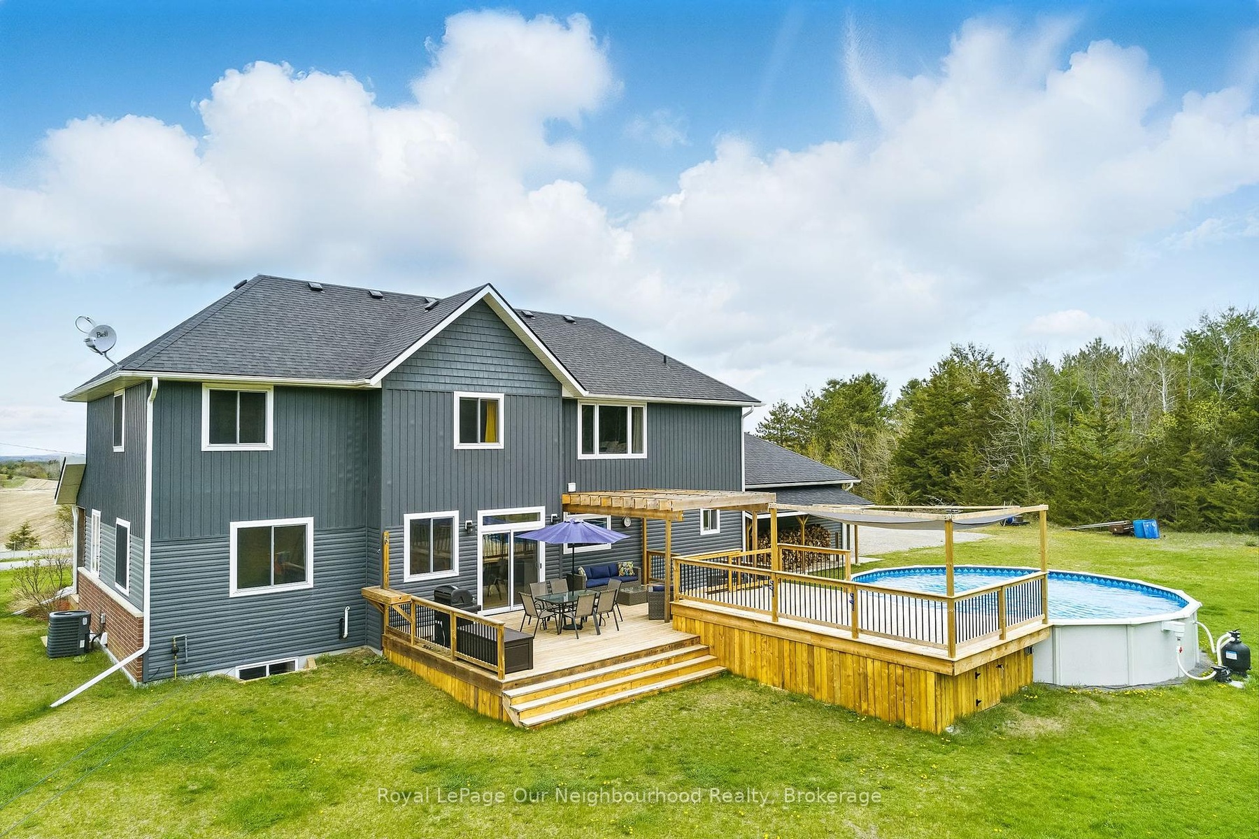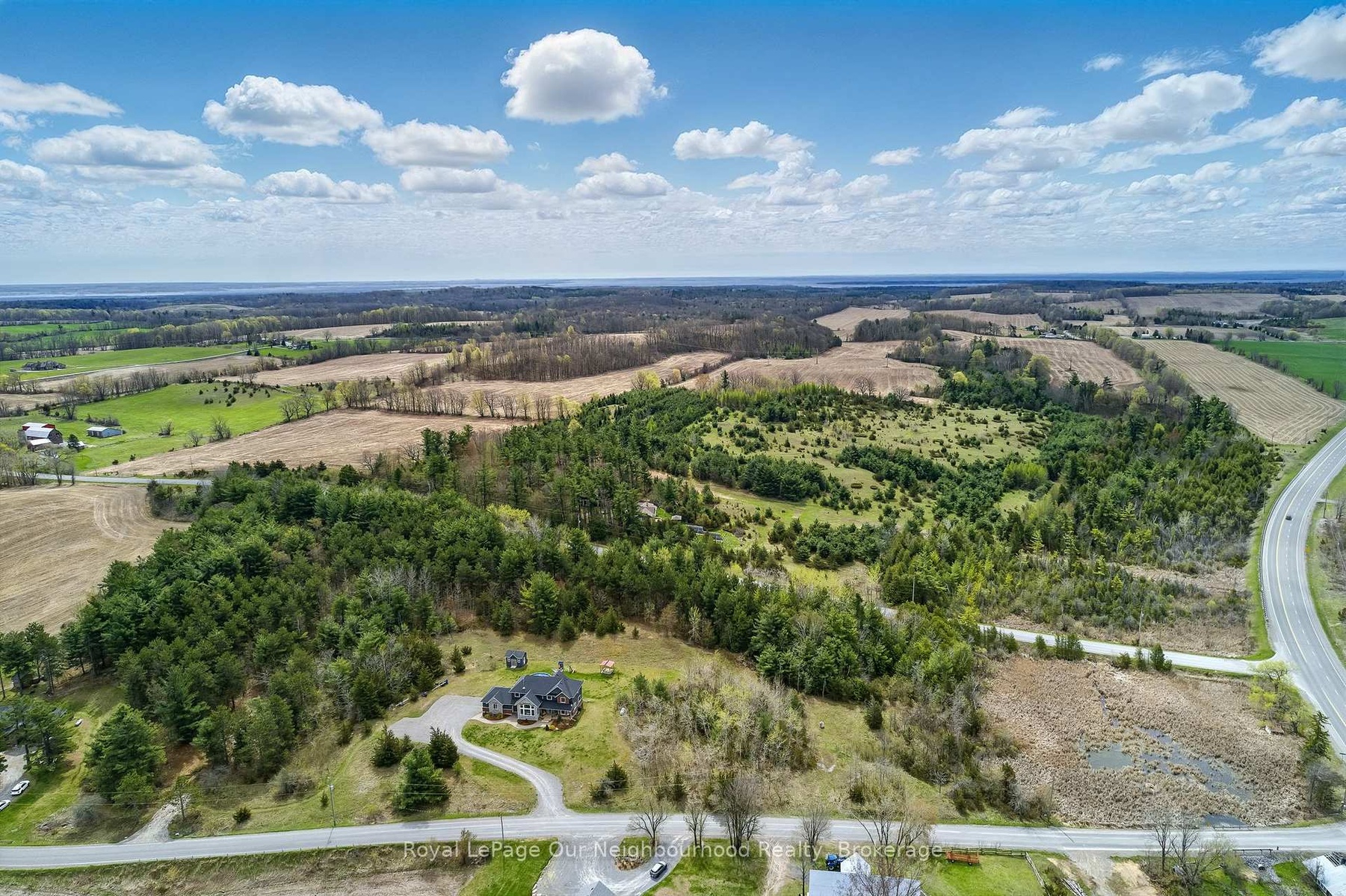 Welcome to 37 Hansen road in beautiful Brighton. The country retreat you've always dreamed of, just down a quiet side road, on over 5 acres of land. With breathtaking views of the Northumberland Hills, this custom 2-storey home offers over 3200 sq. ft of thoughtfully finished living space, blending fine craftsmanship with everyday comfort. Completed in 2020, the home features 5 bedrooms, 2.5 baths, and the finest finishes throughout including 7.5 inch engineered Hickory Hardwood floors (including custom stair treads) and heated tile flooring in the kitchen. The heart of the home is a show-stopping 16x19 great room with soaring 12 foot walls vaulted to 19 feet, accented by custom timber-frame designs and flooded with natural light through the large NorthStar efficient windows. The kitchen is equally impressive with a large island and bar seating, propane cooktop, quartzite counters, and a heated floor for cozy mornings. The well-designed main floor also offers a family room, spacious laundry room, 2 piece bathroom, mudroom/garage entry and large office with built-in cabinetry, adding function and charm. Upstairs, the gorgeous primary suite features a coffered ceiling, walk-in closet, and luxurious ensuite with heated floors and large, custom walk-in shower. Three additional bedrooms and another full bathroom make this level ideal for family living. The partially finished basement offers a fifth bedroom as well as a 'flex room,' and plenty of extra space to grow. The efficient propane furnace and cozy wood burning stove offer warmth on even the coldest days. Enjoy summer days in the 24 foot pool (2023) or unwind on the deck (with propane BBQ hookup) while taking in unforgettable sunsets. Professionally landscaped walkways and gardens (2020) extend the homes elegant charm outdoors. Just minutes to the 401, yet peacefully tucked away, this is more than a house; it's a place to call home.