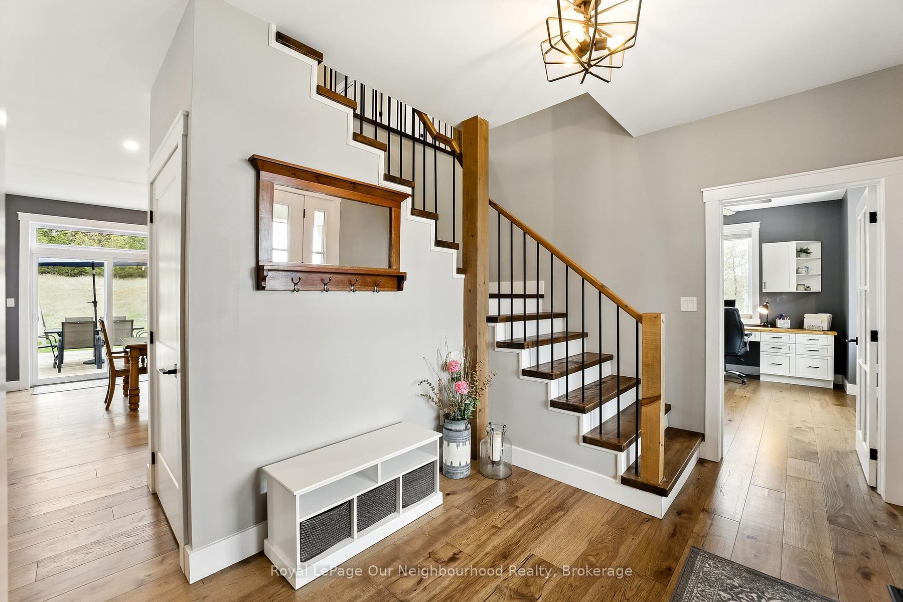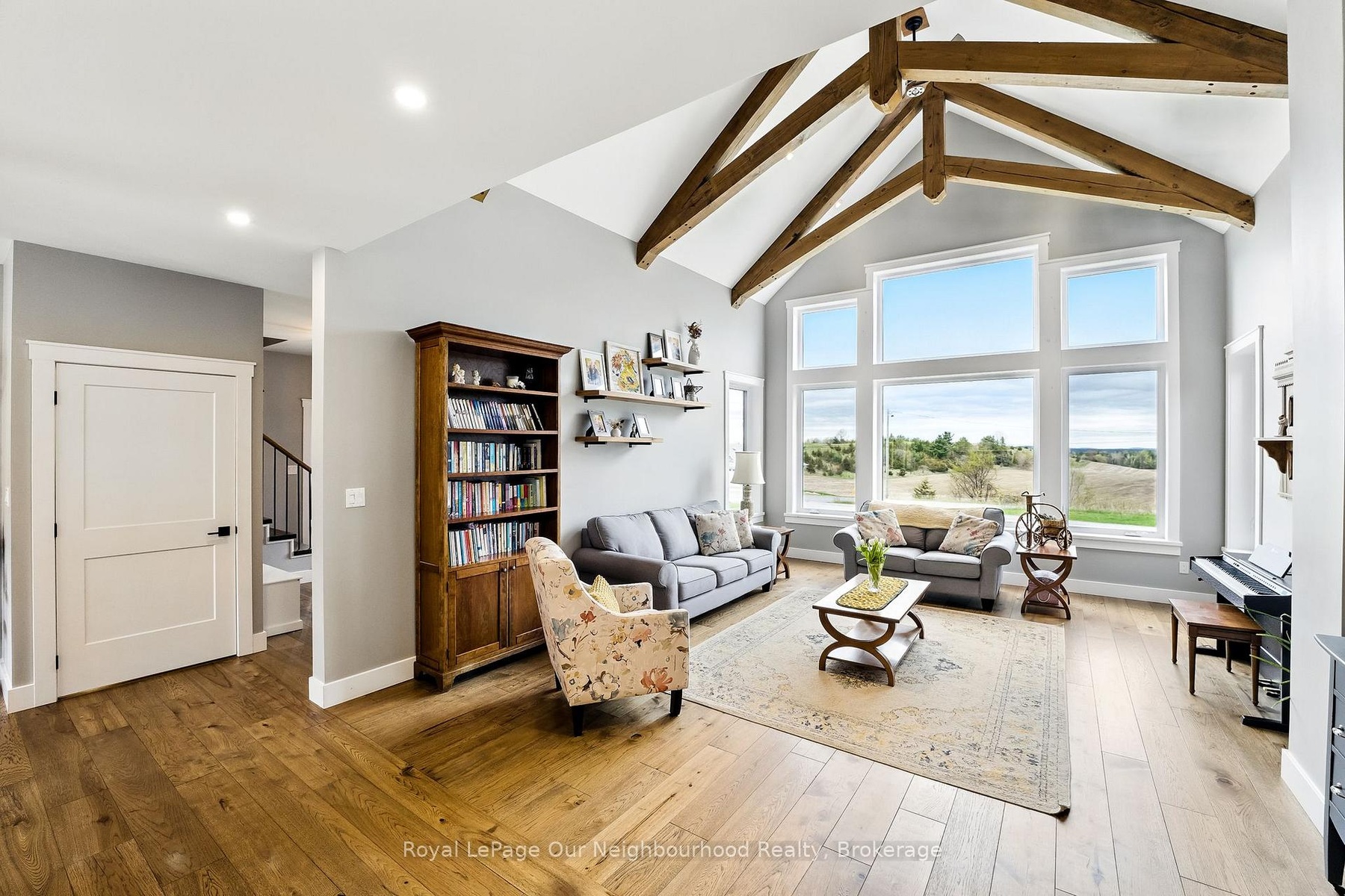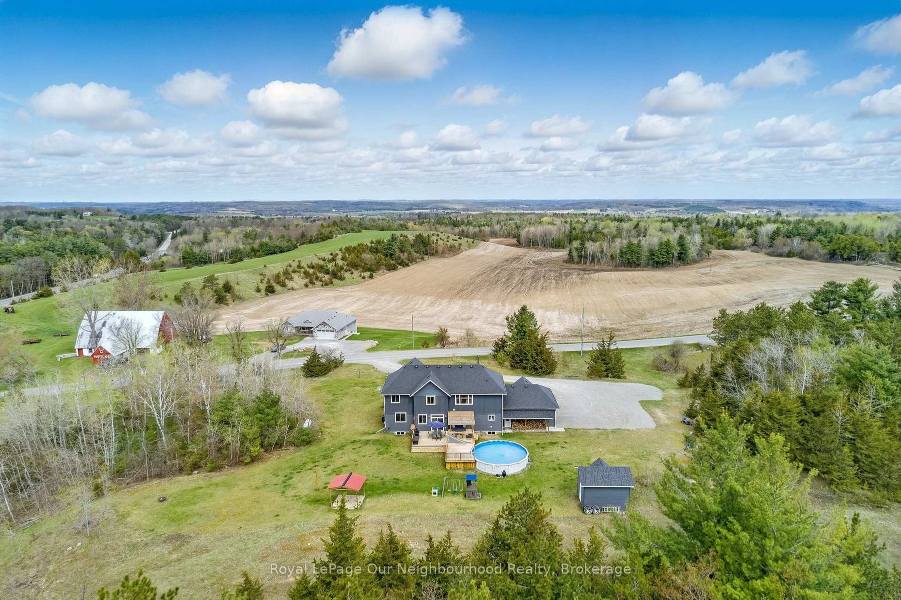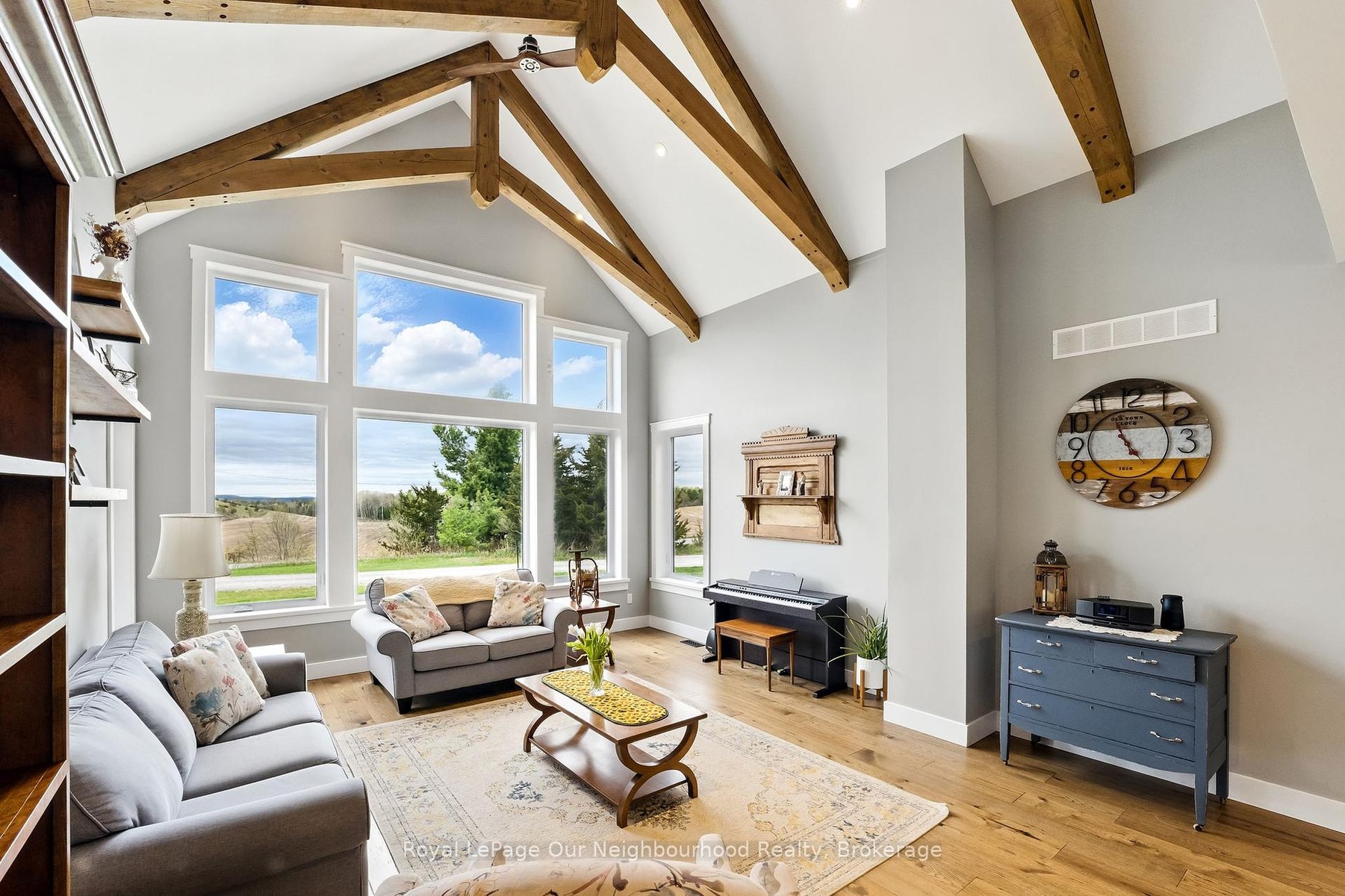 Welcome to 37 Hansen road in beautiful Brighton. The country retreat you've always dreamed of, just down a quiet side road, on over 5 acres of land. With breathtaking views of the Northumberland Hills, this custom 2-storey home offers over 3200 sq. ft of thoughtfully finished living space, blending fine craftsmanship with everyday comfort. Completed in 2020, the home features 5 bedrooms, 2.5 baths, and the finest finishes throughout including 7.5 inch engineered Hickory Hardwood floors (including custom stair treads) and heated tile flooring in the kitchen. The heart of the home is a show-stopping 16x19 great room with soaring 12 foot walls vaulted to 19 feet, accented by custom timber-frame designs and flooded with natural light through the large NorthStar efficient windows. The kitchen is equally impressive with a large island and bar seating, propane cooktop, quartzite counters, and a heated floor for cozy mornings. The well-designed main floor also offers a family room, spacious laundry room, 2 piece bathroom, mudroom/garage entry and large office with built-in cabinetry, adding function and charm. Upstairs, the gorgeous primary suite features a coffered ceiling, walk-in closet, and luxurious ensuite with heated floors and large, custom walk-in shower. Three additional bedrooms and another full bathroom make this level ideal for family living. The partially finished basement offers a fifth bedroom as well as a 'flex room,' and plenty of extra space to grow. The efficient propane furnace and cozy wood burning stove offer warmth on even the coldest days. Enjoy summer days in the 24 foot pool (2023) or unwind on the deck (with propane BBQ hookup) while taking in unforgettable sunsets. Professionally landscaped walkways and gardens (2020) extend the homes elegant charm outdoors. Just minutes to the 401, yet peacefully tucked away, this is more than a house; it's a place to call home.