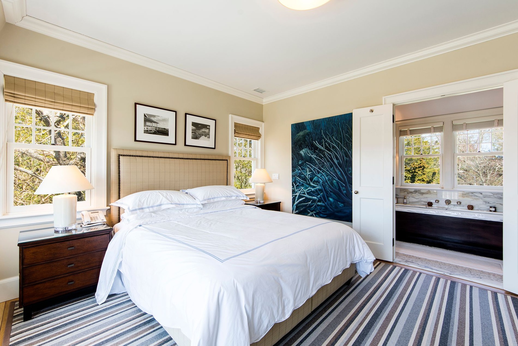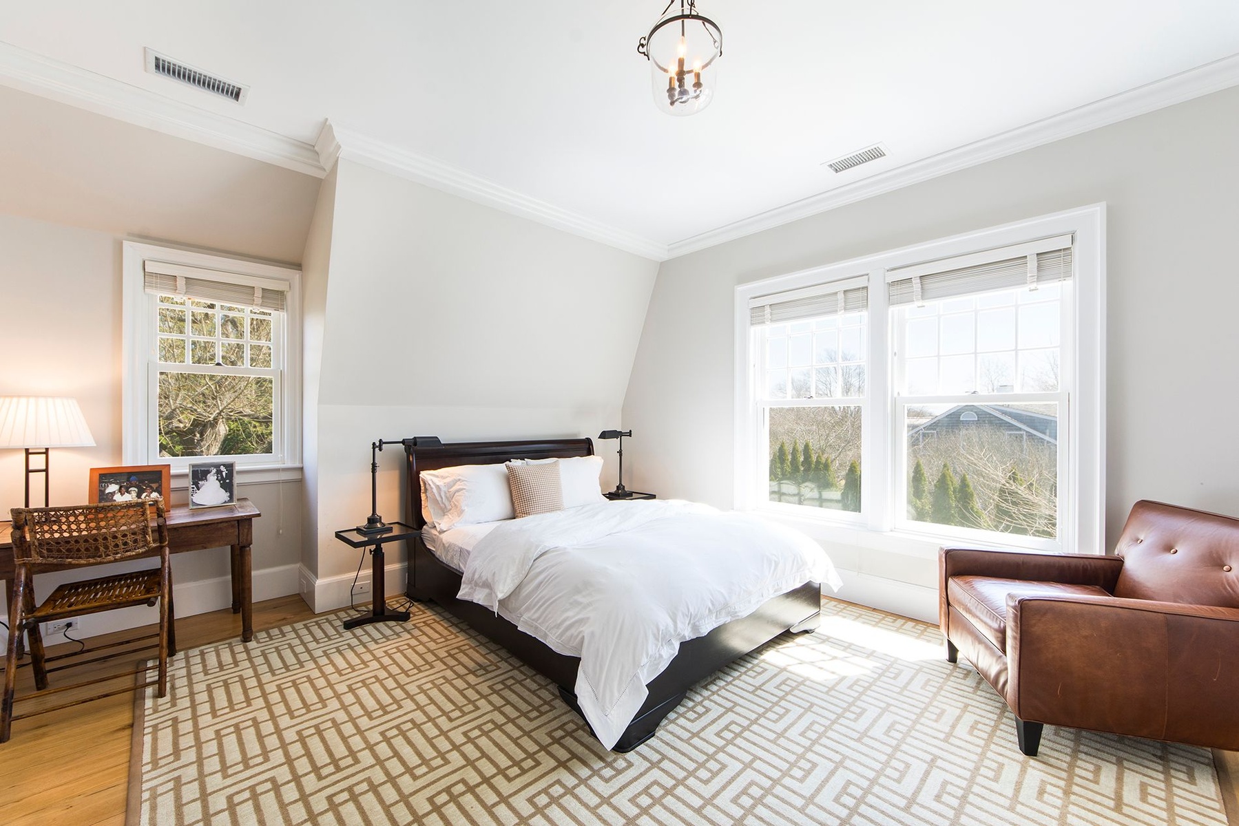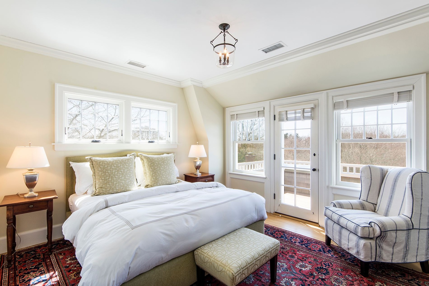 Traditional house and studio cottage in one of the few areas of East Hampton village that enjoys the rare combination of close proximity to both ocean beaches and village restaurants and shops. The 5,000 sq.ft. house designed by architect Peter Schulte features gracious proportions, high ceilings and beautiful details throughout. Ground floor comprises entry stair hall; sunny step-down living room with French doors to bluestone terrace; library, den; master bedroom and bath; open plan kitchen and dining room; screened porch. Second floor finds main master bedroom suite including office and balcony; three en-suite bedrooms. Five fireplaces. The finished lower level includes an additional bedroom and bath, wine room and recreation room. A separate studio cottage features a living room with fireplace and full bath and outside shower. The 1.45 acre grounds are the perfect setting for the 45' pool and are extremely private, abutting Hook Pond estuary and a large nature preserve to the west and opposite Egypt Green to the east. Near Old Beach Lane and Wiborg ocean beaches.