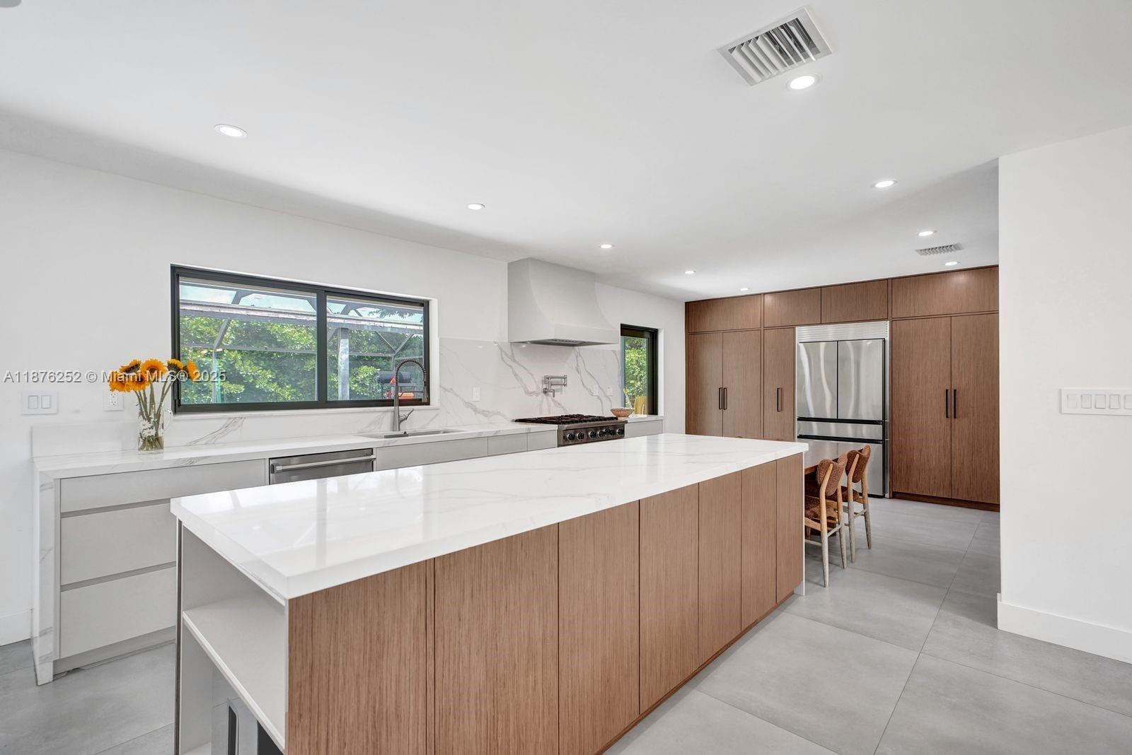Stunning 4 bedroom & 3.5 bath with pool in the popular area of SOUTH KENDALE!!! From the moment you walk into this house you will be captivated by the open-concept layout enhanced by clean lines, designer lighting & minimalist aesthetic design. Open kitchen layout featuring a stylish island, quartz countertops & European walnut cabinetry with warm yet modern design. All baths have been renovated with new plumbing, drains ,waterlines & updated modern water fixtures & customized vanities. Impact windows and doors, city gas for the generator, stove, water heater, and dryer. New tankless water heater for 4/5 baths, electrical weather proof panels and generator's panel .Property sitting in a large lot of over 10,000 sq ft. w/plenty of room for a big boat. LOOK NO MORE...