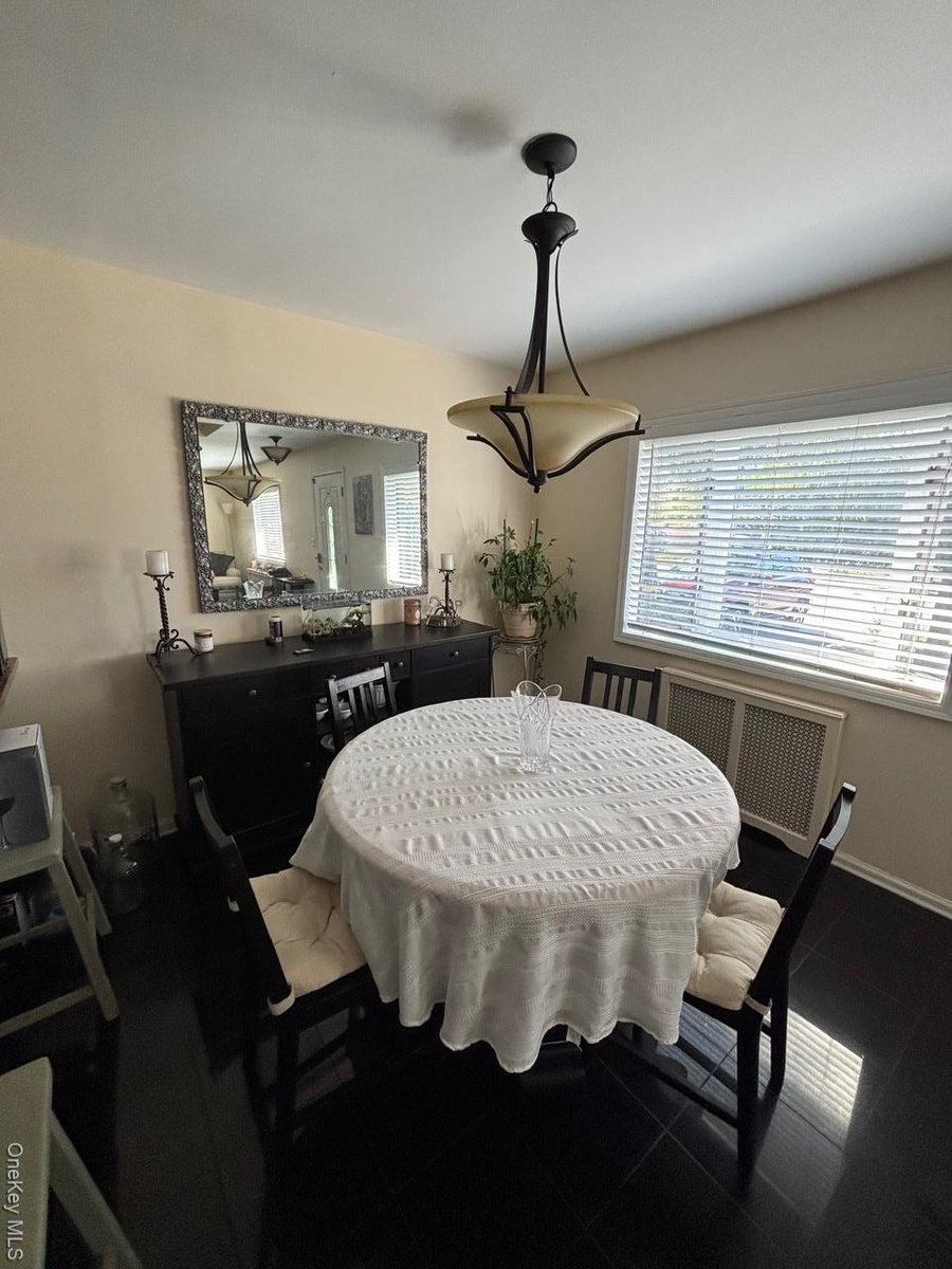 - Dining area featuring radiator heating unit and baseboards