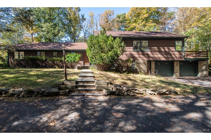 Nestled in complete privacy on 3.25 acres and surrounded by nature, this extraordinary mid-century modern home offers some of the most spectacular views you’ll find anywhere in the Hudson Valley. Designed to embrace light, space, and scenery, this 4 bedroom, 3.5 bath retreat perfectly blends timeless architecture with modern comfort. Gleaming hardwood floors and beamed ceilings highlight the stunning main level, where warm wood paneling and expansive windows create a seamless connection to the outdoors. The open-concept living and dining areas feature a gorgeous stone fireplace and flows effortlessly onto a large bluestone patio - perfect for entertaining while soaking in the breathtaking vistas. The spacious eat-in kitchen offers abundant cabinetry, a double sink, stainless steel appliances, and plenty of workspace. The expansive first-floor primary suite is a true sanctuary, featuring a private sitting room or den/flex space and a beautifully updated spa-like bath with marble flooring, double sinks, a massive walk-in shower, and exquisite tile work. A charming three-season room and a convenient half bath complete the first floor’s thoughtful layout. Upstairs, you’ll find three additional generously sized bedrooms, including a private “princess suite” with its own full bath, separate entrance, and deck with hot tub - ideal for guests or multi-generational living. A third full bath serves the remaining bedrooms. The walkout lower level offers a spacious family room, perfect for relaxing or entertaining, as well as a large utility/laundry room with stainless steel washer & dryer and workshop area. Outdoor living shines here with a 20’ x 40’ inground pool, a quaint pool house, and multiple seating areas designed to take in the panoramic views. Additional features include central air on the main level, a two-car garage with automatic doors, and ample storage throughout. Private, peaceful, and architecturally striking - this one-of-a-kind property captures the essence of mid-century modern living while offering modern luxuries and views that will take your breath away. Just minutes to the Arlington Town Center, Vassar Hospital, Mid-Hudson Regional Hospital, Vassar College, Marist College, The Culinary Institute of America, Poughkeepsie Train Station (Metro North), the Bardavon Performing Arts Center and Poughkeepsie's thriving culinary and arts scene. Don’t miss this truly special home.