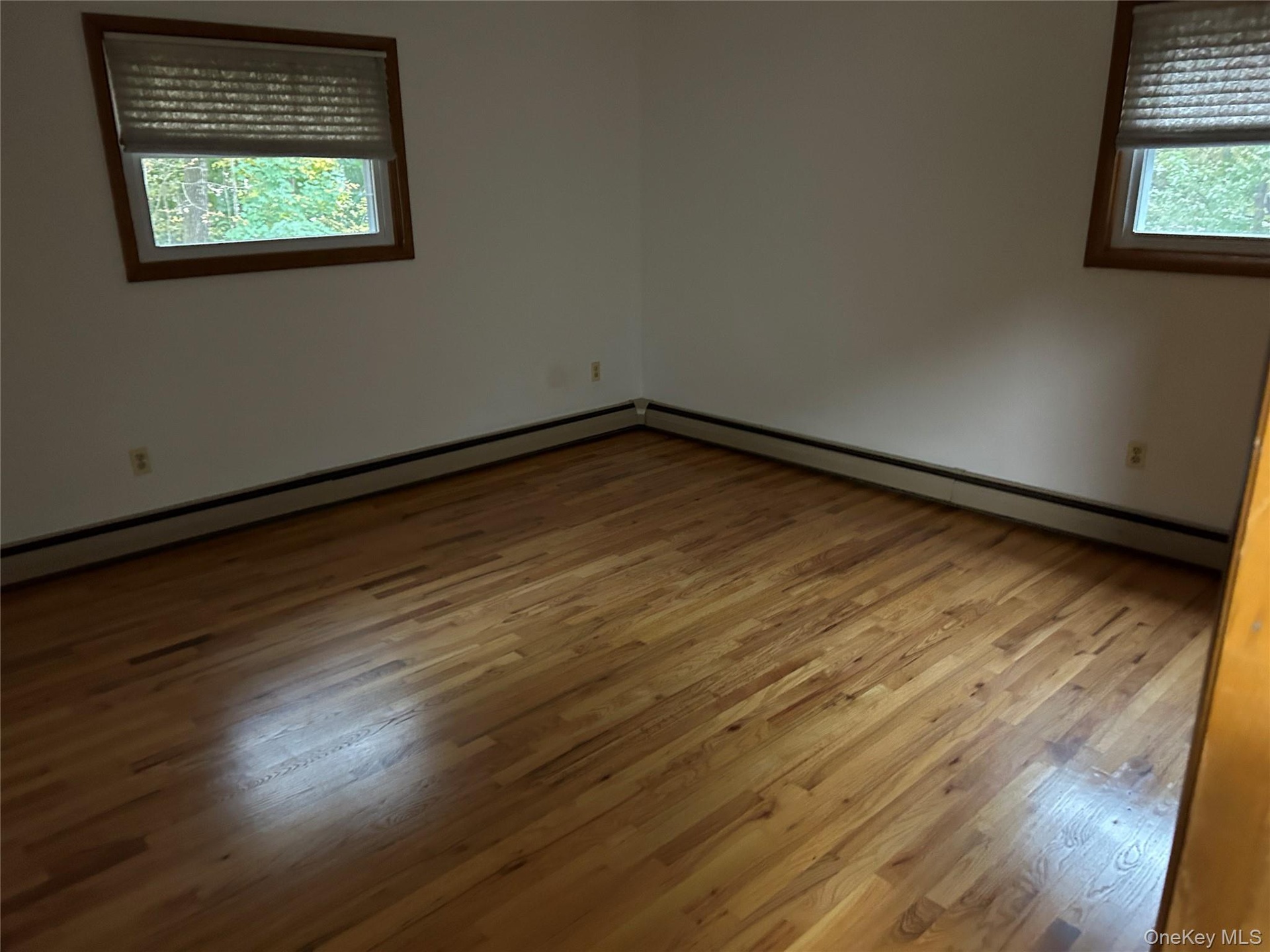 - Unfurnished room featuring light wood-style floors and a baseboard heating unit