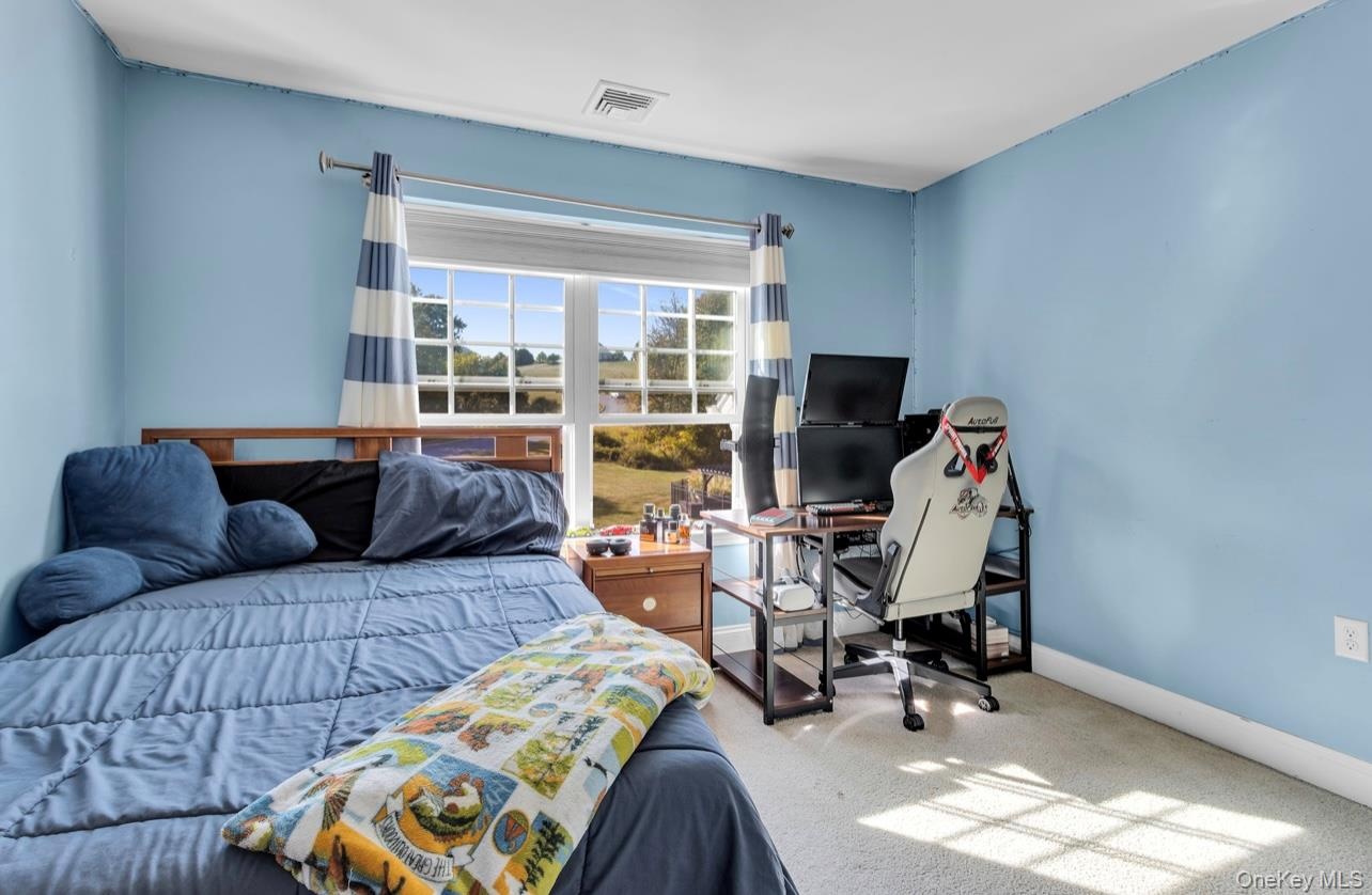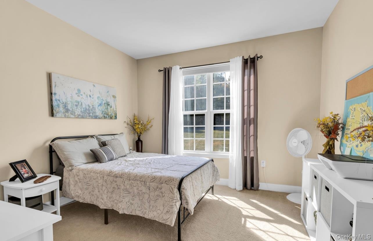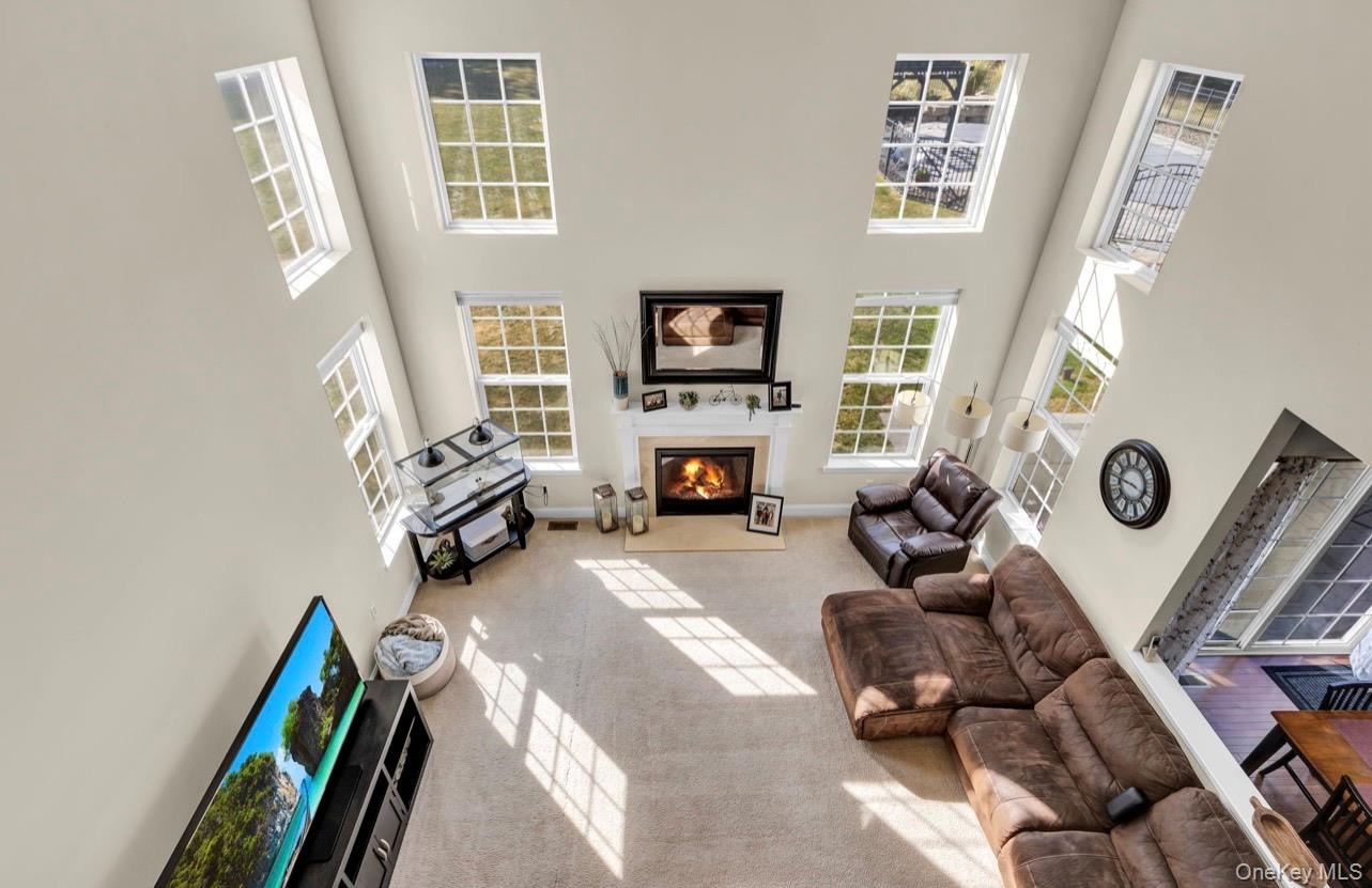 Come view this beautiful brick Majestic Colonial style home situated in a highly sought after neighborhood of Rock Tavern. This spacious 4bd 3bth with 3,342 sq.ft. that sits on almost 2.0 acres of beautiful sprawling property is ready to view. The impressive two-story grand entryway flooded with natural light which flows seamlessly into a bright living room and formal dining room. The main level consists of the bright and airy family room with gas fireplace flowing into a gourmet style kitchen which is a true highlight feature of the home. Boosting stainless steel appliances, plenty of cabinet space, center island and granite countertops. Sliding glass doors from dinette area goes directly to the back patio. There is an additional room on this level for an office or den or possible 5th bedroom. On to the second level which is accessible from dual staircases in the home leading to a balcony overing looking the family room. The oversized primary suite offers a luxurious retreat with a sitting room, double spacious walk in closets, a spa-like bathroom that includes a jacuzzi spa and large shower and dual vanities. Three additional roomy bedrooms ensure that there's ample space for everyone. The basement offers substantial storage options, catering to all your organizational needs. Parking is so convenient with the two-car attached garage and newly expanded driveway. The heated in-ground pool with decorative stone work is a haven of tranquility and adds a touch of luxury and leisure to your backyard. A great retreat for hosting parties or just family relaxation. Roof is brand new! Commuting is effortless with a quick 8-minute commute to trains that conveniently connect you to NYC. Close to shopping, schools and parks. Schedule your tour today, its a must see.