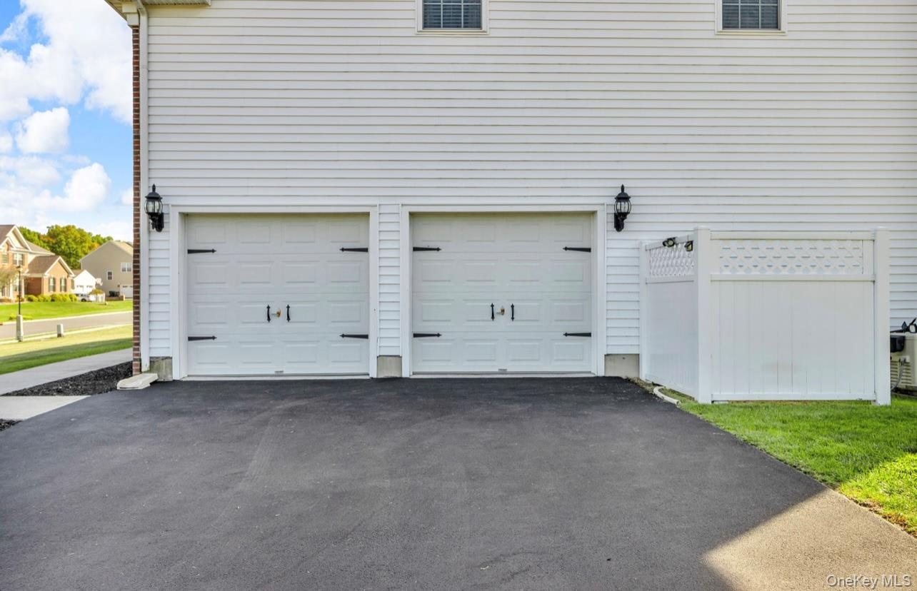 - View of home's exterior with a garage, a yard