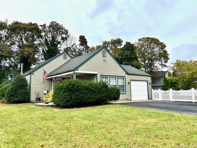 Welcome home to this beautifully maintained ranch situated on a corner, fully fenced lot with a covered front porch. The kitchen offers stainless steel appliances including a new dishwasher, gas cooking and is open to the dining area, den and living room. Features include a new driveway (2025) for 4 cars and accessable from the side road for easy access, new central air (2025), natural gas heat, vaulted ceilings with wood beams and skylights, gleaming hardwood floors, and a cozy wood-burning fireplace, 7 zone inground sprinklers, 200 amp service, roof (2010), LED hi-hats, Washer & Gas Dryer (2022), Stainless Chimney Liner (2023), Attic with pull down stairs, Cesspool with overflow and serviced in 2024, 20' x 30' deck with outdoor speakers, full basement, shed, and a reverse osmosis water filtration system. This home is conveniently located near the Main Street shops and restaurants, Shorefront Park, and the Davis Park Ferry. Don't miss this one! Basic STAR savings is $967.94