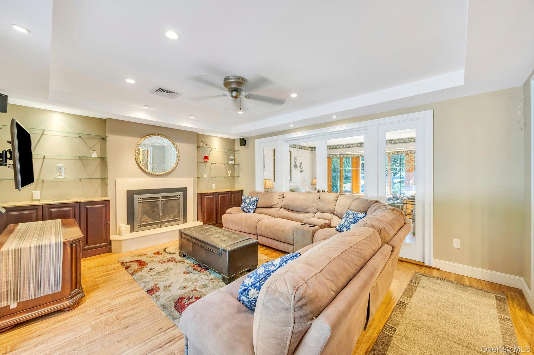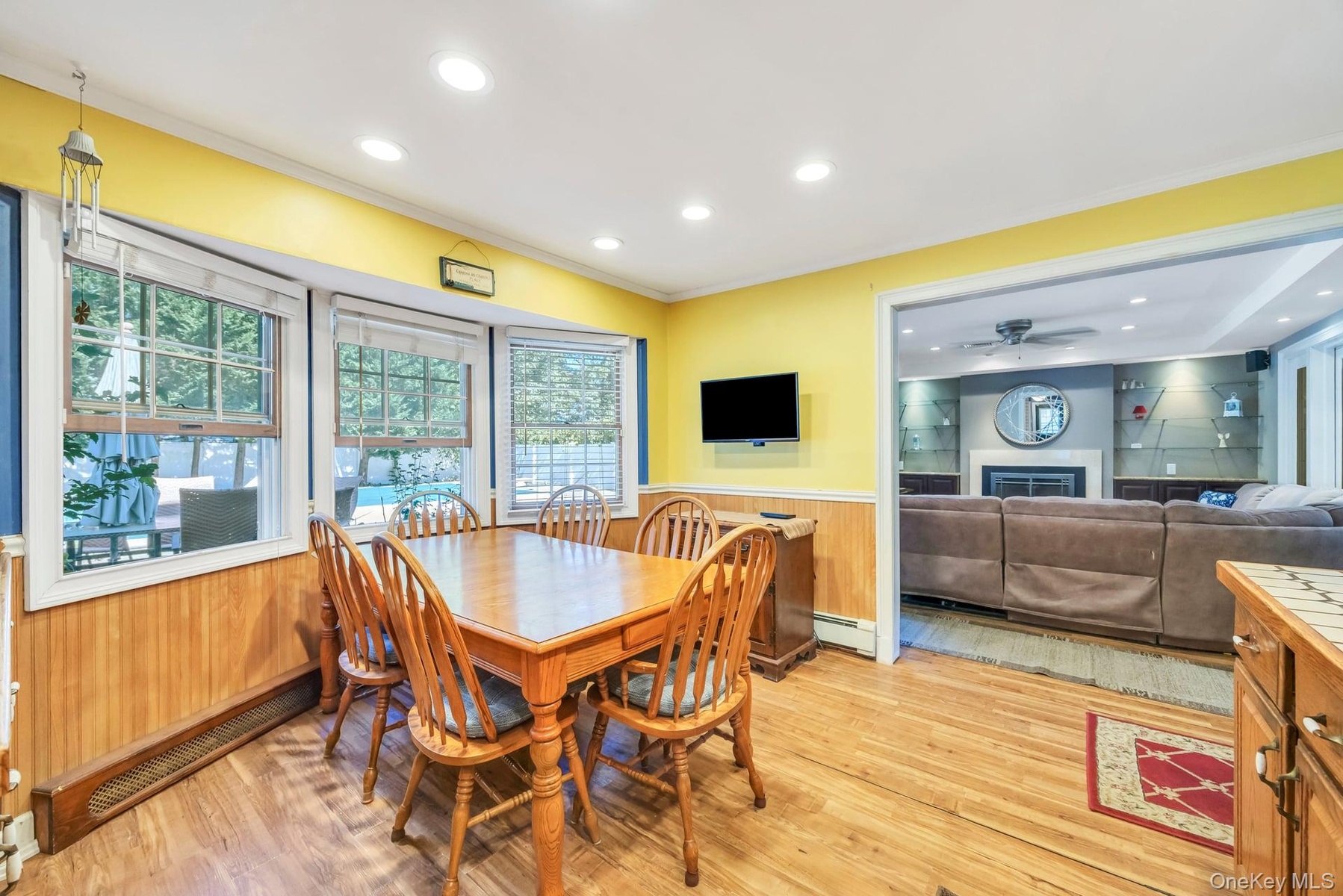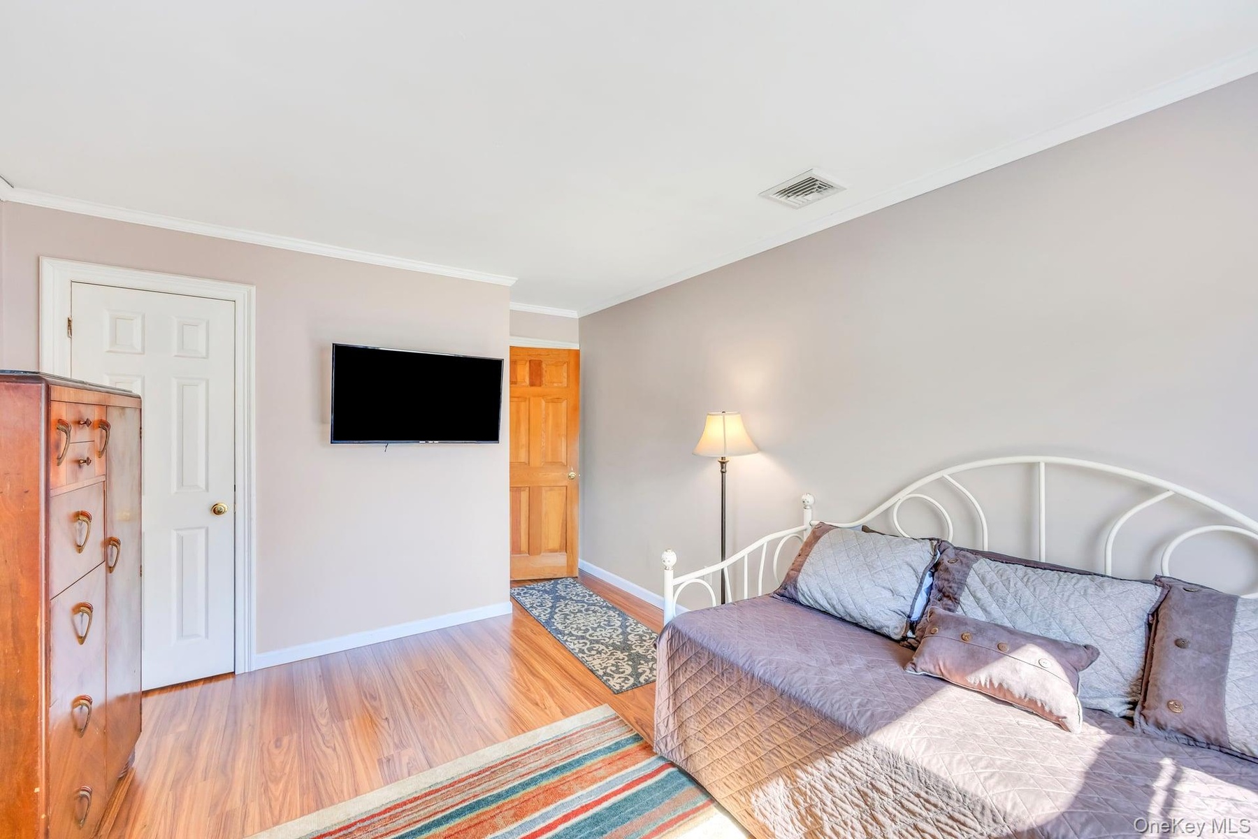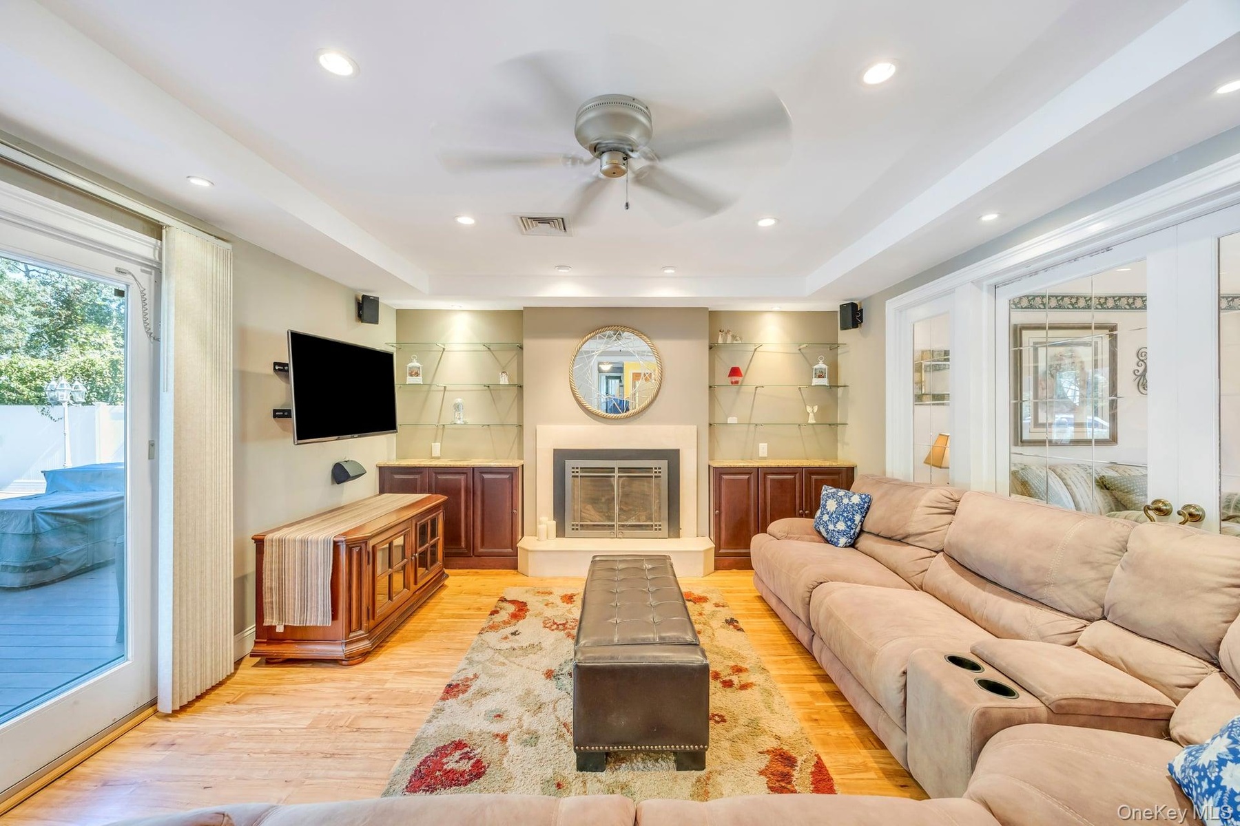 Incredible opportunity to own a magnificent colonial set on just shy of a half-acre corner lot on a quiet dead-end street, boasting stunning curb appeal with a beautiful blacktop driveway, paving stone borders, skirt, front path, and porch, all framed by elegant white PVC fencing. The exterior features full vinyl siding with a custom lower-level stone facade and cedar impression vinyl above, blending timeless craftsmanship with low-maintenance durability. Step into a resort-style backyard designed for entertaining, complete with multi-level Trex decks for no-maintenance enjoyment, multiple seating areas, and a sparkling inground swimming pool with a brand-new liner, all set within a fully fenced, private yard. Inside, an open and sun-filled floor plan showcases rich hardwood floors, custom molding, and detailed millwork throughout. The dining room flows seamlessly into the chef’s kitchen, which is equipped with maple cabinetry, tile countertops, stainless steel appliances, and a gas range with abundant counter and storage space. The formal living room transitions into a dramatic great room with coffered ceiling, recessed lighting, ceiling fan, built-in cherry cabinetry with granite counters, glass shelving, and gas fireplace with sliders to the yard. A stylish powder room with wainscoting and a dedicated laundry room with front-loading washer and dryer complete the first floor. Upstairs, the expansive primary suite is a true retreat, featuring hardwood floors and a spa-like bath with floor-to-ceiling tile, oversized glass shower, double vanity with granite countertops, and towel drying rack. Additional spacious bedrooms and a beautifully appointed hall bath with glass tub/shower complete the second level. The home is enhanced by central AC, efficient gas heat, and placement within the highly sought-after Smithtown School District.