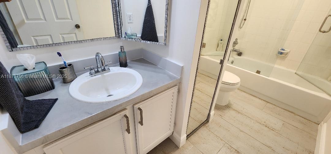 A great 2 Beds, 2.5 bath townhome in Rock Creek, the very desirable Cooper City! The kitchen has an Epoxy countertop (also in the bathrooms), SS appliances, washer & dryer machines, all from 4 years ago, and new tiles in the kitchen and bathrooms. Upstairs 2 big masters; big closets a full private bath, a laminate floor, and a little balcony in each room. Big size of the fenced patio, enjoy the family / BBQ or gardening. Impact sliding doors on the first floor. Walking distance to Camelot Gardens sub-pool and another big community pool for the rest of Rock Creek's neighbors. Rock Creek is a quiet and friendly family community that offers playgrounds, basketball and tennis courts, a gym, a clubhouse, and walking trails. The owner is a realtor, so please do not make marketing calls.