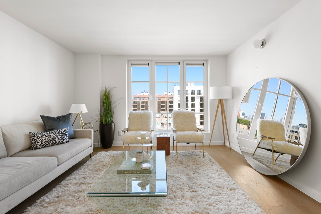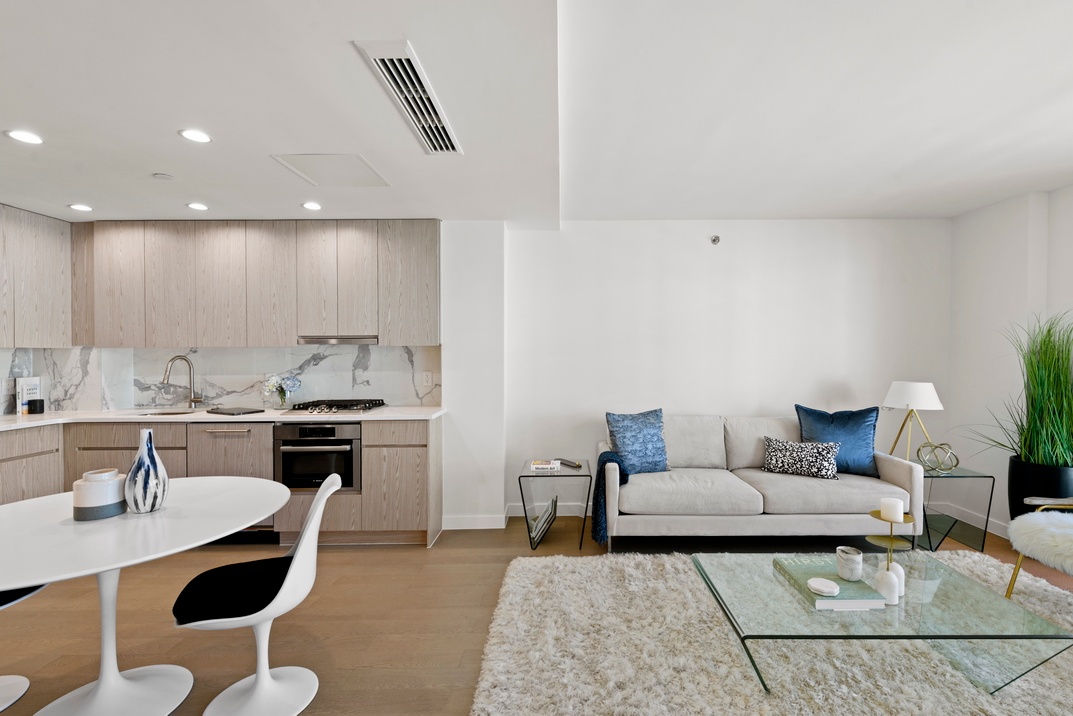 Located in trendy neighborhood of Dutch Kills, Long Island City, this elegant 1-bedroom, 1-bathroom condo offers an efficient layout and oversized five-paned windows let in plenty of natural light while sound-proofing the space. Gorgeous 5" plank oak floors and soothing organic tones run throughout the home. A VRF heating and cooling system gives residents precision temperature control in each room. A smart lock entry door and Akuvox intercom system make access easy yet secure.
