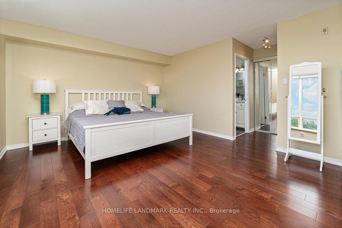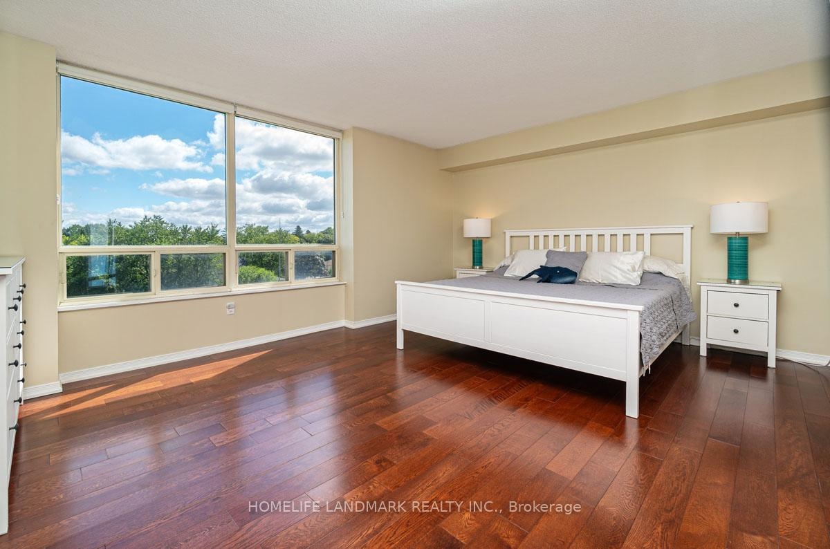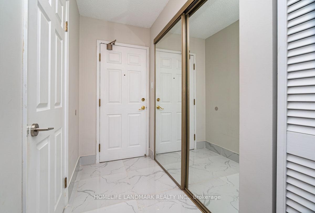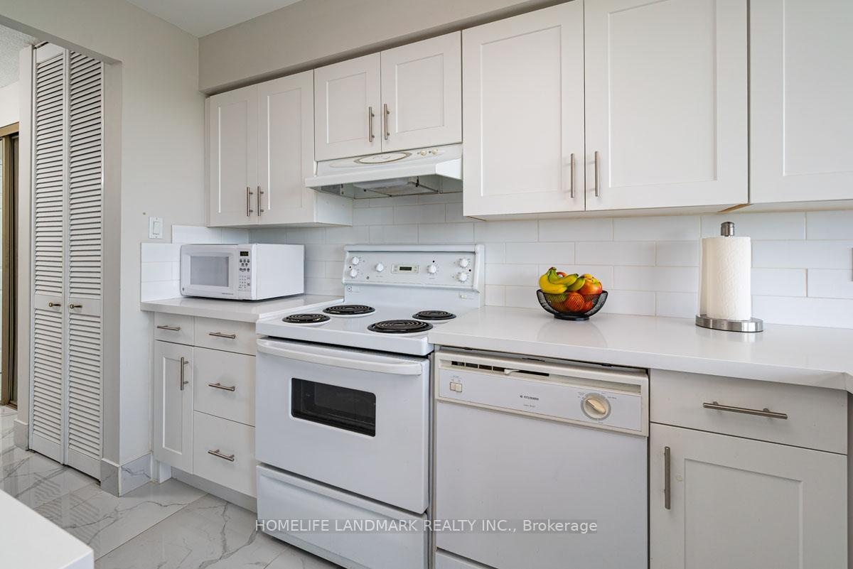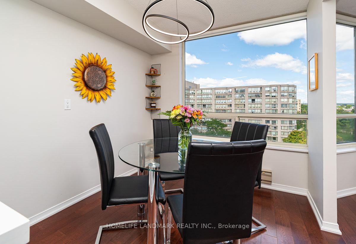 This expansive 2-bedroom, 2-bathroom corner suite facing North-East with a view of swimming pool and tennis court with added solarium spans approximately 1336 sq. ft. and is bathed in natural sunlight. Step through an upgraded, modern kitchen featuring porcelain tiles and quartz counters. The primary suite offers a walk-in closet and 4-pc ensuite bathroom. Having a solarium ideal for home-office or gym. For recreation and wellness, enjoy access to a fitness centre, outdoor pool, tennis and squash courts and saunas-all within your building. Situated just a stroll from Go transit and local buses, and close to shopping, schools, parks, and dining, this home perfectly balances tranquil living with urban convenience. Don't miss this fusion of cofort, luxury and lifestyle in one exceptional condo home.