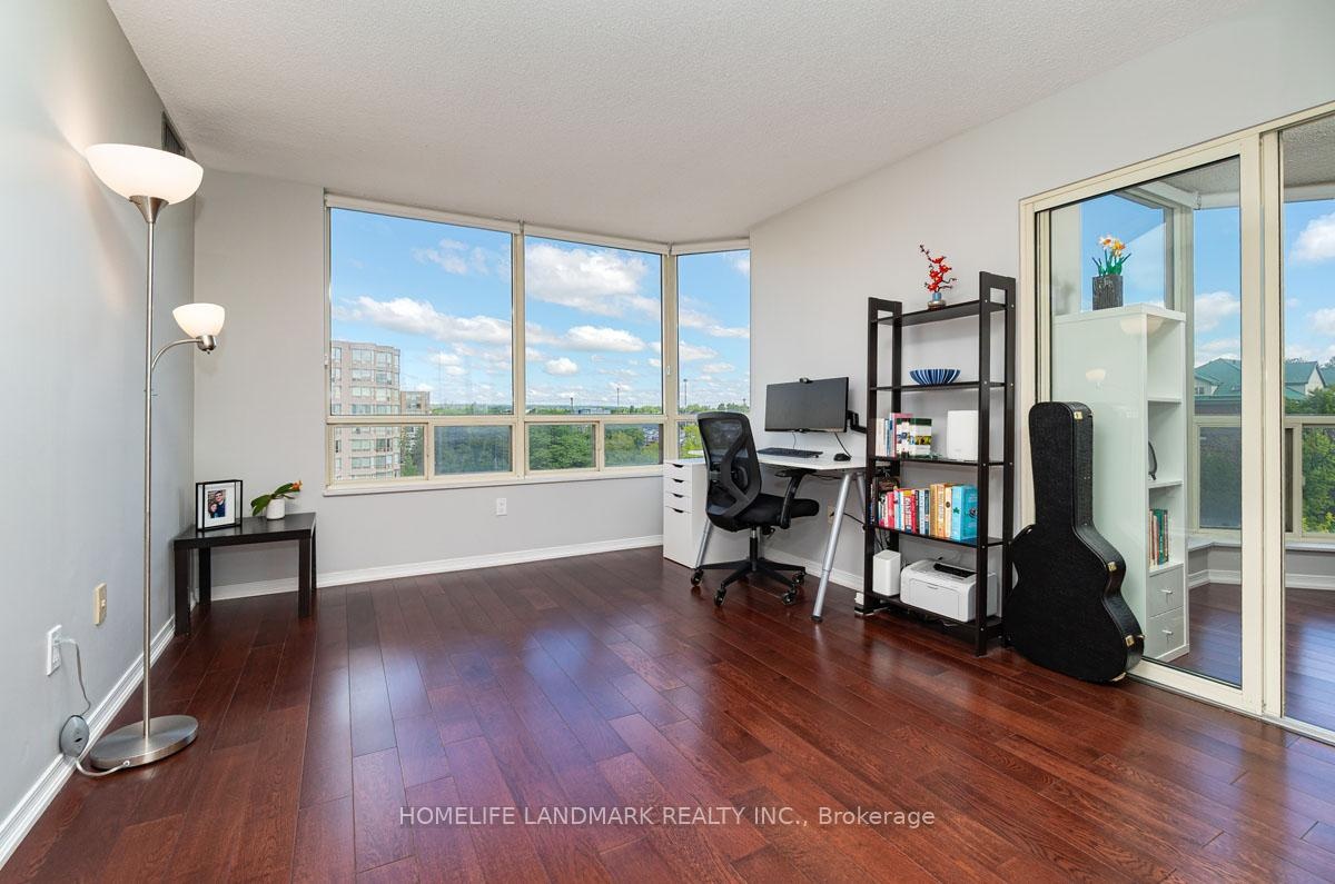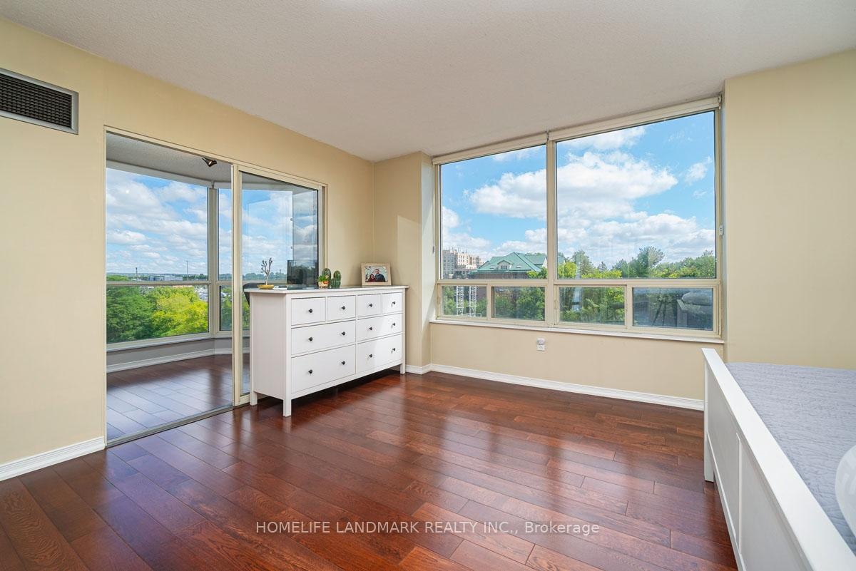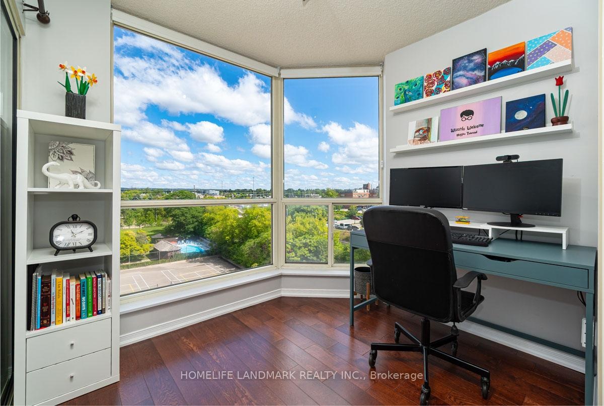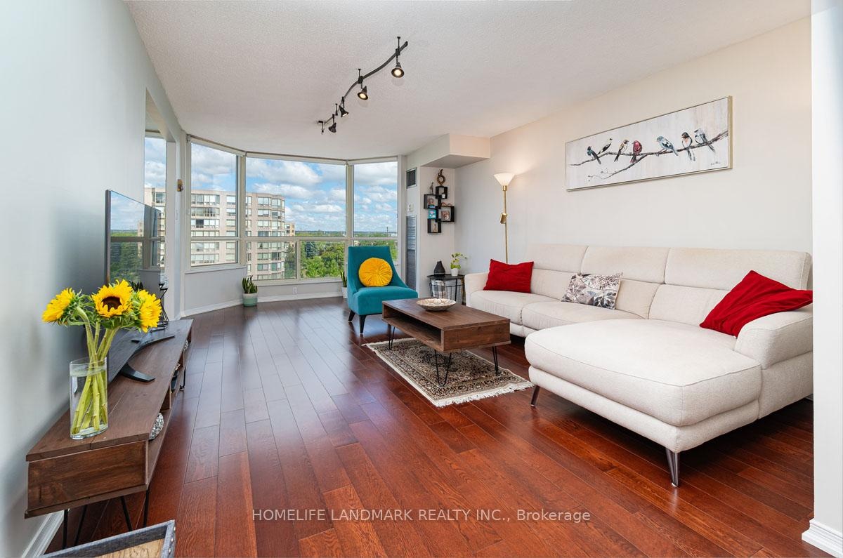 This expansive 2-bedroom, 2-bathroom corner suite facing North-East with a view of swimming pool and tennis court with added solarium spans approximately 1336 sq. ft. and is bathed in natural sunlight. Step through an upgraded, modern kitchen featuring porcelain tiles and quartz counters. The primary suite offers a walk-in closet and 4-pc ensuite bathroom. Having a solarium ideal for home-office or gym. For recreation and wellness, enjoy access to a fitness centre, outdoor pool, tennis and squash courts and saunas-all within your building. Situated just a stroll from Go transit and local buses, and close to shopping, schools, parks, and dining, this home perfectly balances tranquil living with urban convenience. Don't miss this fusion of cofort, luxury and lifestyle in one exceptional condo home.