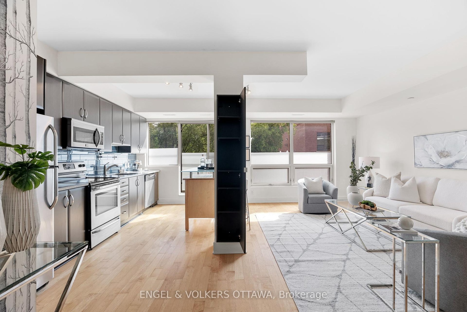 Welcome to 390 Booth Street #106 at Z6 Urban Lofts! Ideally located in Ottawa's West Centre Town, this boutique condo offers the perfect blend of modern design and vibrant city living. Steps from Little Italy, Chinatown, Hintonburg, and the Pimisi LRT station, you'll enjoy award-winning restaurants, cafes, shops, and transit right at your doorstep. This spacious one-bedroom unit features soaring 9-foot ceilings and an open-concept layout with hardwood floors throughout. The sleek kitchen is equipped with stainless steel appliances, ample counter space, and a breakfast bar that flows seamlessly into the living area perfect for entertaining or unwinding at home. The generous bedroom offers a comfortable retreat, a large closet, and a 3-piece bathroom. Additional highlights include in-unit laundry, central air, and two storage lockers. Don't miss this fantastic opportunity to experience the best of urban living in Ottawa!