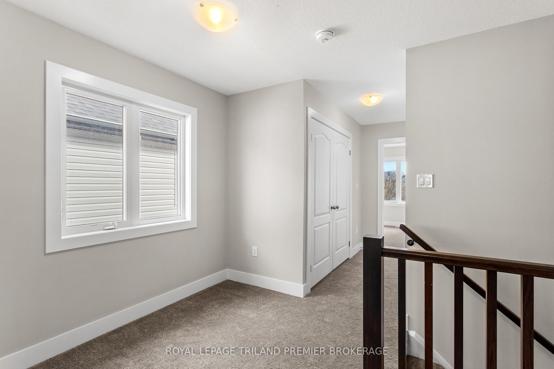 DescriptionTO BE BUILT! Sunlight Heritage Homes presents The Broderick. 1949 sq ft of expertly designed living space located in desirable Old Victoria on the Thames. Enter into the generous open concept main level featuring kitchen with quartz countertops, 36" upper cabinets with valance and crown moulding, microwave shelf and island with breakfast bar; great room with 9' ceilings and large bright window, dinette with sliding door access to the backyard and convenient main floor 2-piece bathroom. The upper level includes 4 spacious bedrooms including primary suite with walk in closet and 4-piece ensuite with double sinks; laundry closet and main bathroom. Other standard inclusions: Hardwood flooring throughout main level (except bathroom), 5' patio slider, 9' ceilings on main level, bathroom rough-in in basement, drywalled garage and more! Other lots and plans to choose from. Photos are from previous model and show upgraded items.Amenities- Sump Pump