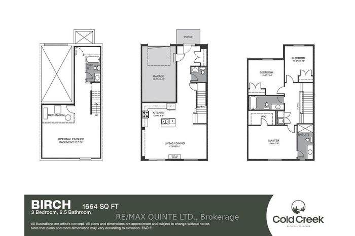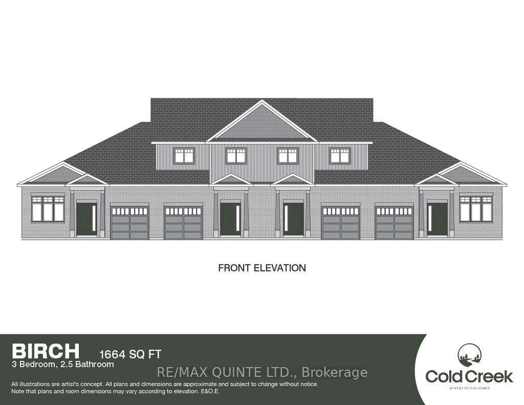 The Birch is a spacious 3-bedroom, 2.5-bathroom home offering 1,664 sq ft of stylish, functional living space in the new COLD CREEK community by Port Picton Homes. Designed for modern living, the main floor features an open-concept layout with a bright dining area, a generous great room, and a beautifully designed kitchen - perfect for entertaining or family life. Large windows fill the home with natural light, while the attached garage and covered porch add everyday convenience. Upstairs, the primary suite offers a private ensuite and ample closet space, creating a true retreat. Two additional bedrooms, a full bath, and a laundry area complete this level, ensuring comfort and practicality for every lifestyle. An unfinished WALK-OUT basement with a 3-piece rough-in provides the opportunity to expand your living space ideal for a recreation room, home gym, or guest suite. Located just steps from Pictons vibrant Main Street, Cold Creek blends the ease of small-town living with modern amenities. The Birch combines thoughtful design, quality craftsmanship, and timeless appeal all within the heart of Prince Edward County.
