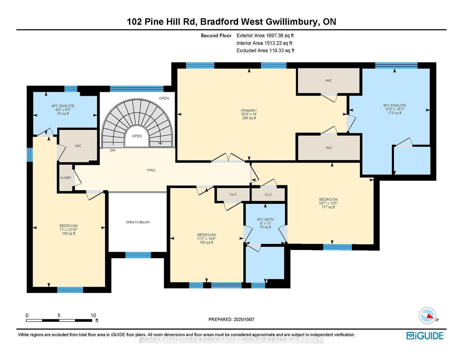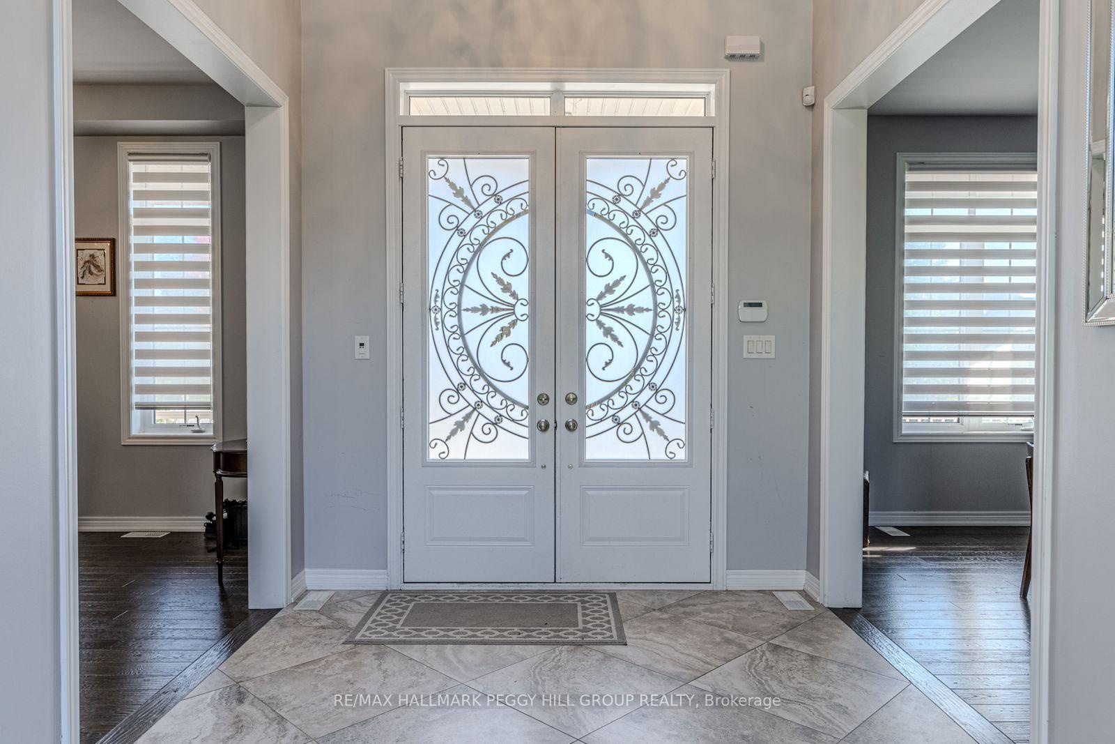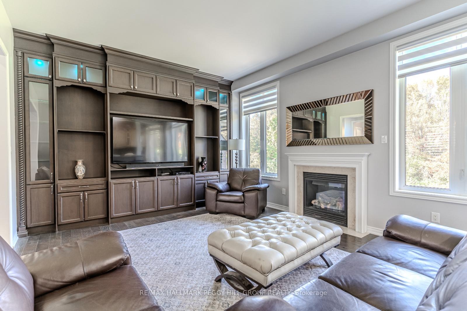 ESTATE HOME SHOWCASING OVER 5,100 SQ FT, IN-LAW POTENTIAL, LUXURIOUS FINISHES, TRIPLE GARAGE, & 2.33-ACRE LOT! Set on a prestigious 2.33-acre estate in The Shires Estates, Bradfords most distinguished country estate community inspired by the timeless charm of the English countryside, this stately all-brick home offers over 5,100 finished square feet of refined living. The impressive exterior showcases a circular driveway, a covered front porch with double doors, soffit lighting, and a triple garage with inside entry. A 20-foot cathedral ceiling, floor-to-ceiling windows, and a grand spiral staircase create a striking first impression, while 10-ft ceilings on the main level and 9-ft ceilings on the upper and lower levels enhance the homes scale. The custom kitchen features granite countertops, a large island, custom cabinetry topped with crown moulding, tile backsplash, stainless steel appliances, and a walkout to the deck. The main level also offers hardwood floors, a formal dining room, a living room with a gas fireplace and built-in cabinetry, two dens, and a laundry room. The generous primary bedroom showcases dual walk-in closets and a 5-piece ensuite with a soaker tub, glass-walled shower, dual vanity, and water closet, while three additional bedrooms feature private or shared ensuite access. The walkout basement provides excellent in-law capability with a kitchen boasting quartz countertops, an island, stainless steel appliances, a large rec room, two bedrooms, two full bathrooms, laundry, and a cantina. Backing onto a ravine with towering trees offering privacy, complete with a covered composite deck with glass railings, a lower-level patio, and an irrigation system. Additional highlights include a drilled well, water softener, filters, UV, reverse osmosis, HRV, high-efficiency furnace, central air conditioning, central vac, and a 200-amp electrical panel. A #HomeToStay of distinction where craftsmanship, scale, and setting exceed expectations.