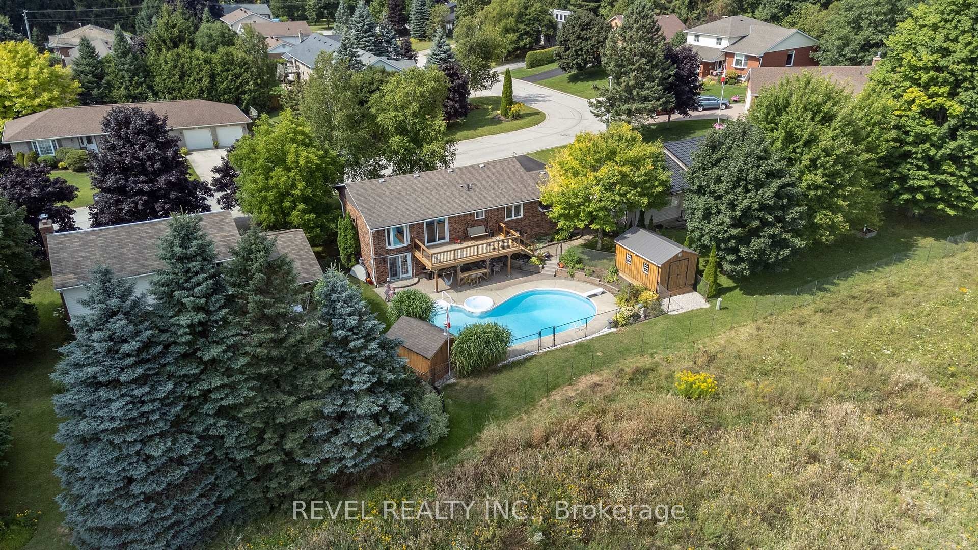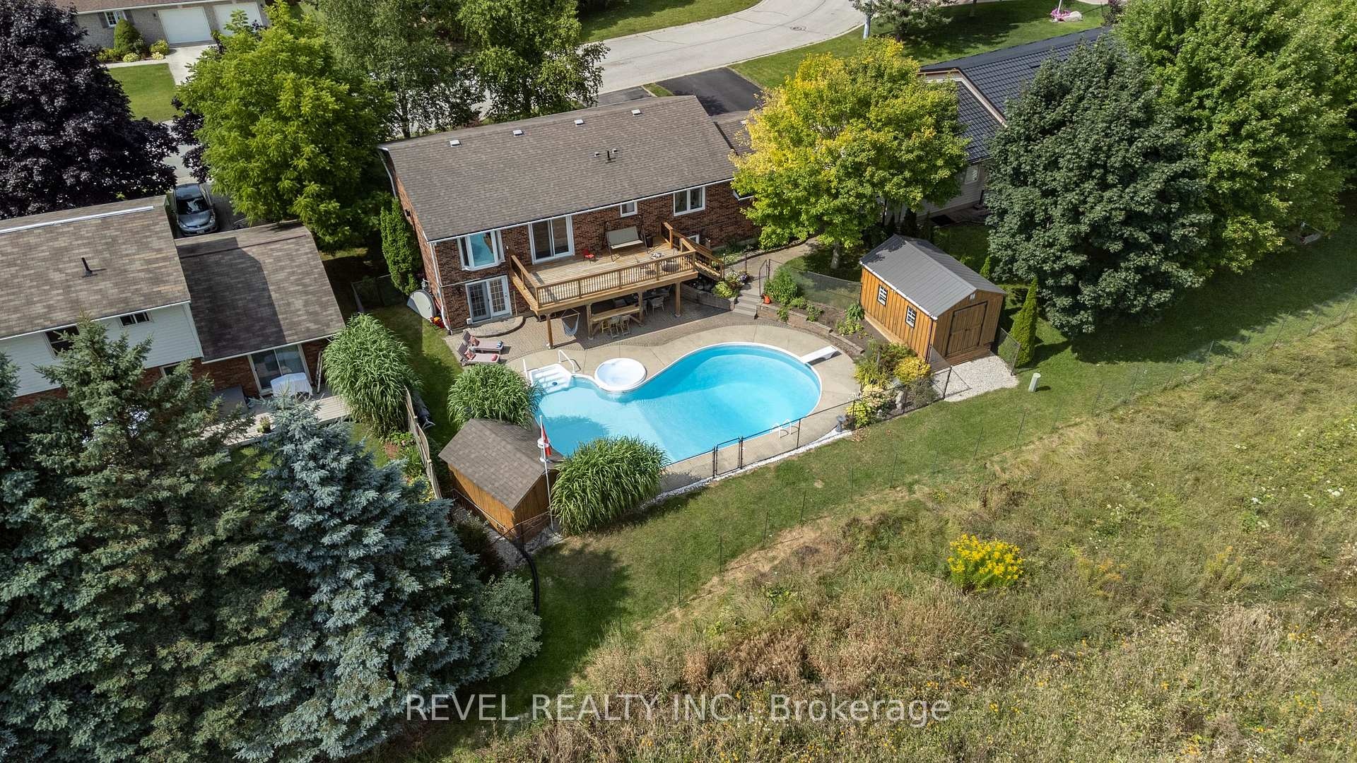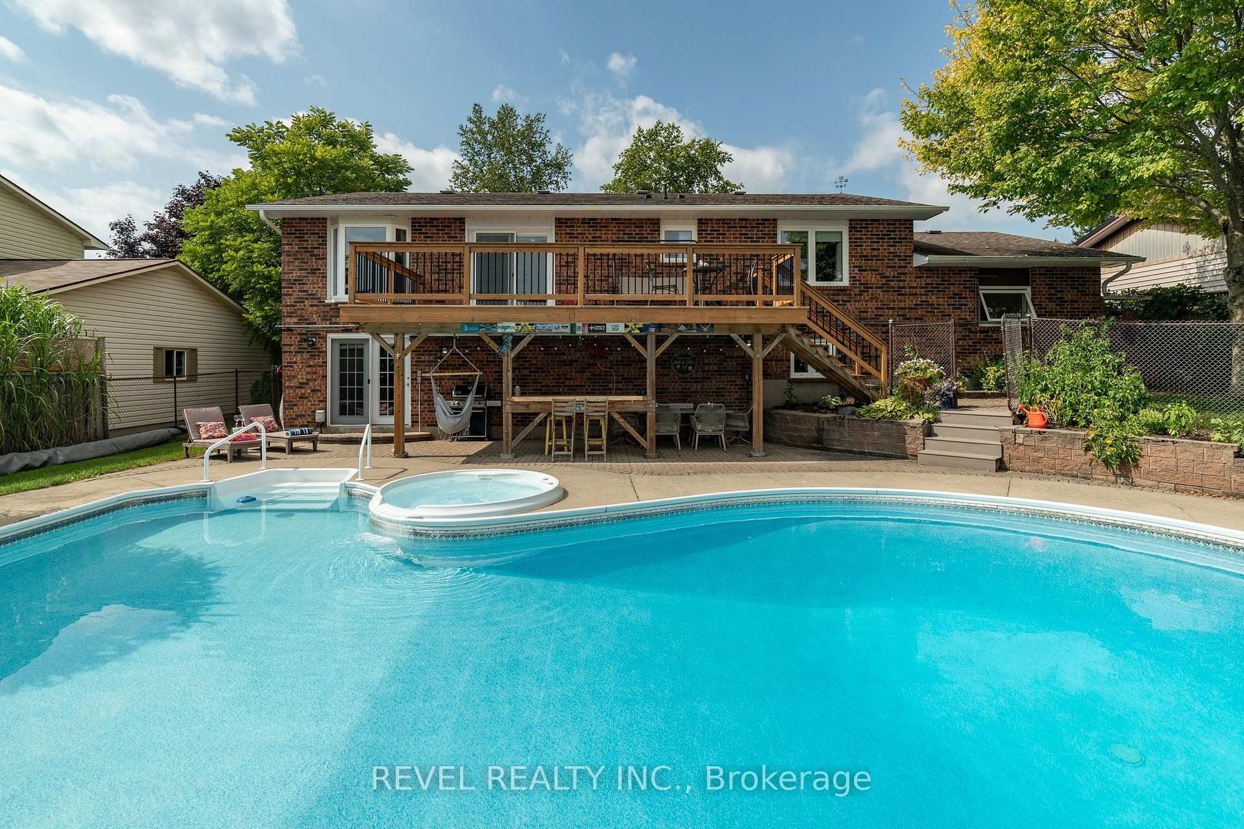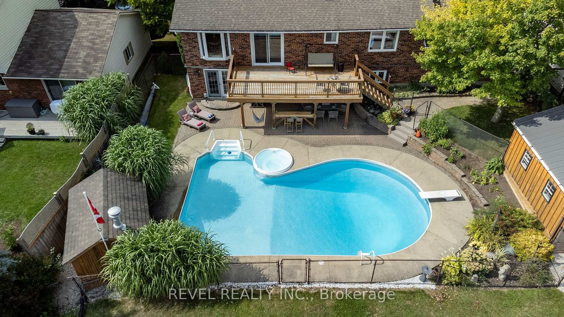 DescriptionThis beautifully maintained all brick bungalow is set in one of the areas most sought-after neighbourhoods. The main floor showcases gleaming hardwood floors, a bright and spacious living room with a stone fireplace, and a dining room featuring a large bow window with picturesque countryside views. The kitchen offers a breakfast bar and French doors that open to a 24' x 12' deck, ideal for outdoor dining and entertaining.Three bedrooms complete the main level, including a primary suite with a private en-suite bath. The fully finished lower level provides a fourth bedroom, a combined laundry and 2-piece bath, a versatile hobby or flex room, and a family room with walkout access to the backyard. Outside, enjoy summer living in your private, fully fenced yard with a 38' x 23' heated inground pool and 6-person waterfall spa. A perfect home for comfortable family living and effortless entertaining.Amenities- Other