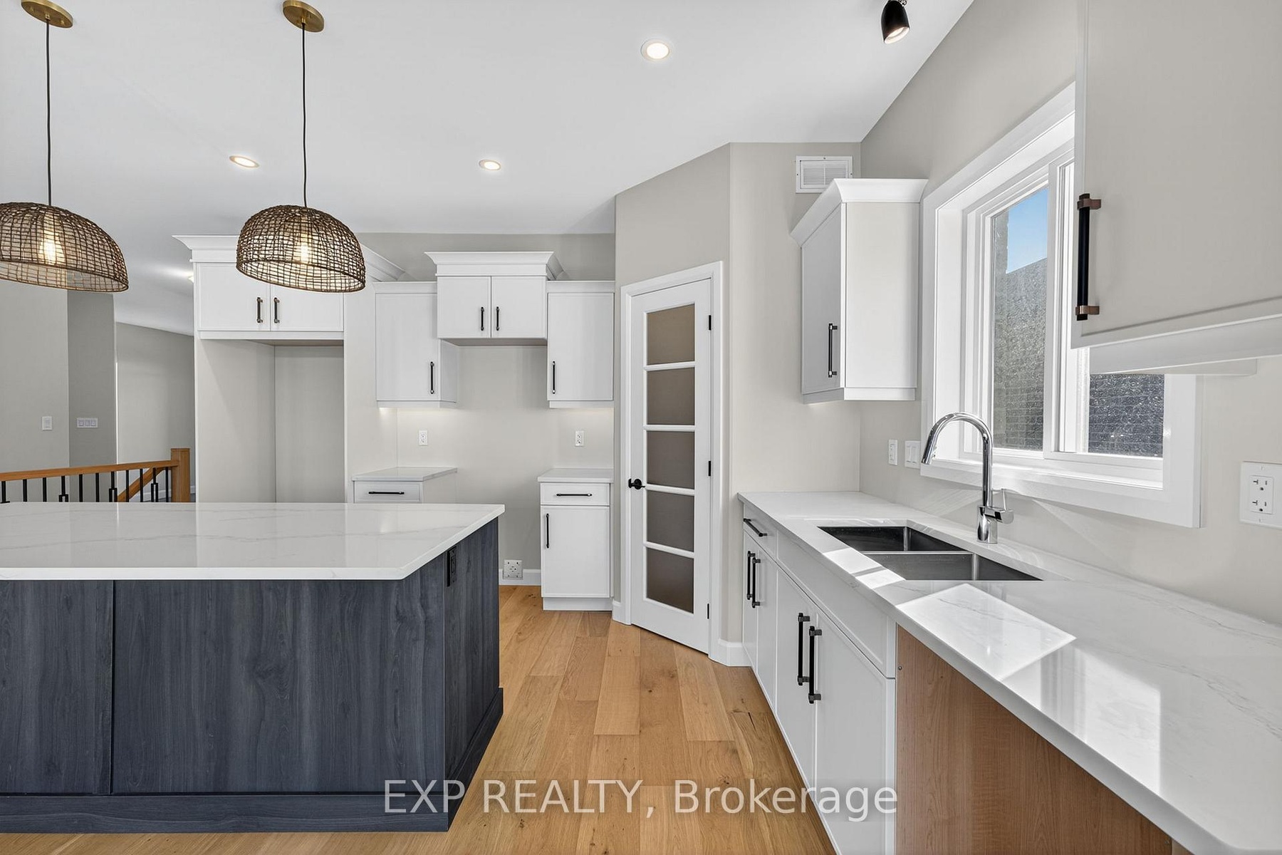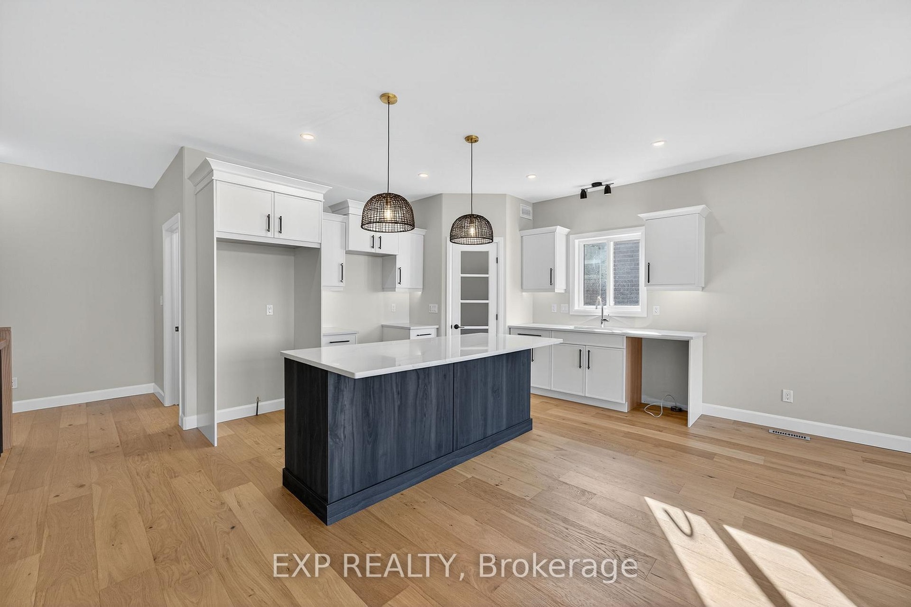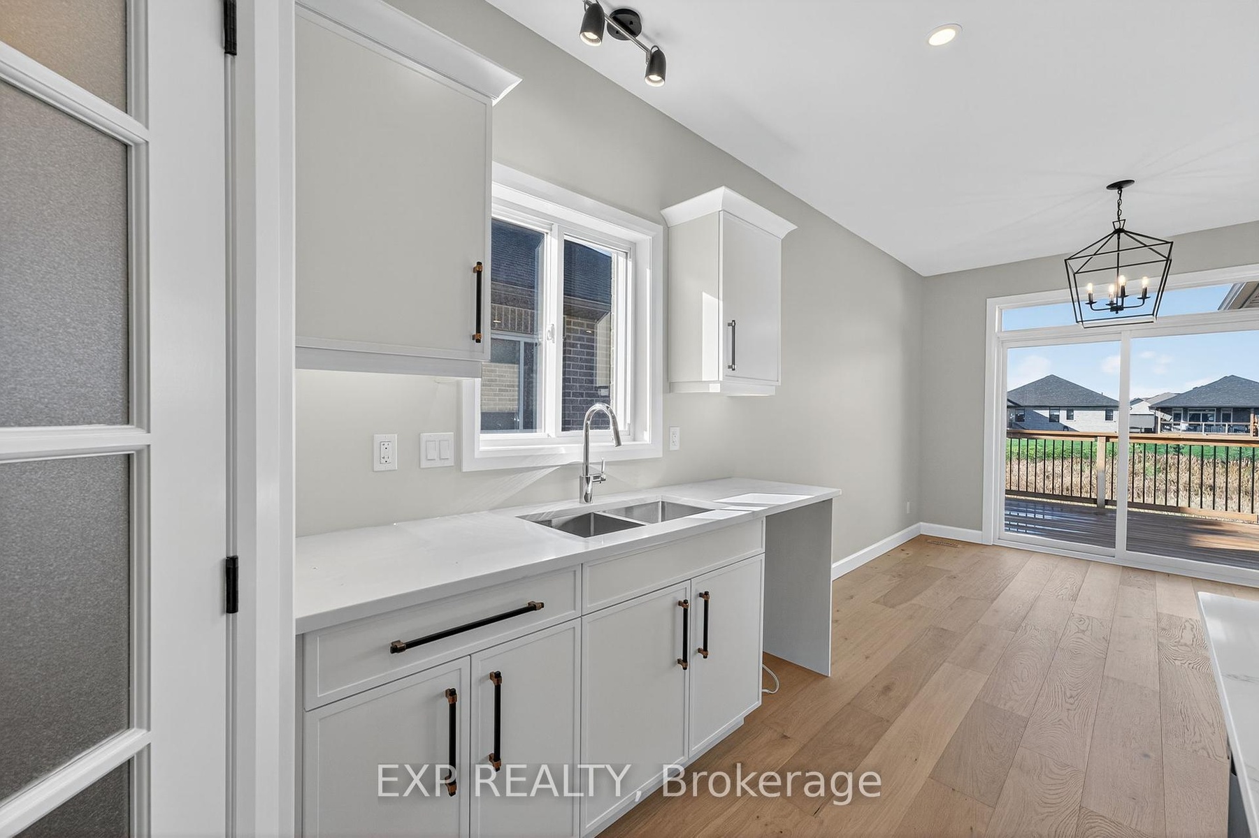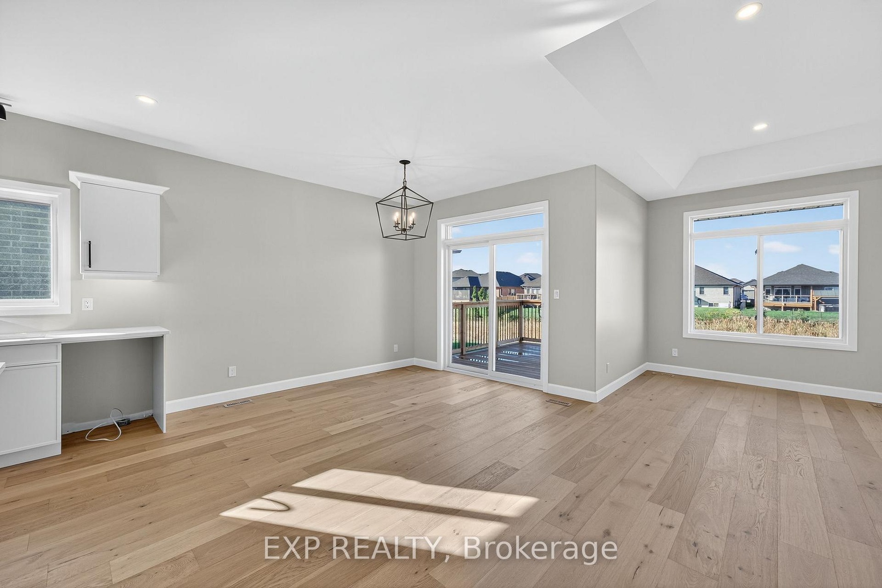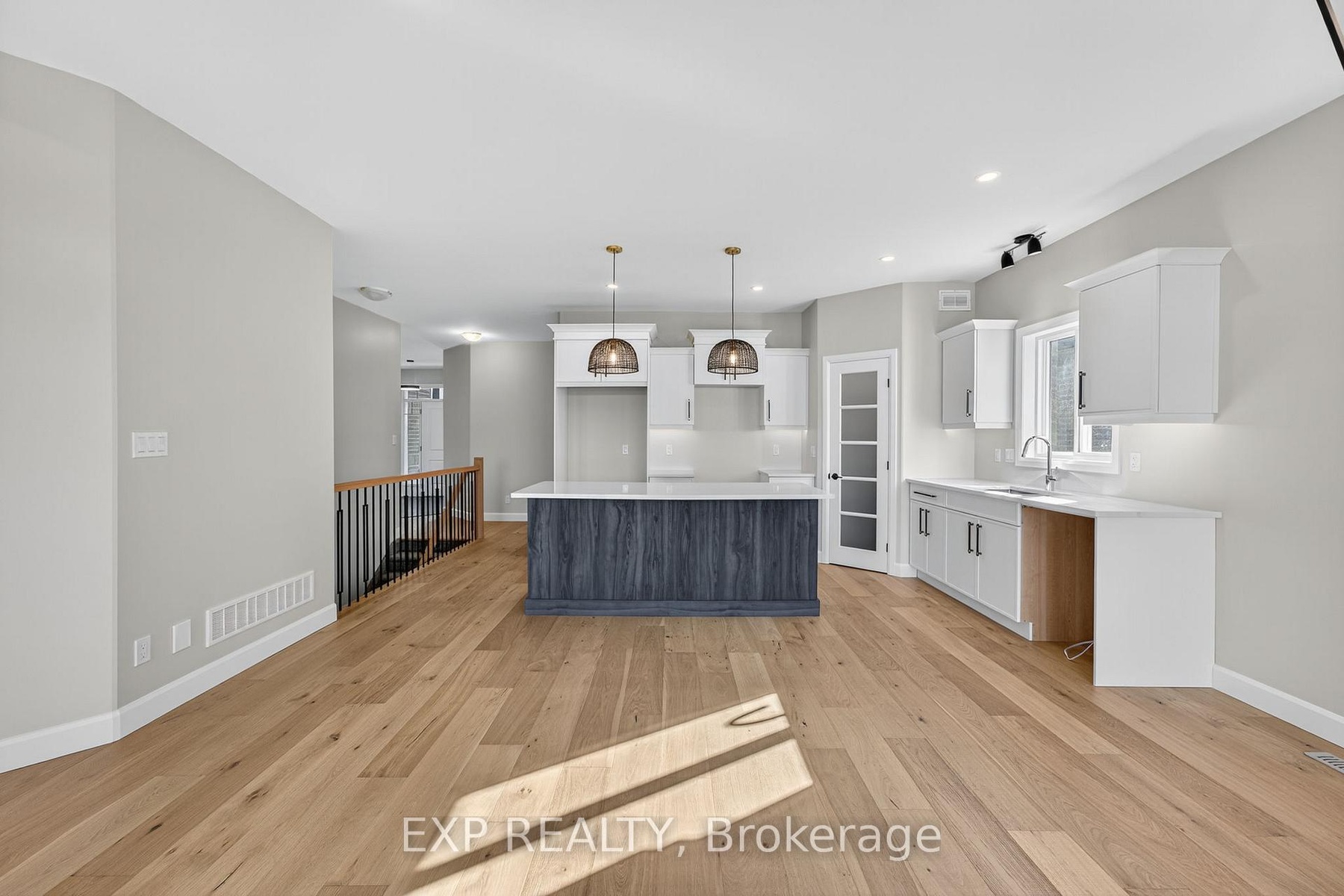 DescriptionMove-in ready and FULLY FINISHED! This 5 bedroom, 3 bathroom Quinte model all brick bungalow by Duvanco Homes sits on a PREMIUM lot on cul-de-sac backing onto green space, offering privacy and peaceful views. Designed with modern living in mind, the open-concept layout features a custom quality kitchen with oversized island, coffered ceiling in the living room and distressed wide plank hardwood throughout the main floor. Modern light fixtures and finishes throughout. The primary suite includes a walk-in closet and luxurious ensuite with double vanity and glass-surround porcelain tile shower. Main floor laundry with access to the attached garage. Lower level finished with 2 bedrooms, 4pc bathroom and recreation room. Exterior landscaping complete with paved driveway, fully sodded yard, garden package and stone walkway. Completed pressure treated deck with black ballisters. This Quinte model home is Holmes Approved. Settlers Ridge Subdivision offers trails, park, asphalt paved sidewalks, green space and is just minutes to all amenities.Amenities- Auto Garage Door Remote