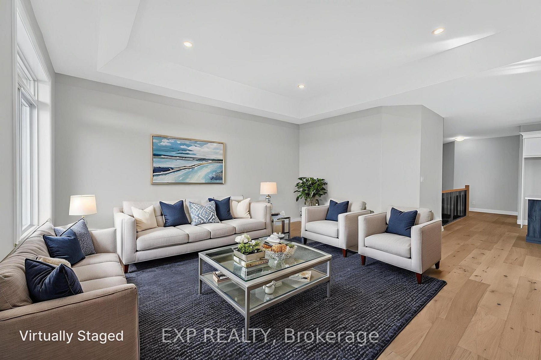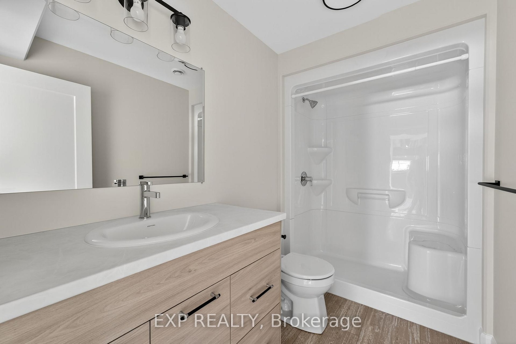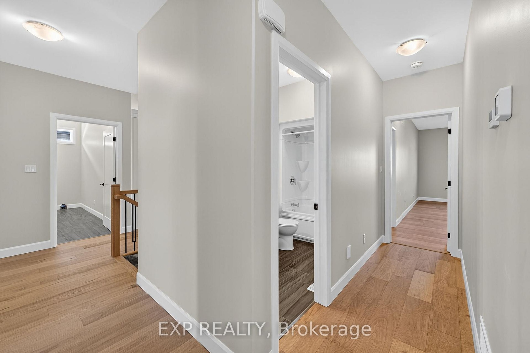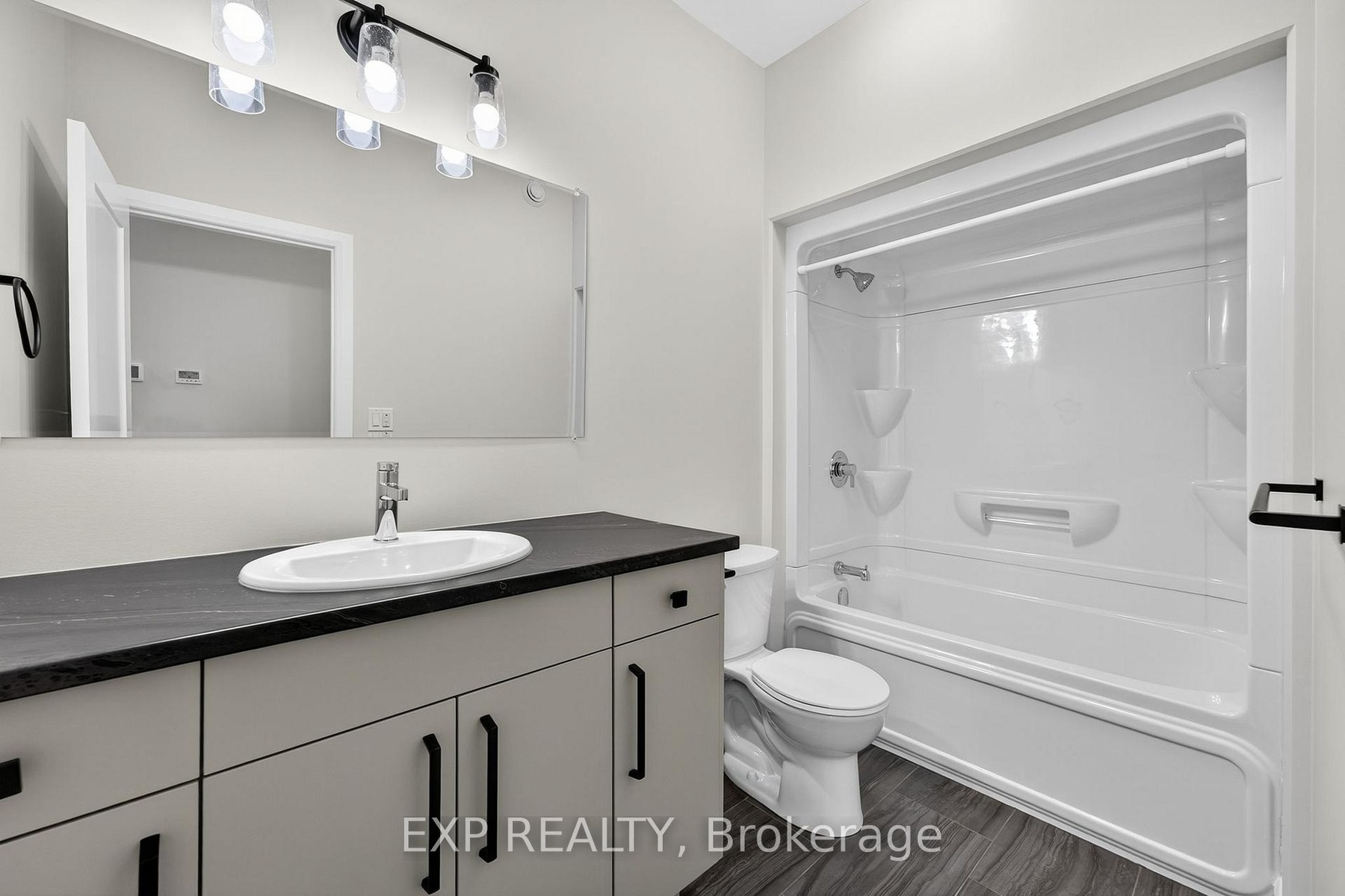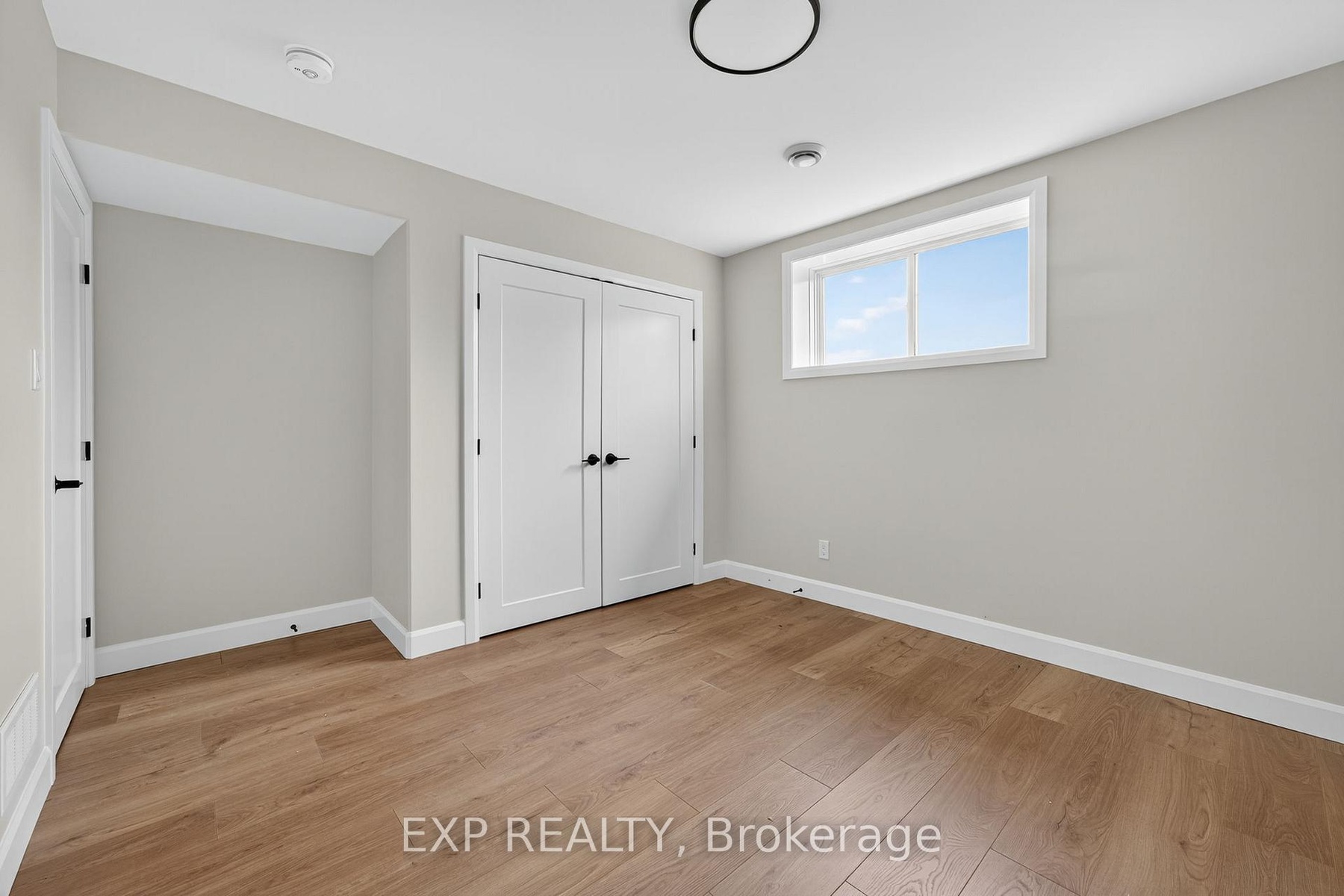 DescriptionMove-in ready and FULLY FINISHED! This 5 bedroom, 3 bathroom Quinte model all brick bungalow by Duvanco Homes sits on a PREMIUM lot on cul-de-sac backing onto green space, offering privacy and peaceful views. Designed with modern living in mind, the open-concept layout features a custom quality kitchen with oversized island, coffered ceiling in the living room and distressed wide plank hardwood throughout the main floor. Modern light fixtures and finishes throughout. The primary suite includes a walk-in closet and luxurious ensuite with double vanity and glass-surround porcelain tile shower. Main floor laundry with access to the attached garage. Lower level finished with 2 bedrooms, 4pc bathroom and recreation room. Exterior landscaping complete with paved driveway, fully sodded yard, garden package and stone walkway. Completed pressure treated deck with black ballisters. This Quinte model home is Holmes Approved. Settlers Ridge Subdivision offers trails, park, asphalt paved sidewalks, green space and is just minutes to all amenities.Amenities- Auto Garage Door Remote