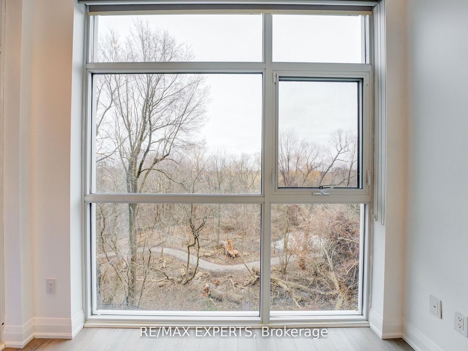Welcome to Tao Condominiums Where Style Meets Serenity! This bright and beautifully designed 1 Bedroom + Den suite offers an airy open-concept layout flooded with natural light. Enjoy peaceful ravine and trail views through oversized windows that bring the outdoors in. The spacious kitchen features a large island with stainless steel appliances perfect for entertaining or everyday living. Thoughtfully appointed with ensuite laundry and custom organized closets. Conveniently located just steps to Hwy 407, transit, shopping, restaurants, and all the amenities you need. Includes 1 parking spot and locker. A must see!