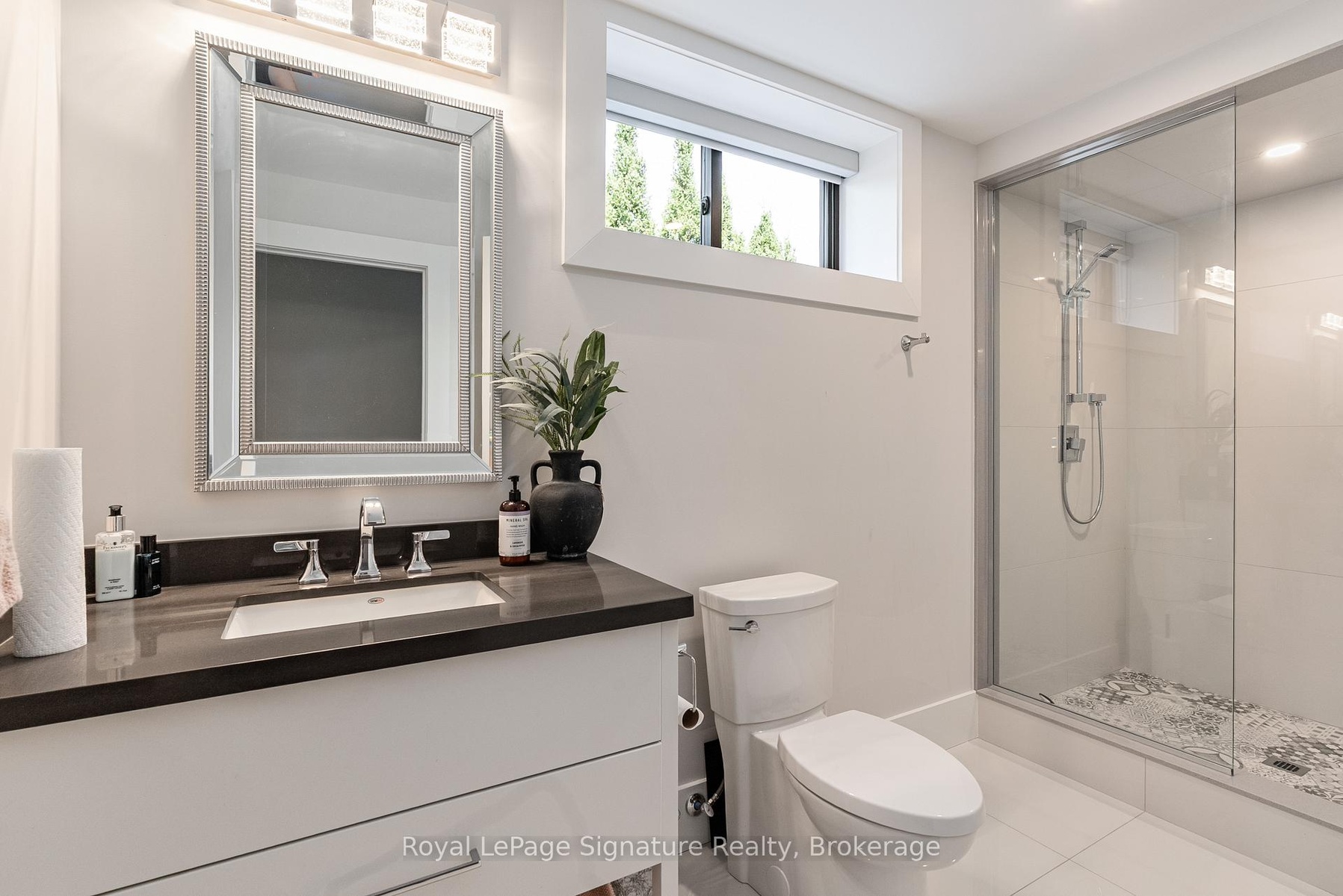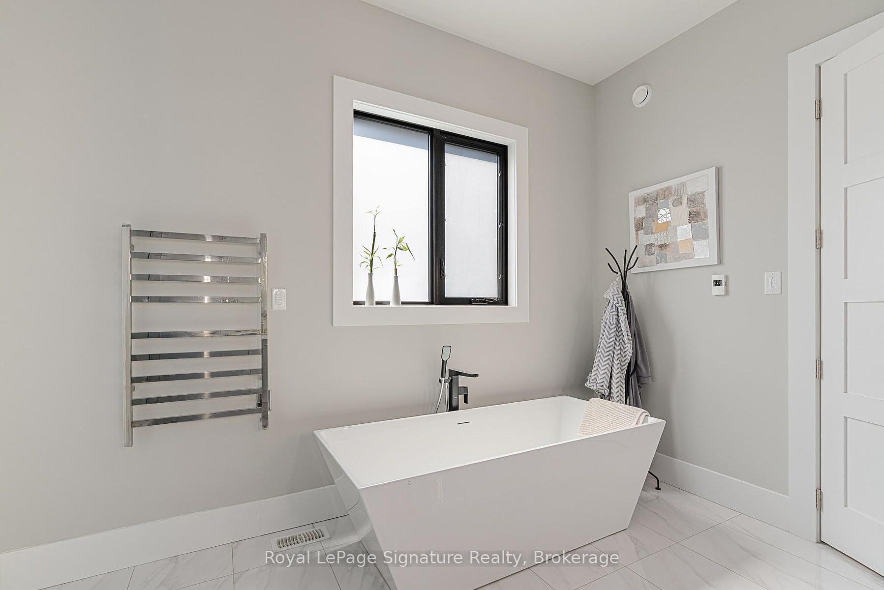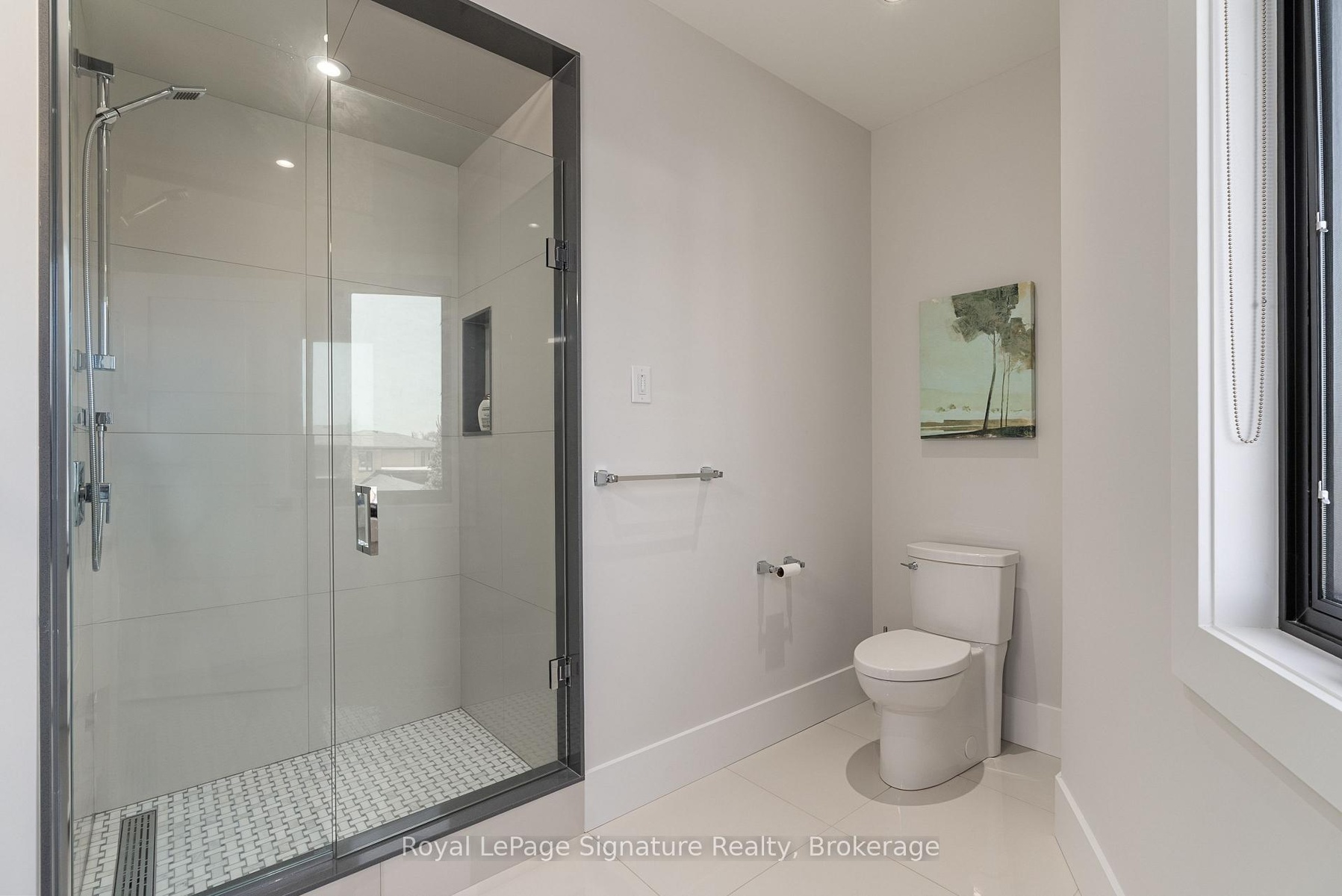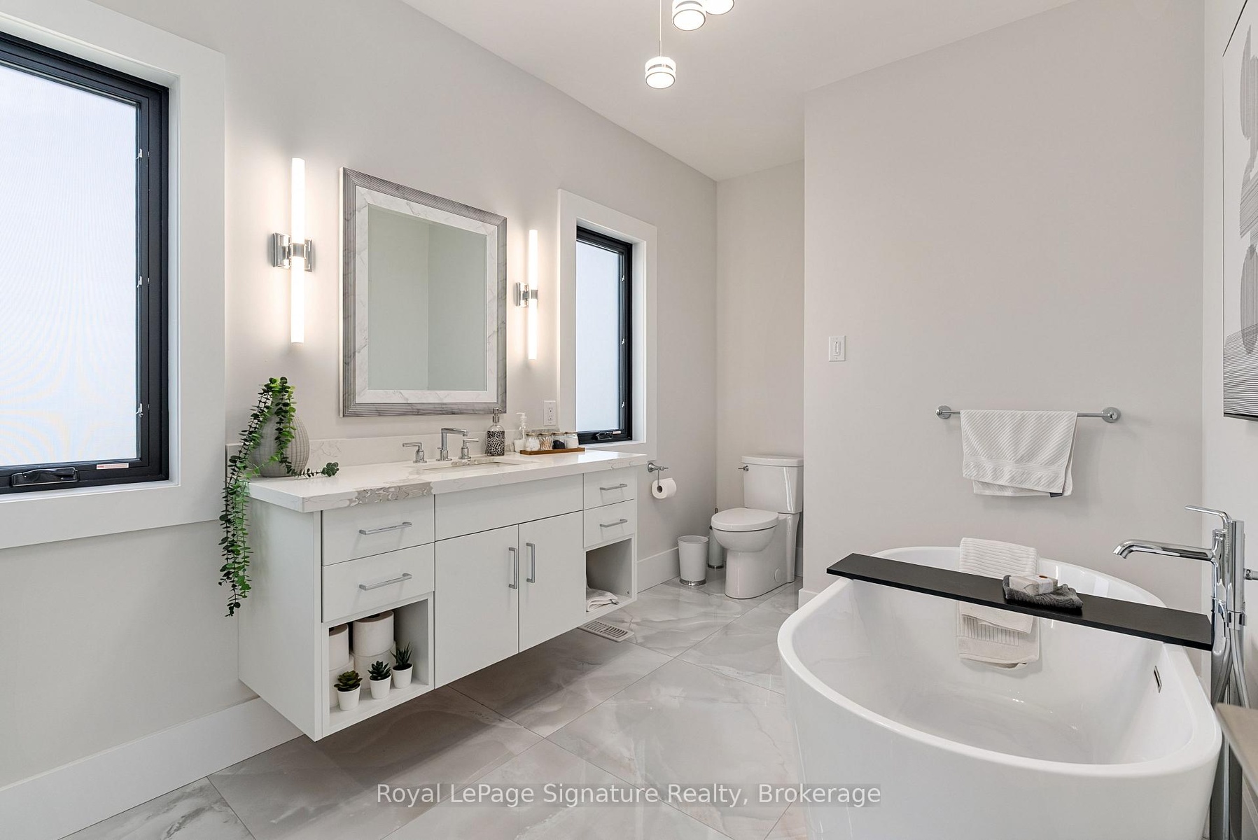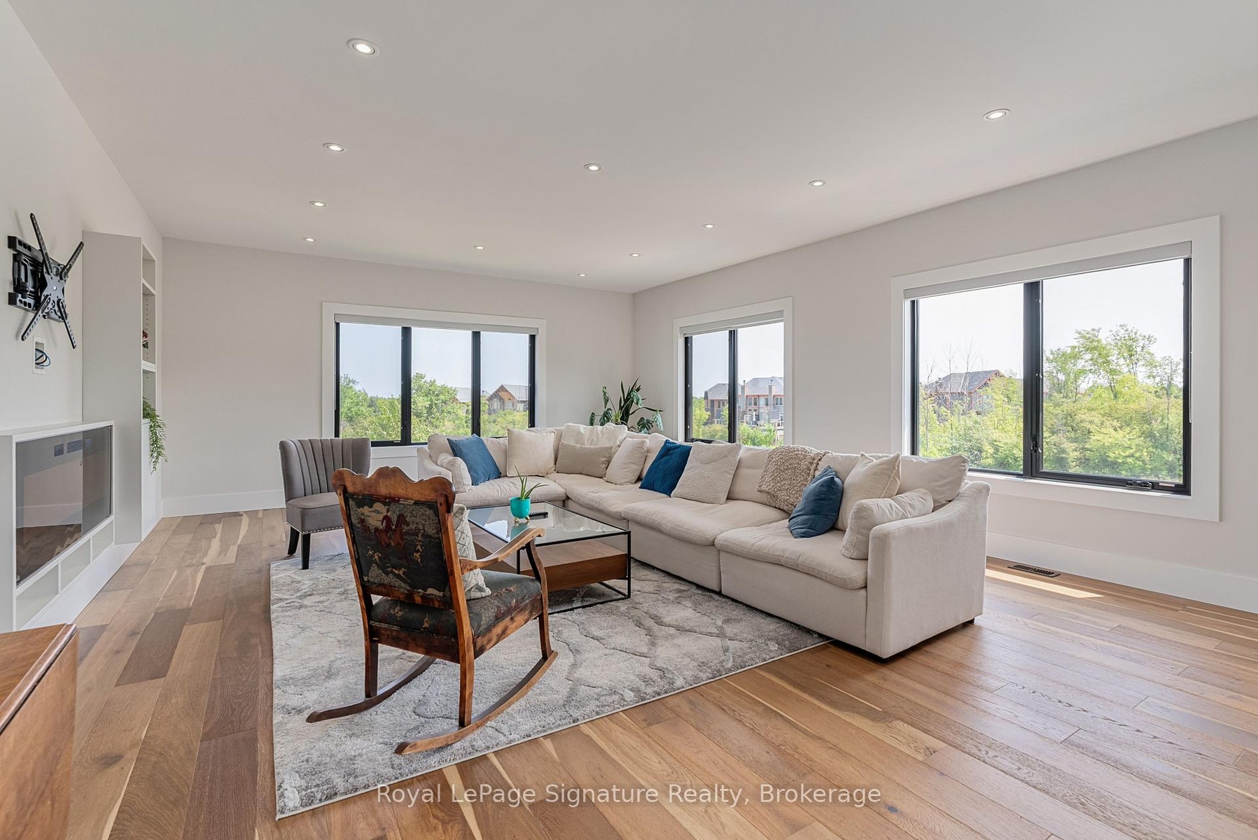 This custom-built home in the Nipissing Ridge community offers luxury mountain living at the base of Alpine Ski Club and Craigleith. Steps from skiing, hiking, and the shores of Georgian Bay, and minutes to the boutiques, restaurants, and golf courses of The Blue Mountains, it blends year-round recreation with upscale comfort. The 20-foot ceiling great room features expansive windows framing mountain views and a 48-inch linear gas fireplace. The chef's kitchen is equipped with a quartz waterfall island, prep area, beverage station, and premium appliances including a 48-inch Monogram gas range and fridge, Miele dishwasher, wine cooler, and beverage fridge. The main floor primary suite provides a private retreat with a floating vanity, double sinks, glass-enclosed double shower, freestanding tub, heated floors, and a custom dressing room. Engineered hardwood floors, a pre-wired sound system, and a dedicated office enhance everyday living. Upstairs offers a family/games room and three bedrooms, each with an ensuite. The finished lower level includes a family room, games area, two bedrooms, additional bathrooms, in-floor heating, and durable vinyl flooring. Exterior features include stone and wood finishes, an 8-foot glass-paneled entry door, and 9x9 garage doors with a lift system. Move-in ready, this is a rare opportunity to enjoy an active, four-season lifestyle in one of the areas most sought-after communities.