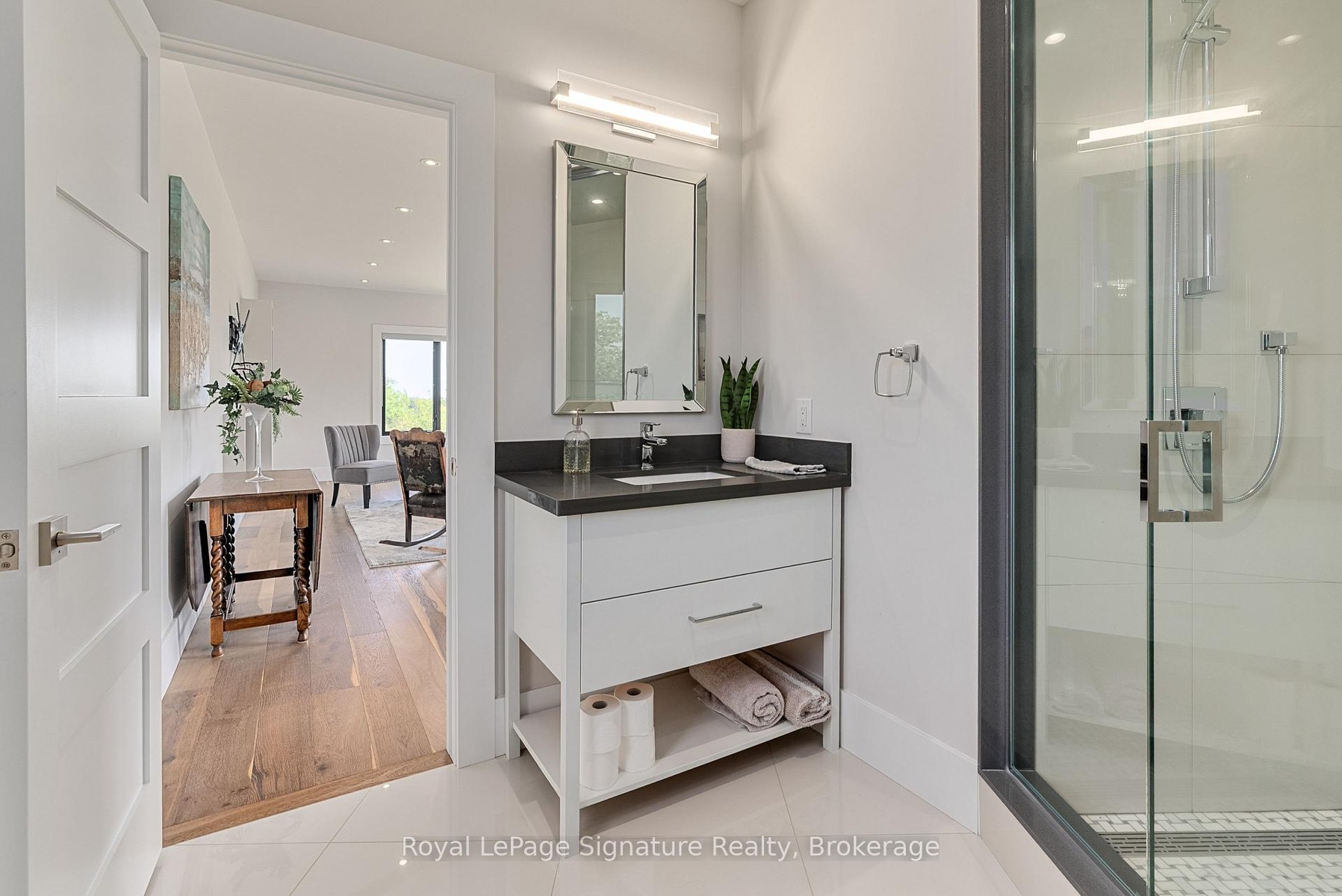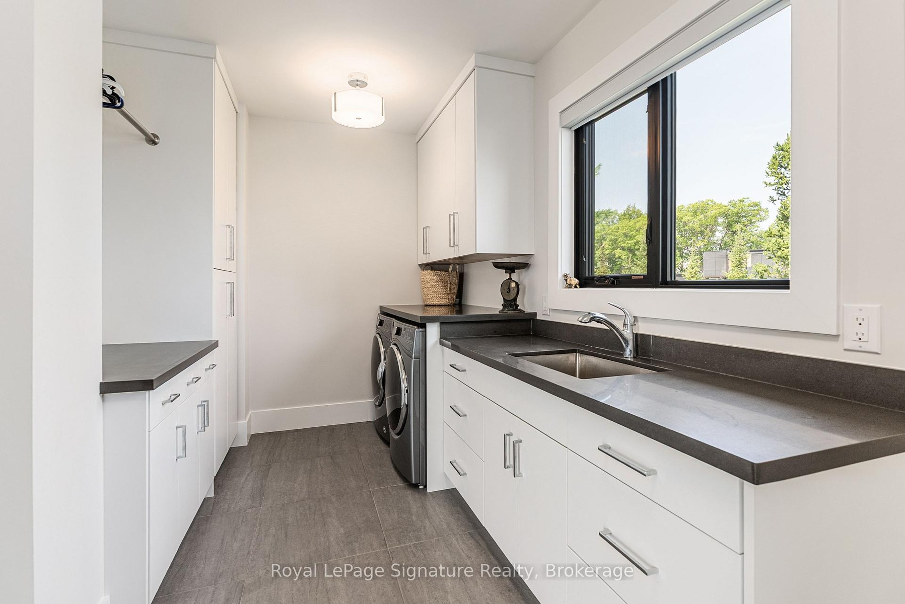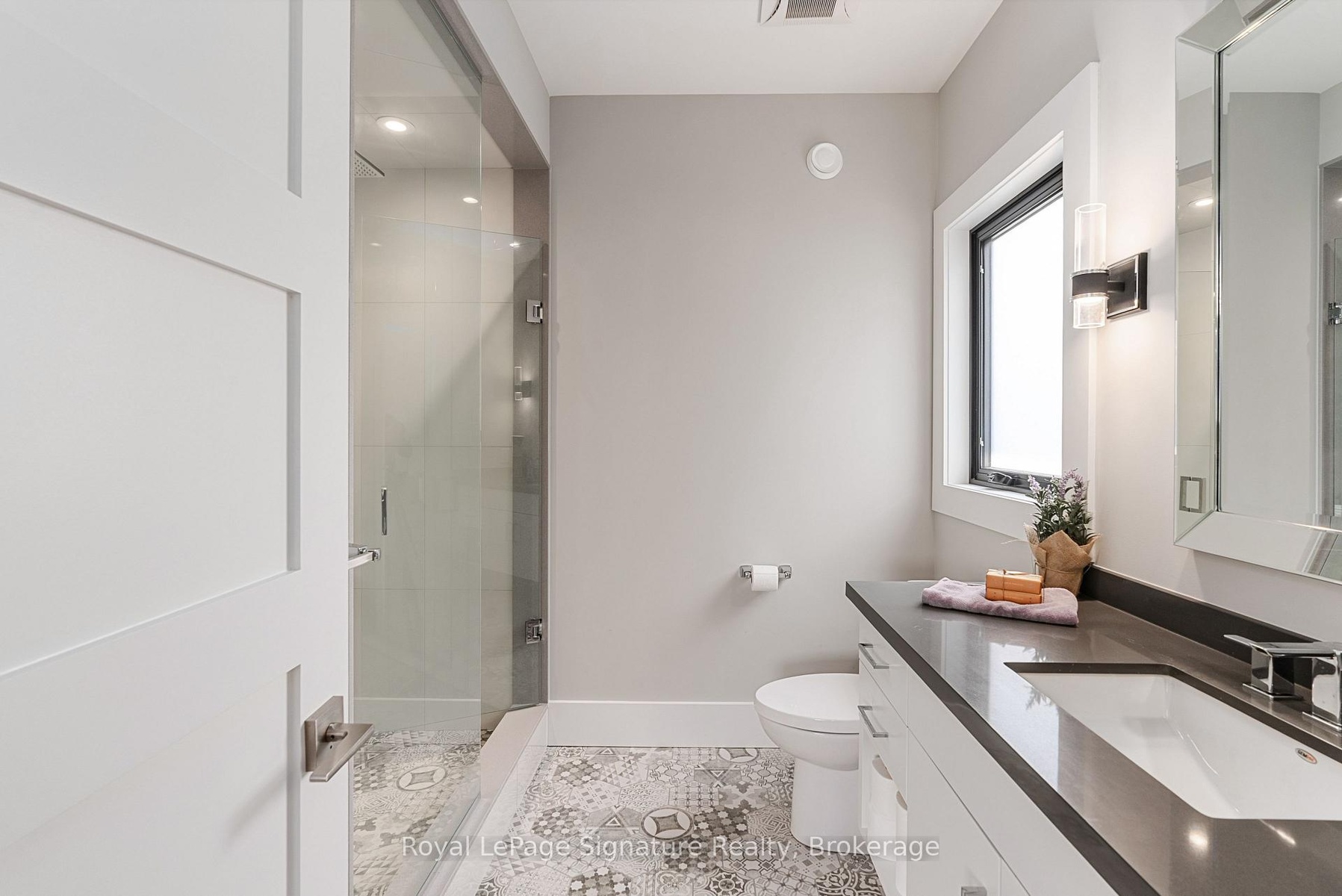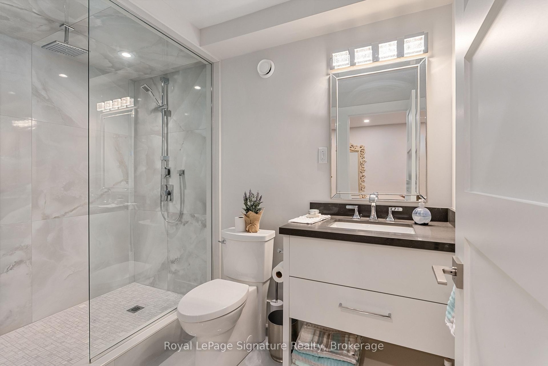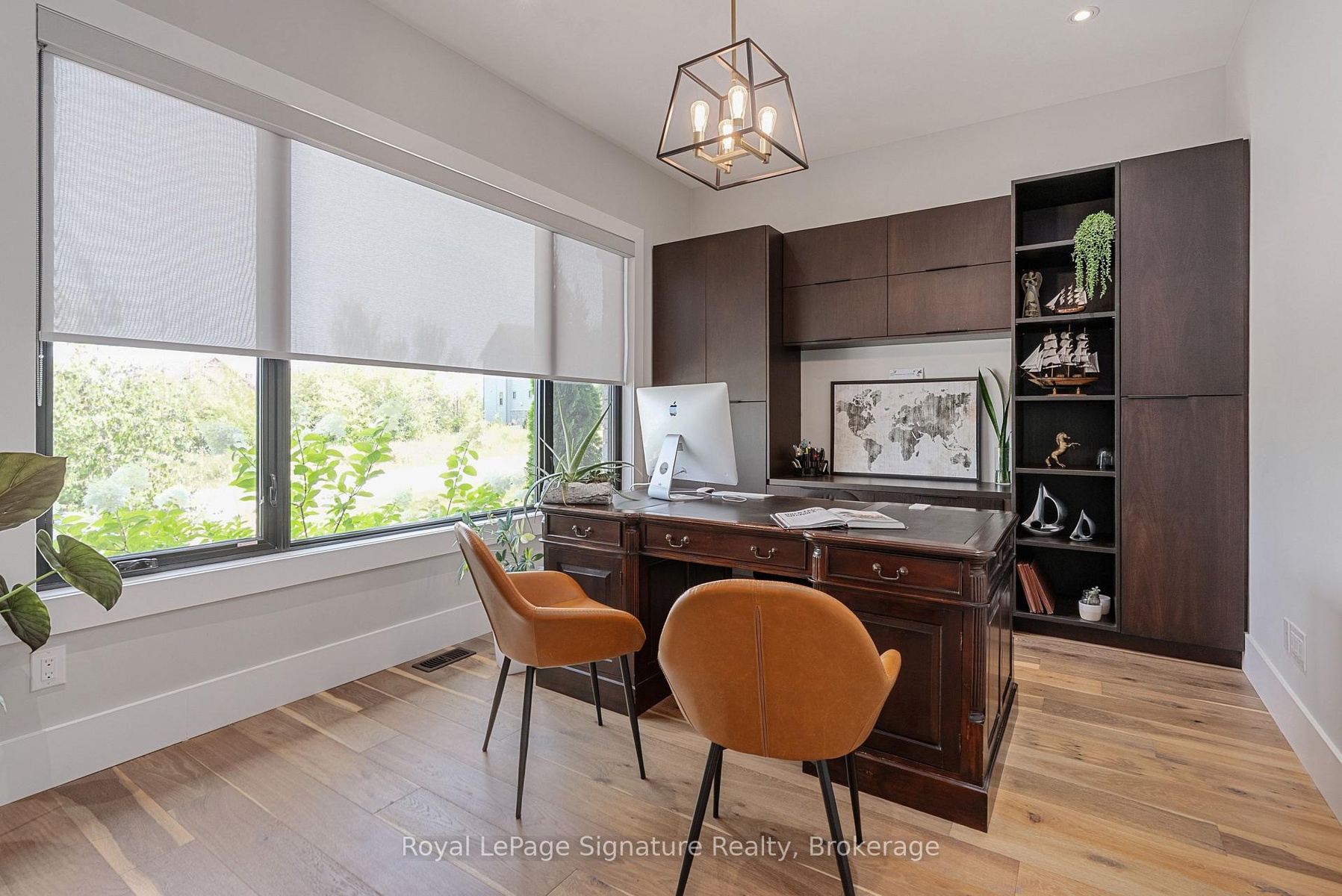 This custom-built home in the Nipissing Ridge community offers luxury mountain living at the base of Alpine Ski Club and Craigleith. Steps from skiing, hiking, and the shores of Georgian Bay, and minutes to the boutiques, restaurants, and golf courses of The Blue Mountains, it blends year-round recreation with upscale comfort. The 20-foot ceiling great room features expansive windows framing mountain views and a 48-inch linear gas fireplace. The chef's kitchen is equipped with a quartz waterfall island, prep area, beverage station, and premium appliances including a 48-inch Monogram gas range and fridge, Miele dishwasher, wine cooler, and beverage fridge. The main floor primary suite provides a private retreat with a floating vanity, double sinks, glass-enclosed double shower, freestanding tub, heated floors, and a custom dressing room. Engineered hardwood floors, a pre-wired sound system, and a dedicated office enhance everyday living. Upstairs offers a family/games room and three bedrooms, each with an ensuite. The finished lower level includes a family room, games area, two bedrooms, additional bathrooms, in-floor heating, and durable vinyl flooring. Exterior features include stone and wood finishes, an 8-foot glass-paneled entry door, and 9x9 garage doors with a lift system. Move-in ready, this is a rare opportunity to enjoy an active, four-season lifestyle in one of the areas most sought-after communities.