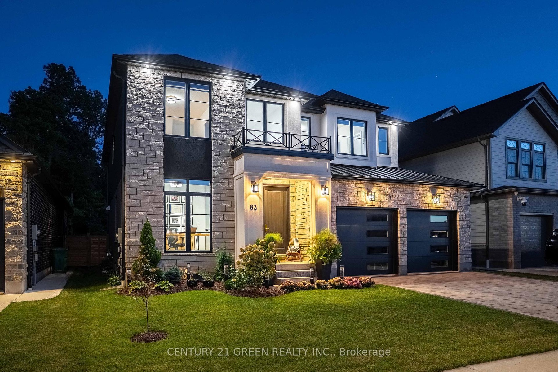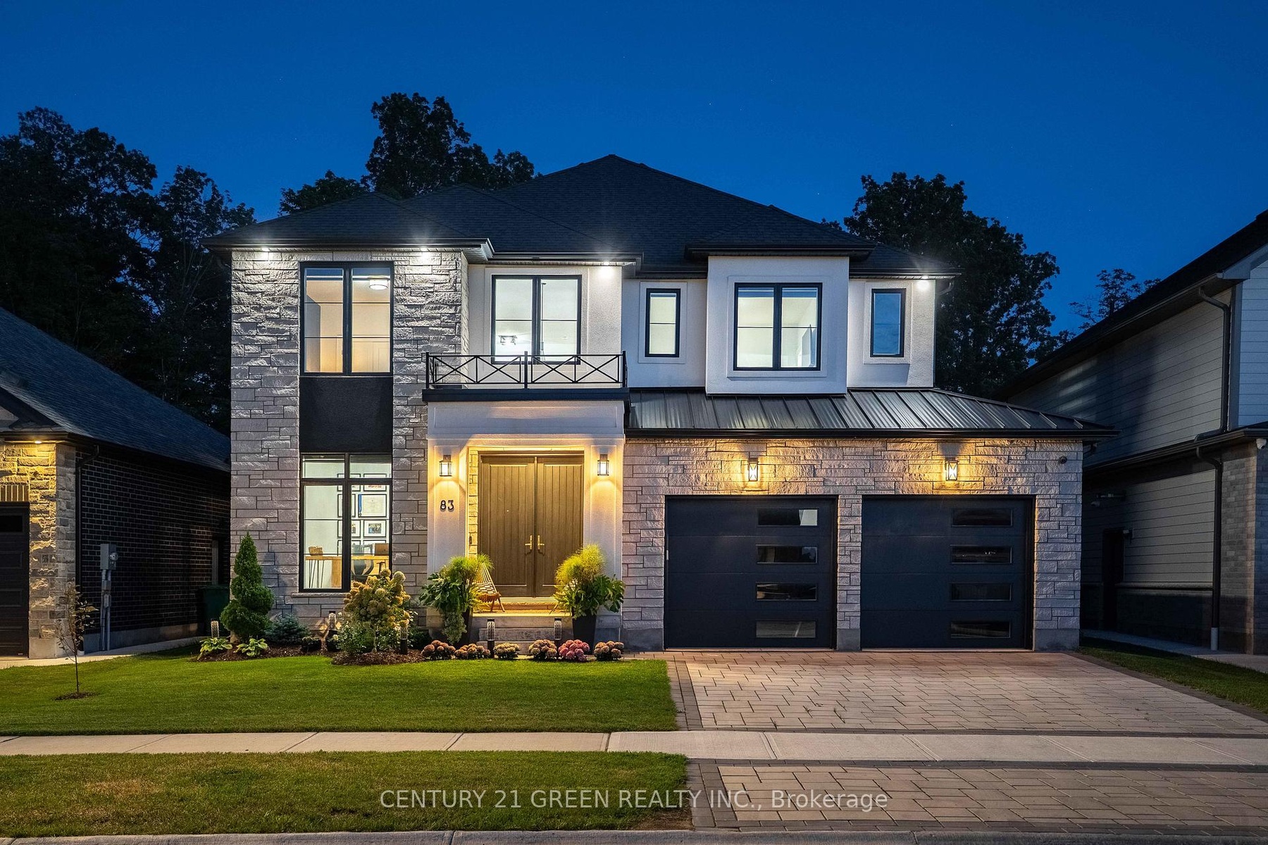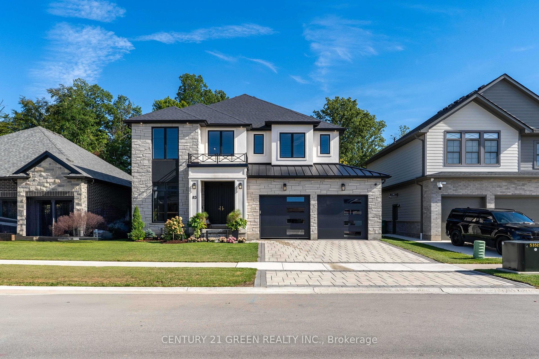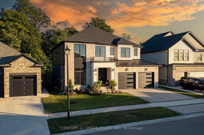 DescriptionStunning House! This beautiful luxury two-story detached home boasts 4 bedrooms and 3.5 bathrooms, spanning approximately 3000 square feet above grade. Situated on a Wooded lot measuring 55 feet by 150 feet,Metal front roof, this house offers a spacious and inviting living environment.The main floor features a high ceiling of 9 feet providing ample headroom. It includes an office space, a living room, a dining area, and a family area. Additionally, theres a powder room and Laundry area on main floor.The house is equipped with approximately 300k worth of upgrades. The kitchen boasts a luxurious layout with a large range hood,Built in Big Fridge,60-inch gas stove and a walk-in pantry. The kitchen also includes a beautiful island and a backsplash. Oak stairs with iron spindles connect the basement to the second floor, while hardwood flooring is used throughout the main and second floors.The second floor features four bedrooms. Beautifully design Custom washrooms with a custom vanity, and the primary bedroom has a walk-in closet. The master suite includes a five-piece en-suite bathroom with a standalone tub and Shower.The unfinished basement also has a 9-foot ceiling. Security cameras, Double blinds, Built in Speakers. There are many other upgrades listed throughout the house.This house is conveniently located near Highway 401. Its a rare opportunity to own such a stunning and luxurious home.Virtual Tour: https://show.tours/83optimistdrivesouthwold?b=0Amenities- Carpet Free