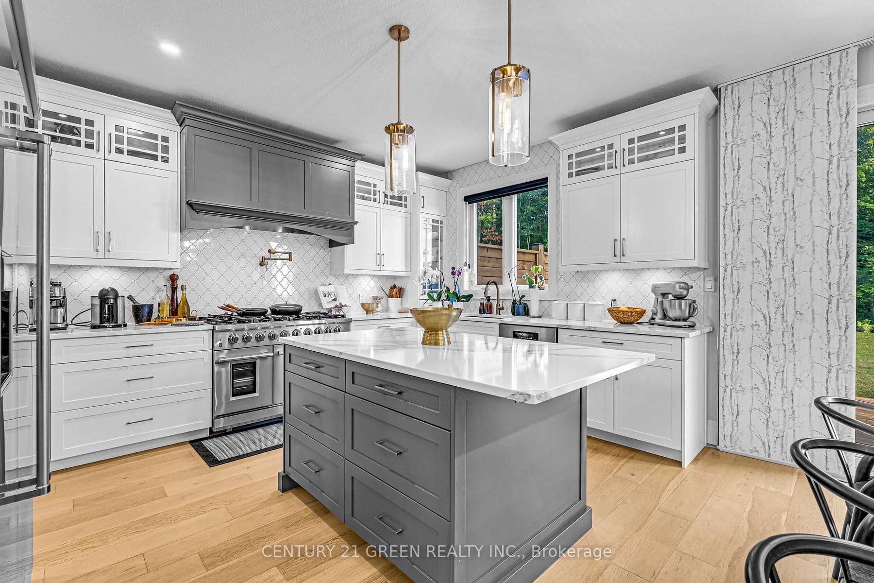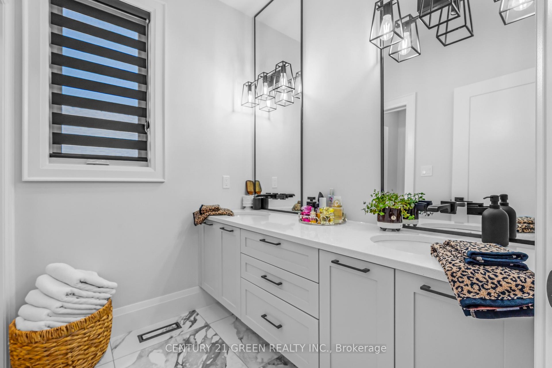 Stunning House! This beautiful luxury two-story detached home boasts 4 bedrooms and 3.5 bathrooms, spanning approximately 3000 square feet above grade. Situated on a Wooded lot measuring 55 feet by 150 feet,Metal front roof, this house offers a spacious and inviting living environment.The main floor features a high ceiling of 9 feet providing ample headroom. It includes an office space, a living room, a dining area, and a family area. Additionally, theres a powder room and Laundry area on main floor.The house is equipped with approximately 300k worth of upgrades. The kitchen boasts a luxurious layout with a large range hood,Built in Big Fridge,60-inch gas stove and a walk-in pantry. The kitchen also includes a beautiful island and a backsplash. Oak stairs with iron spindles connect the basement to the second floor, while hardwood flooring is used throughout the main and second floors.The second floor features four bedrooms. Beautifully design Custom washrooms with a custom vanity, and the primary bedroom has a walk-in closet. The master suite includes a five-piece en-suite bathroom with a standalone tub and Shower.The unfinished basement also has a 9-foot ceiling. Security cameras, Double blinds, Built in Speakers. There are many other upgrades listed throughout the house.This house is conveniently located near Highway 401. Its a rare opportunity to own such a stunning and luxurious home.