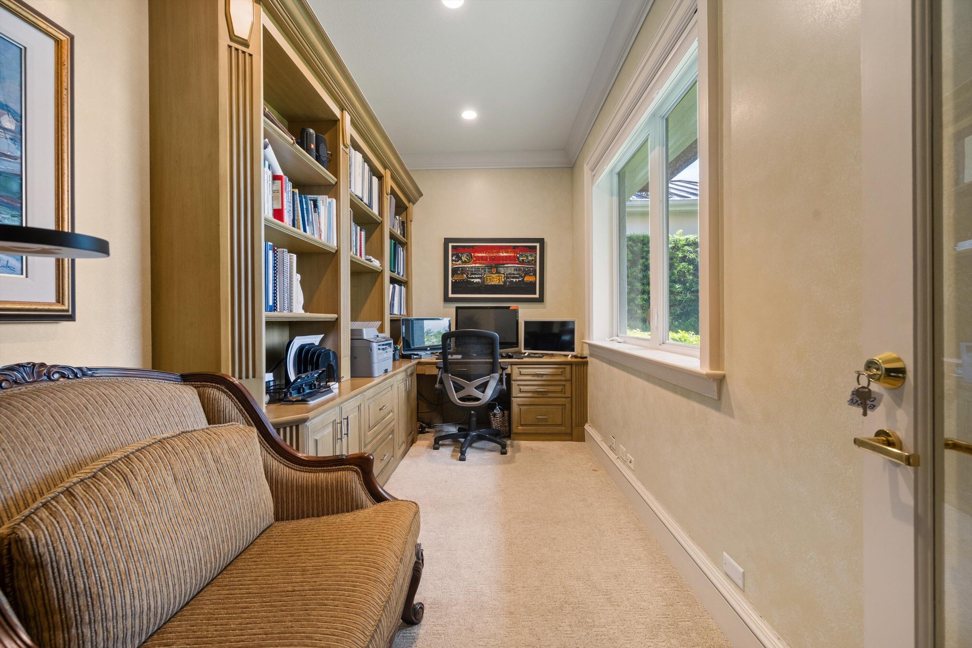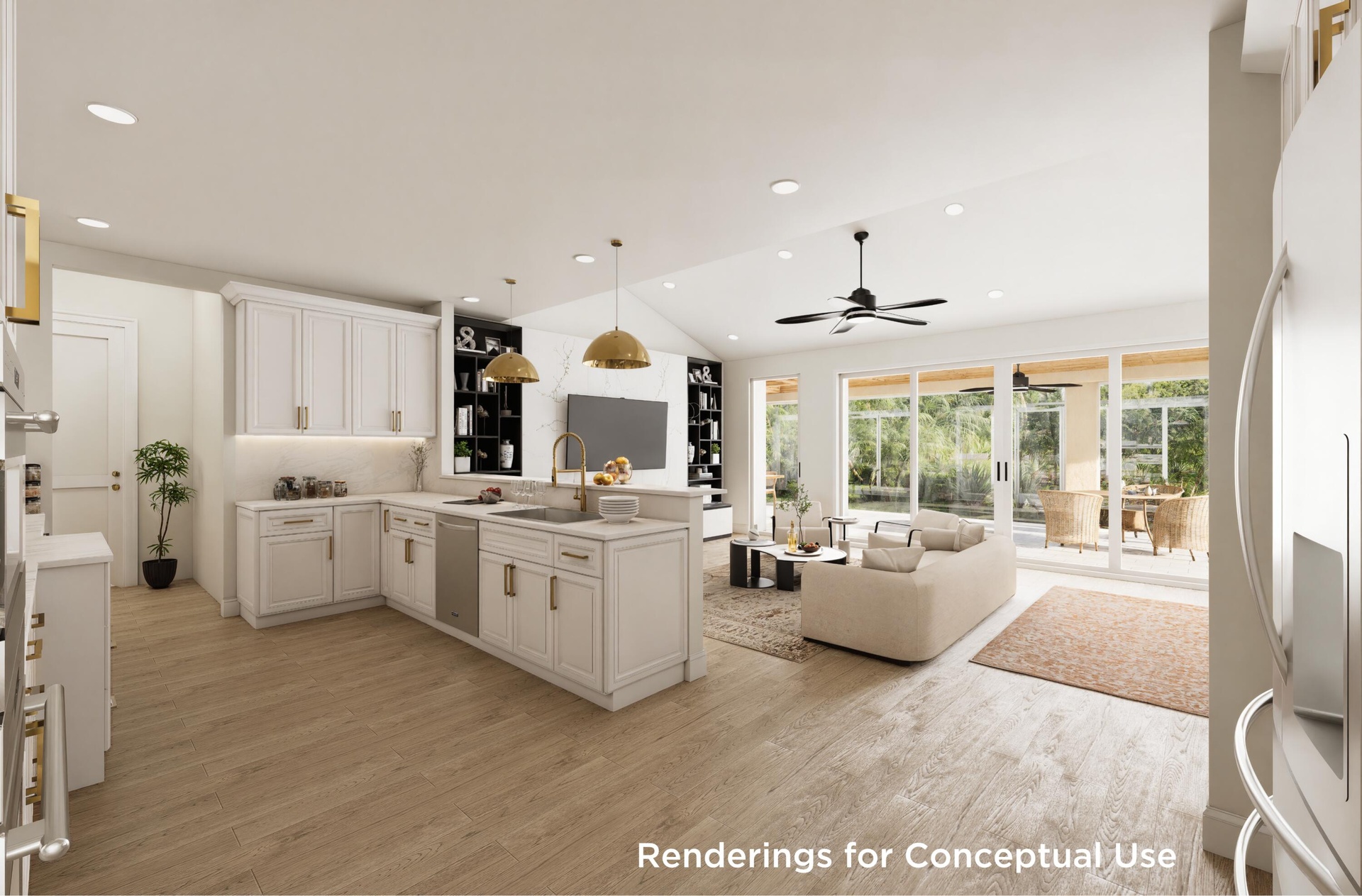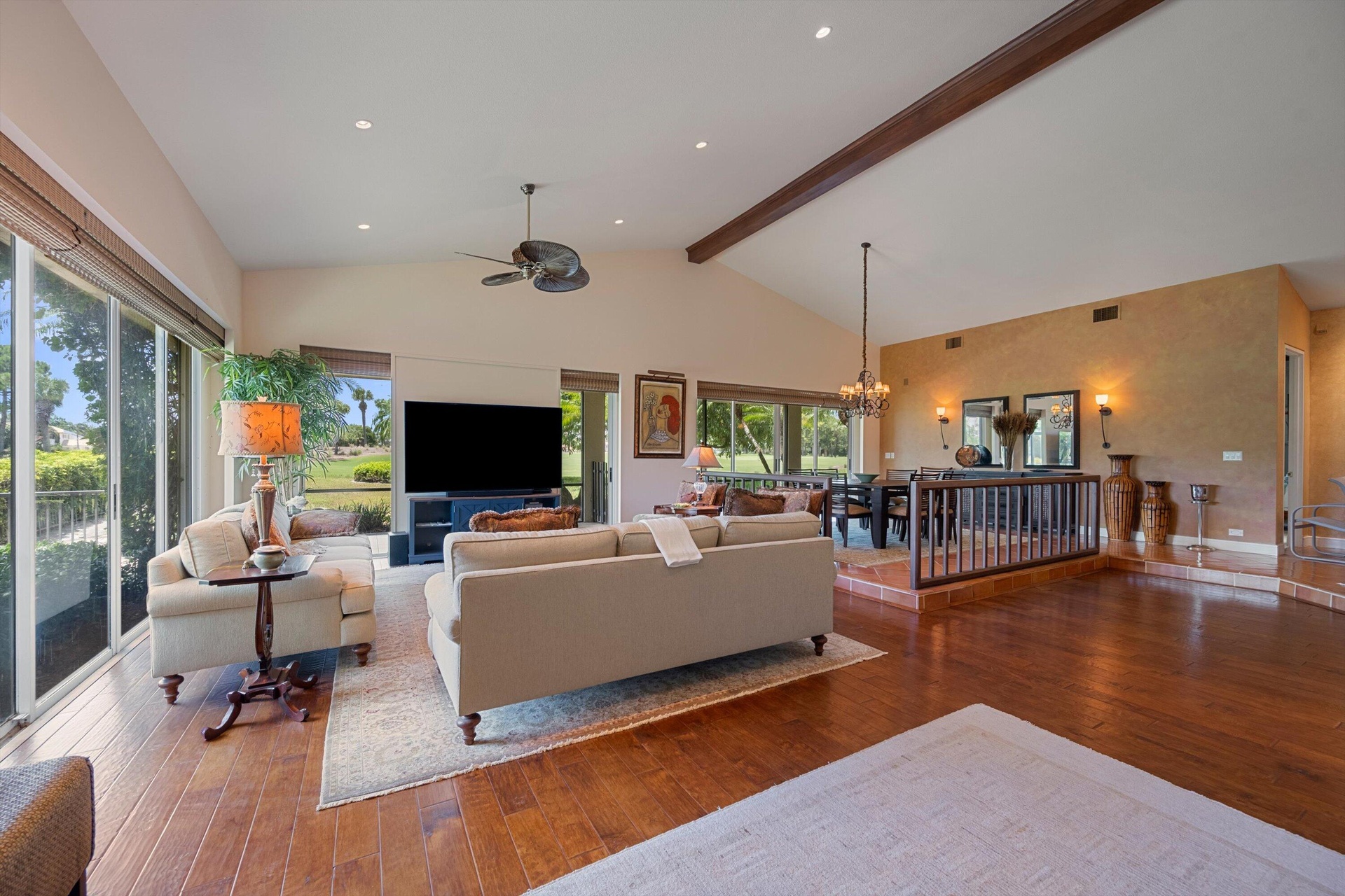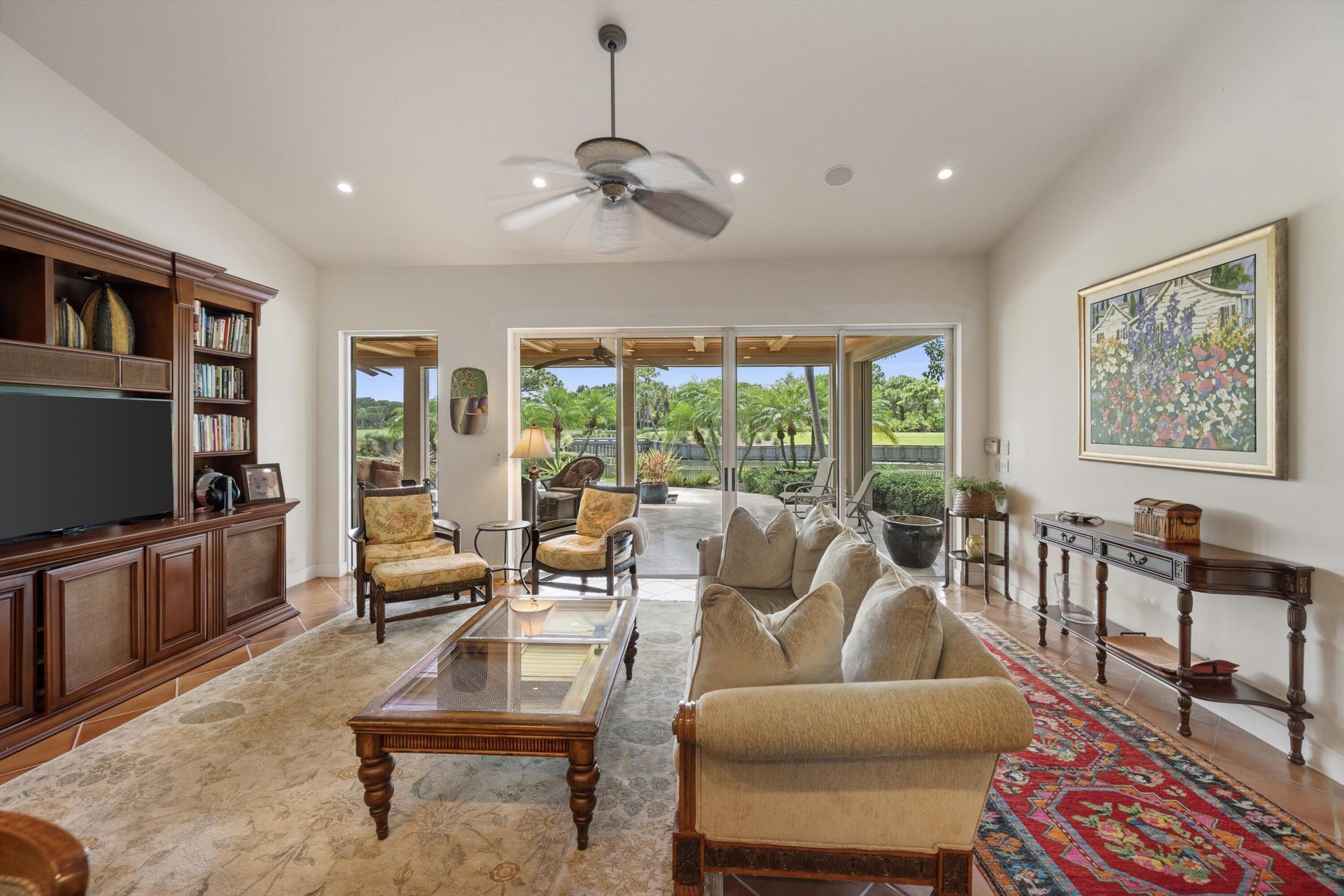 Welcome to 142 Terrapin Trail, an extraordinary residence offering 3,713 square feet, 3 bedrooms, and 3 full bathrooms in the heart of The Loxahatchee Club. Situated at the end of a cul-de-sac on undeniably the premier double lot in the community, this home boasts panoramic vistas that redefine luxury living. Step inside through a grand entrance to soaring ceilings and expansive windows designed to capture the breathtaking views of the Signature Jack Nicklaus designed golf course and lake. The formal living and dining room serves as the home's centerpiece, showcasing a striking architectural beam, dramatic ceiling height, and sweeping views.