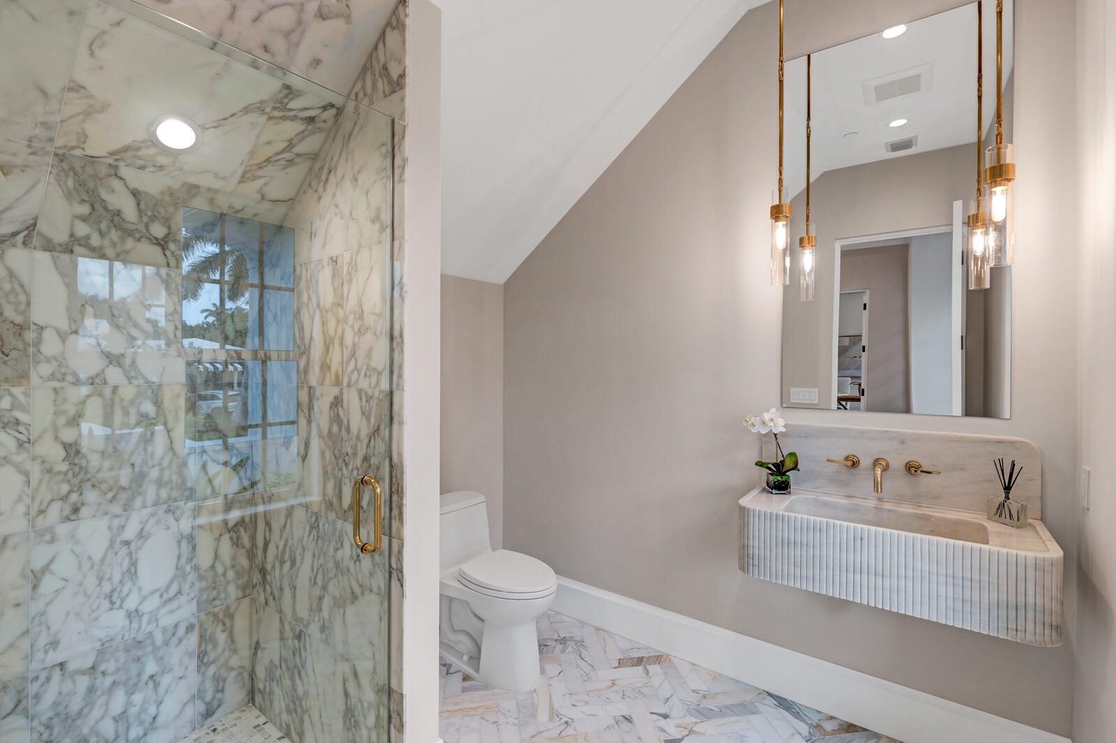 Exceptional opportunity to own a brand new custom masterpiece completed in 2025 by Delray's most revered builder, Lost Craft Builders, as his family's personal residence. Just a block and a half from the ocean, and 3 blocks from beloved Atlantic Avenue, the home is ideally positioned within the heart of the prestigious North Beach neighborhood. This serene, one of a kind, 5 BR and 6.1 BA home offers an unparalleled living experience with luxurious and timeless finishes, graciously proportioned rooms and impeccable craftsmanship. The thoughtfully designed main floor's great room with lofty beamed pecky cypress ceiling, is poised for seamless entertaining w/ chef's kitchen, living area w/natural gas fireplace and dining area all drenched in natural light by a 20' wall of