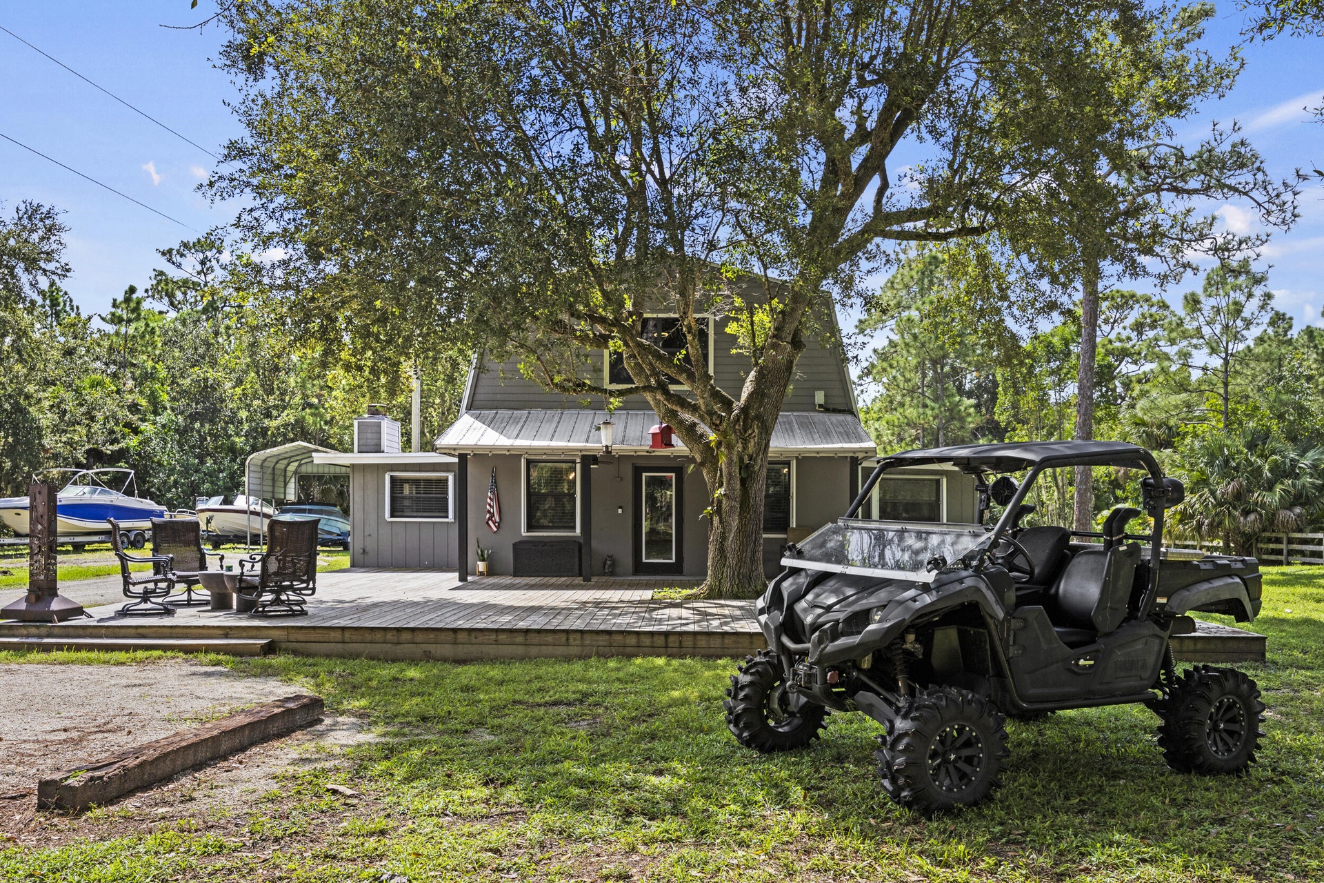 DescriptionDiscover the perfect blend of privacy and convenience on 4.7 acres in Palm City! This fully renovated 3-bedroom, 2-bath home features a gorgeous new kitchen, updated baths, and modern finishes throughout. Half-cleared and fully fenced, with space for horses, pets, boats, or RVs--and no HOA! Includes a whole-house generator, 30-amp RV hookup, and 500-gallon underground propane tank. Just minutes from shopping and I-95, yet it feels like your own peaceful country escape--the ideal hideaway close to everything!