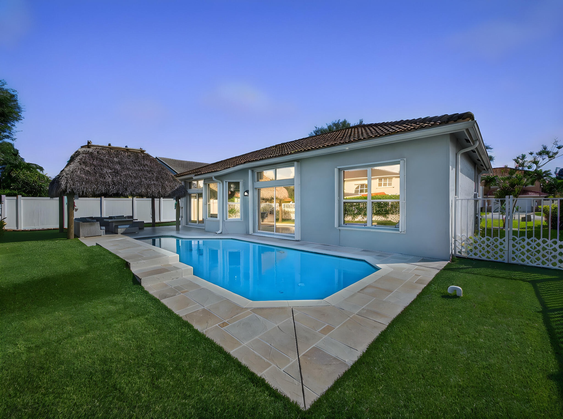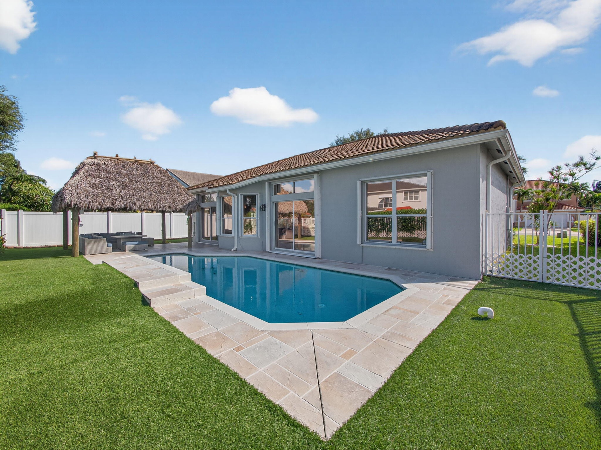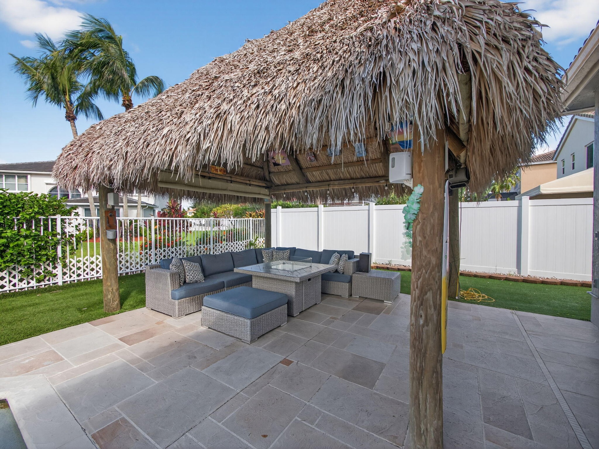 DescriptionBeautifully maintained Antilles model single-story home in the desirable gated Winston Trails community, lovingly cared for by its original owner. This bright and spacious 4BR/2BA residence features a newly remodeled kitchen with upgraded appliances, island, and cozy bay window nook. The turf lawn backyard keeps maintenance low, while the sparkling pool and soothing waterfall feature create a resort-like atmosphere. Unwind under the Tiki hut after a long day or host unforgettable gatherings in this tropical retreat. Highlights include a 2018 roof, 2017 A/C, 2017 WH, accordion shutters, tile floors, and a spacious primary suite with dual sinks, soaking tub, and separate shower. Located in a top-rated school district and just minutes from premier restaurants, shopping, and major highways,